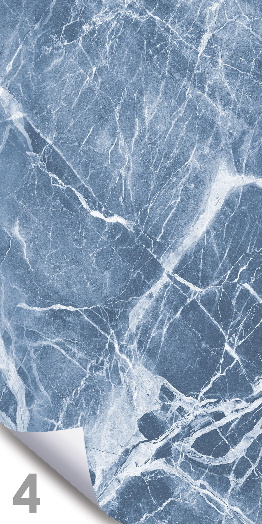 Наш гибкий мрамор, созданный с использованием современных технологий, с точностью повторяет природный узор камня, но при этом стоит гораздо меньше. При соблюдении правил укладки, вы получите целостное покрытие, которое будет выглядеть как настоящий мрамор. Например, используя четырехкратный рисунок укладки, можно создать иллюзию непрерывного мраморного орнамента.