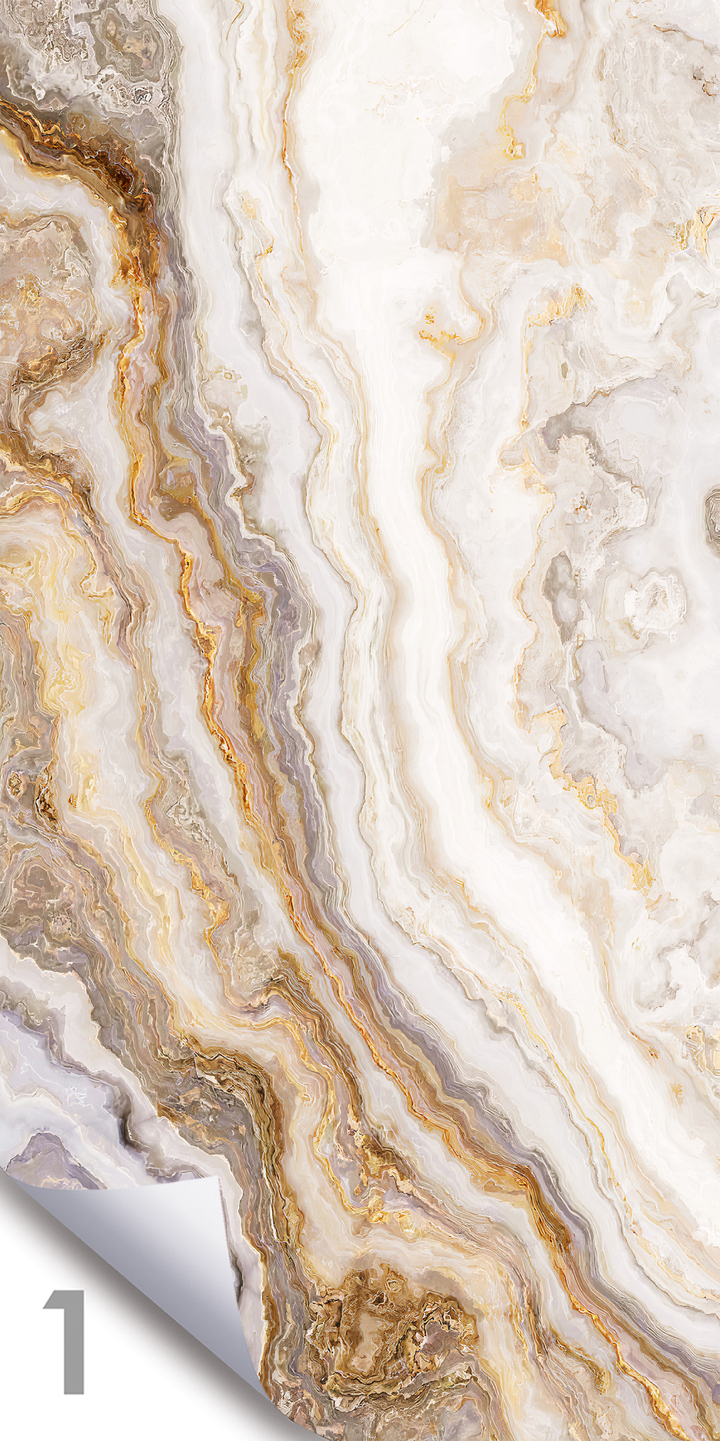 Гибкий мрамор серии ВИП представлен в разнообразных рисунках, каждый из которых имеет размер 285х140 см. При правильной укладке рисунки 1, 2, 3 и 4 и другие создают единое полотно без видимых стыков. Это позволяет наслаждаться красотой и функциональностью покрытия в течение долгих 50 лет!