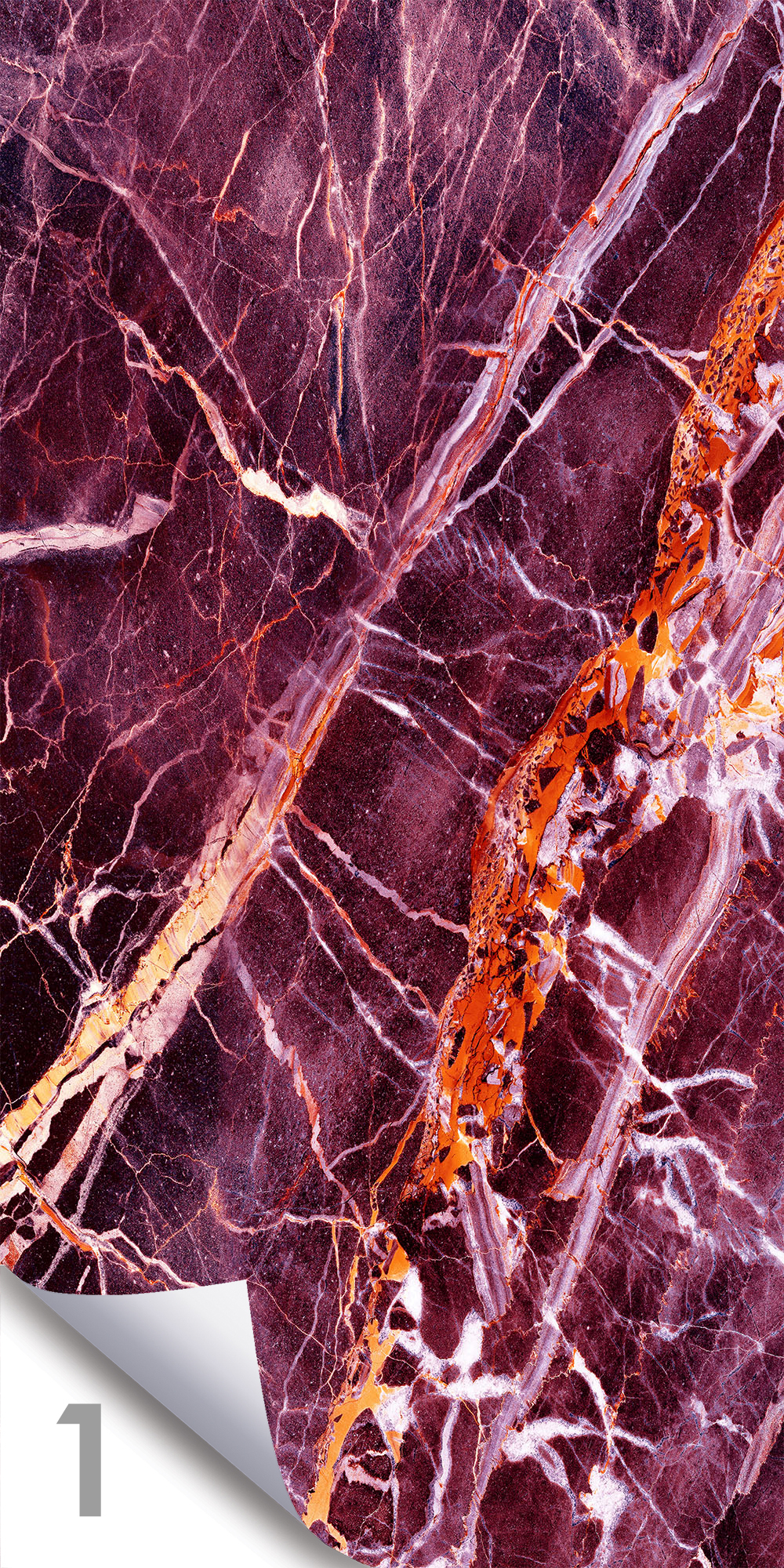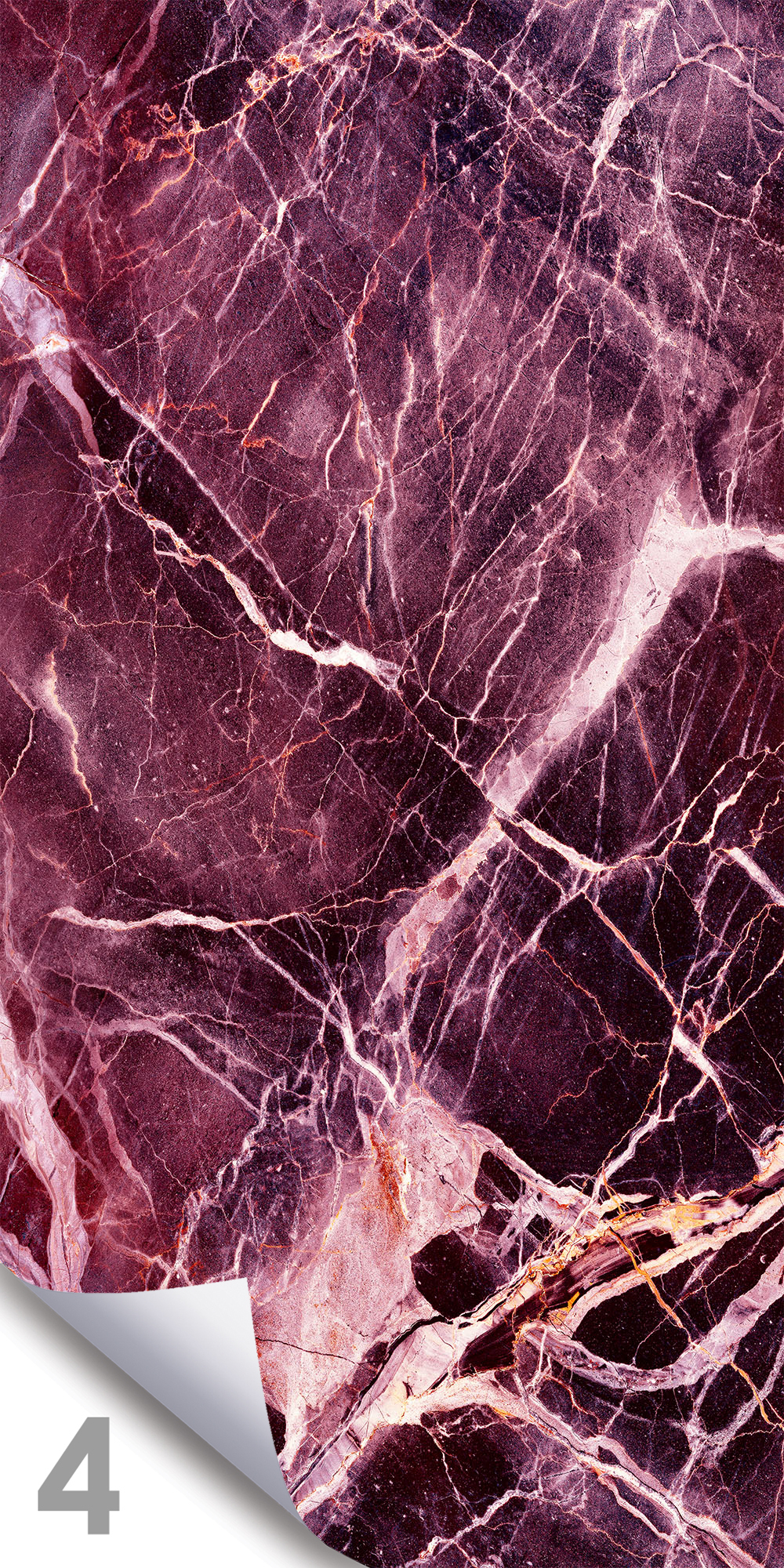 Наш гибкий мрамор, созданный с использованием современных технологий, с точностью повторяет природный узор камня, но при этом стоит гораздо меньше. При соблюдении правил укладки, вы получите целостное покрытие, которое будет выглядеть как настоящий мрамор. Например, используя четырехкратный рисунок укладки, можно создать иллюзию непрерывного мраморного орнамента.