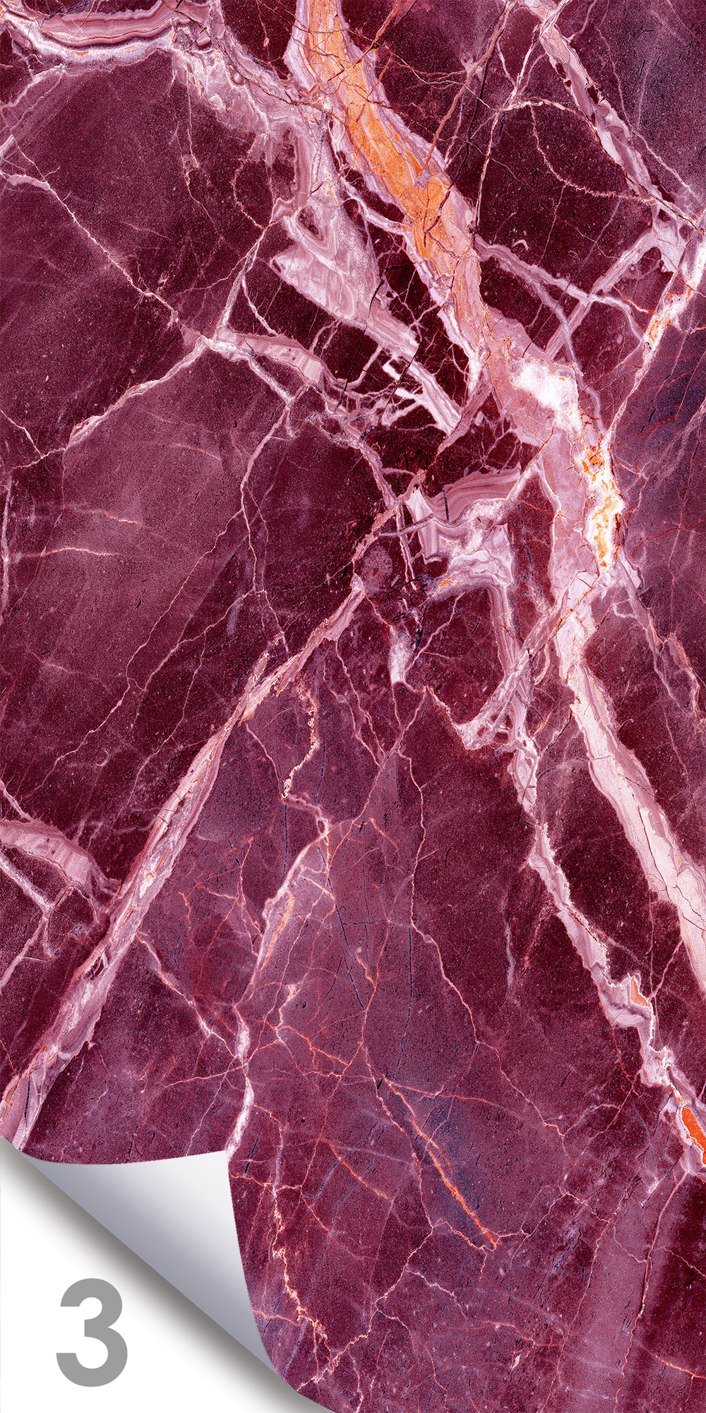 Гибкий мрамор серии ВИП представлен в разнообразных рисунках, каждый из которых имеет размер 285х140 см. При правильной укладке рисунки 1, 2, 3 и 4 и другие создают единое полотно без видимых стыков. Это позволяет наслаждаться красотой и функциональностью покрытия в течение долгих 50 лет!