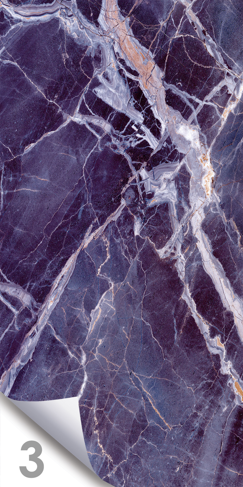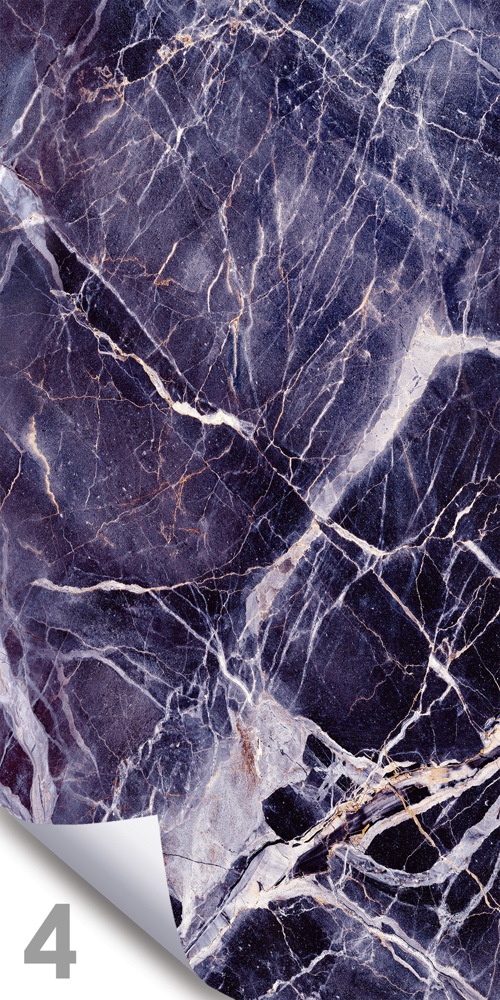 Гибкий мрамор серии ВИП представлен в разнообразных рисунках, каждый из которых имеет размер 285х140 см. При правильной укладке рисунки 1, 2, 3 и 4 и другие создают единое полотно без видимых стыков. Это позволяет наслаждаться красотой и функциональностью покрытия в течение долгих 50 лет!