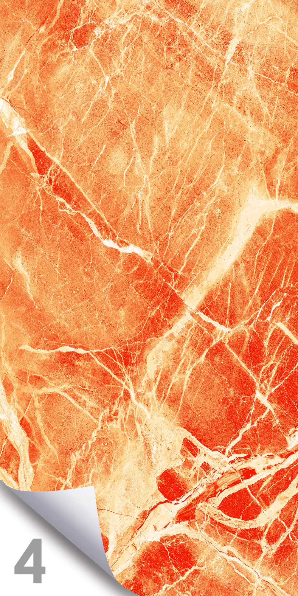 Наш гибкий мрамор, созданный с использованием современных технологий, с точностью повторяет природный узор камня, но при этом стоит гораздо меньше. При соблюдении правил укладки, вы получите целостное покрытие, которое будет выглядеть как настоящий мрамор. Например, используя четырехкратный рисунок укладки, можно создать иллюзию непрерывного мраморного орнамента.