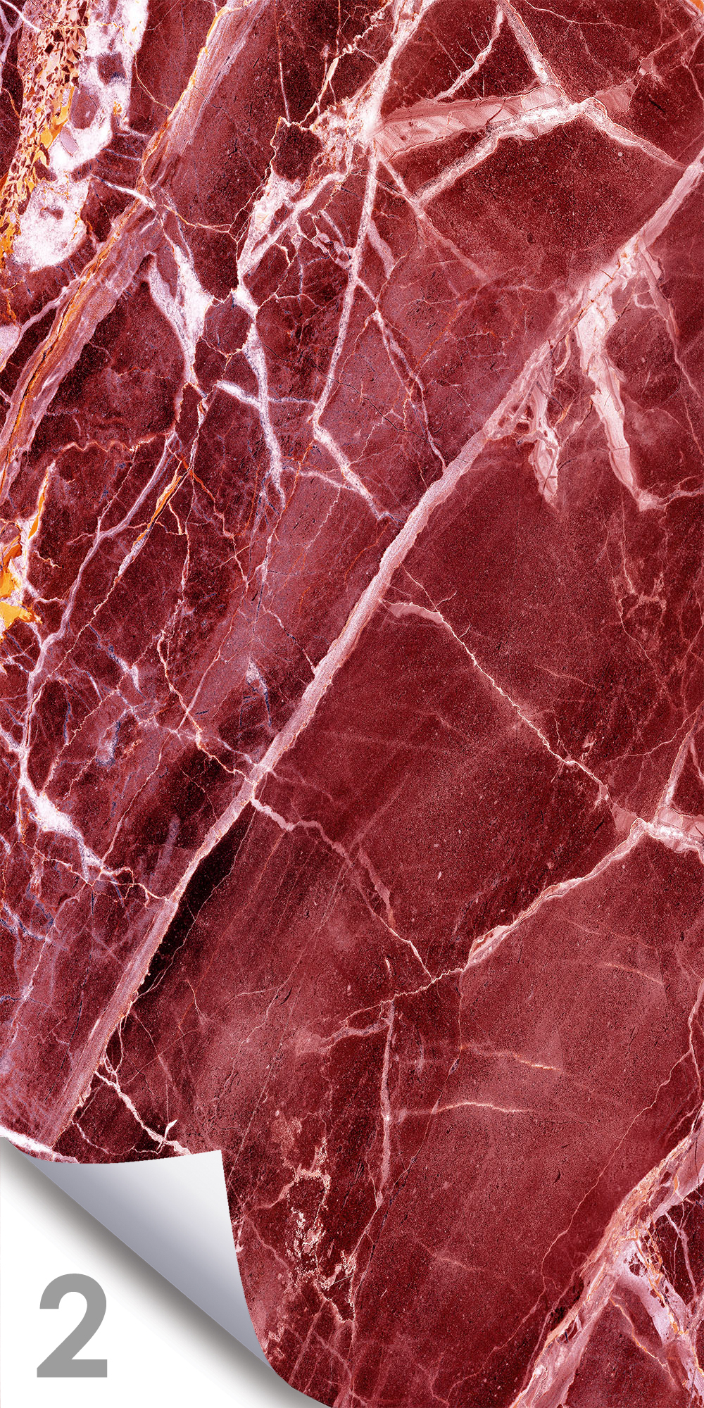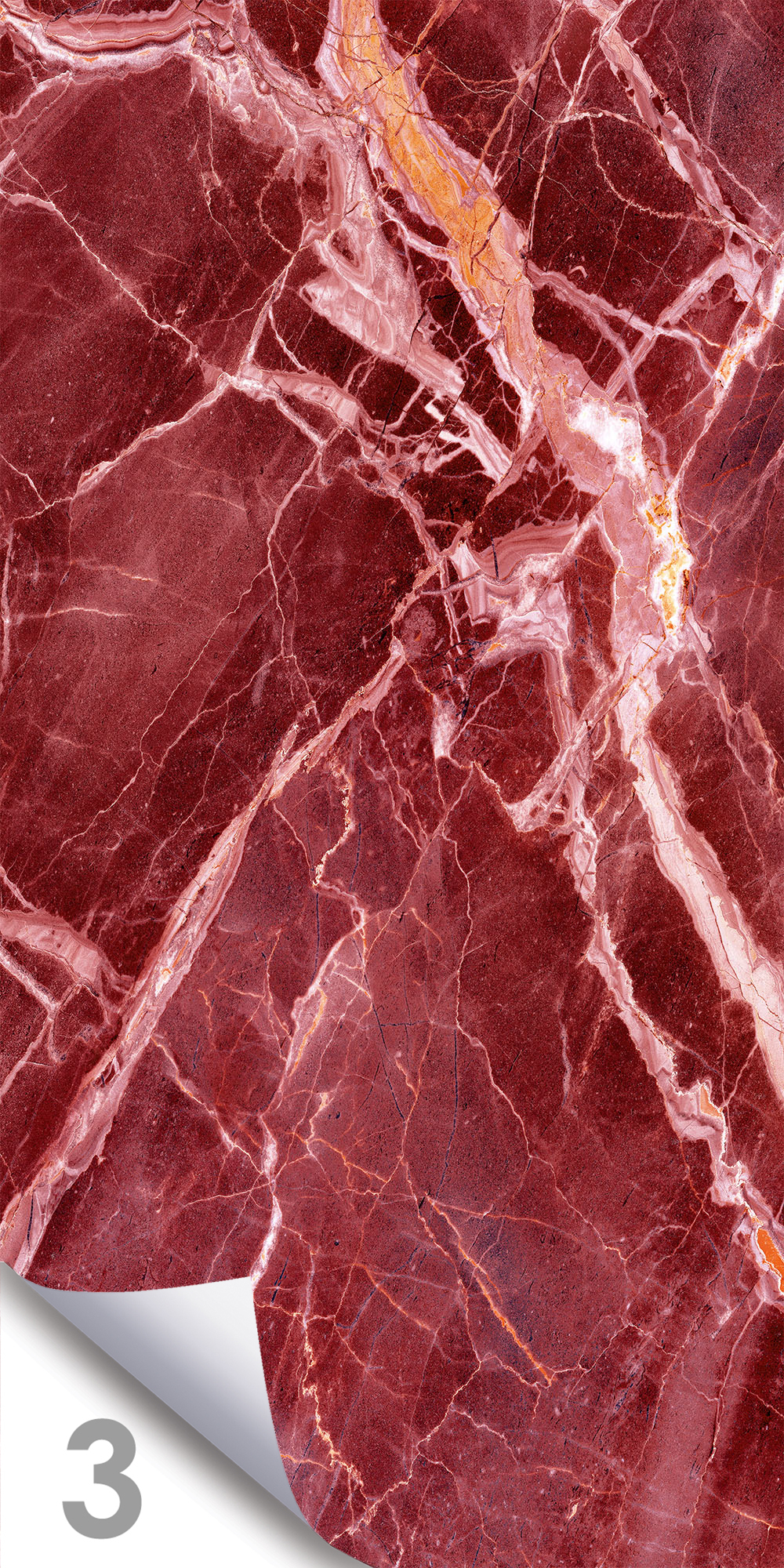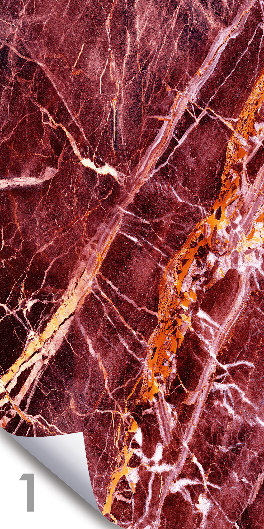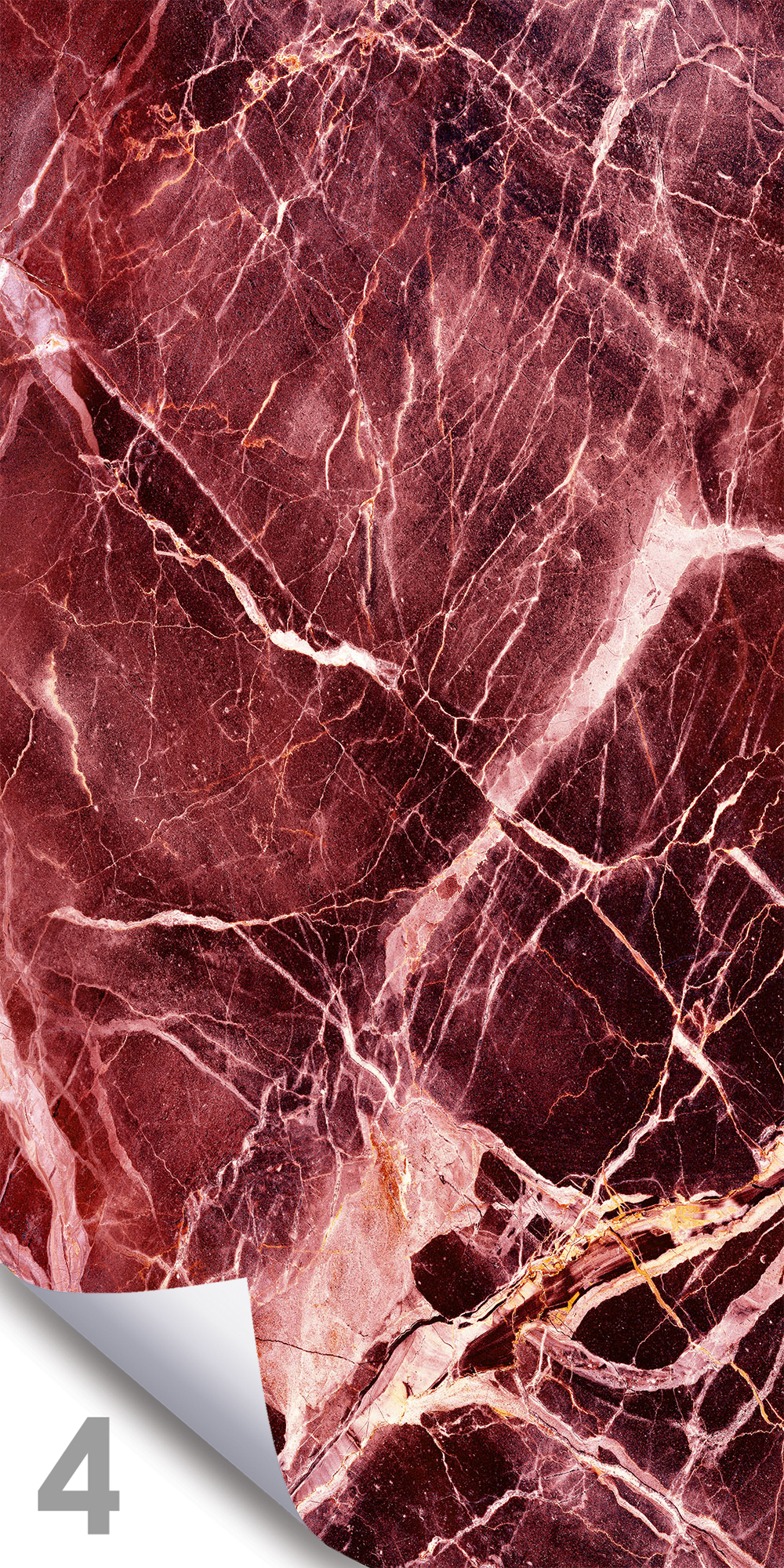 Наш гибкий мрамор, созданный с использованием современных технологий, с точностью повторяет природный узор камня, но при этом стоит гораздо меньше. При соблюдении правил укладки, вы получите целостное покрытие, которое будет выглядеть как настоящий мрамор. Например, используя четырехкратный рисунок укладки, можно создать иллюзию непрерывного мраморного орнамента.