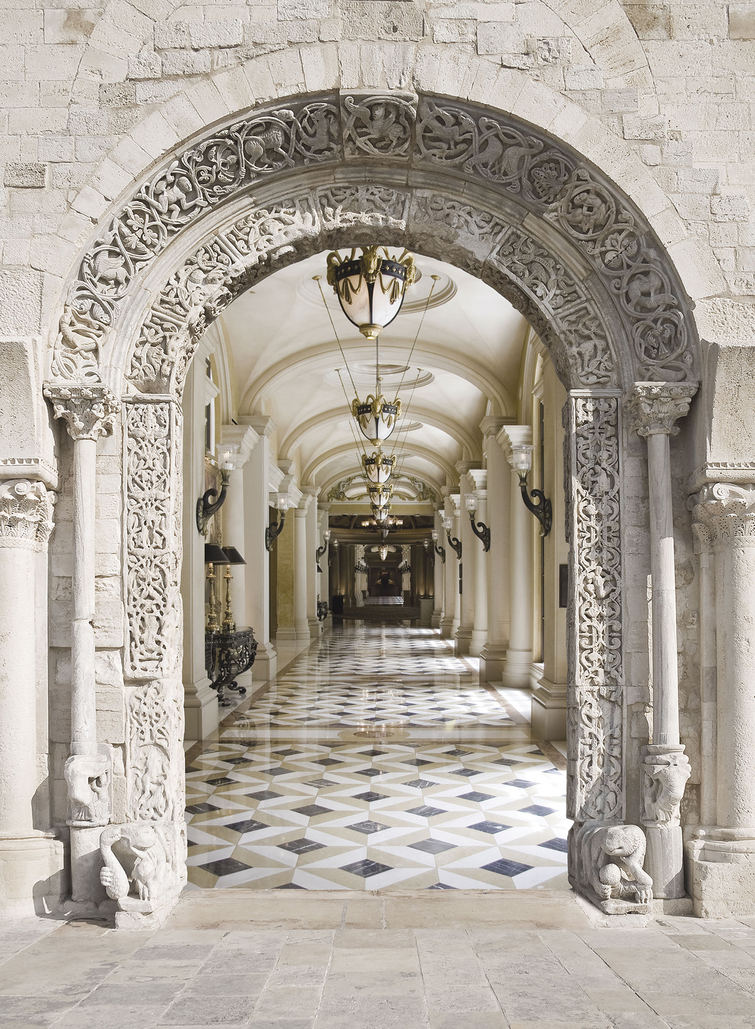 Текстура, имитирующая поверхность старинных стен флорентийских дворцов эпохи Возрождения, станет прекрасным выбором для внутренней отделки помещений, включая те, где уровень влажности выше обычного. Материал устойчив к мытью, что делает его идеальным для влажной уборки.