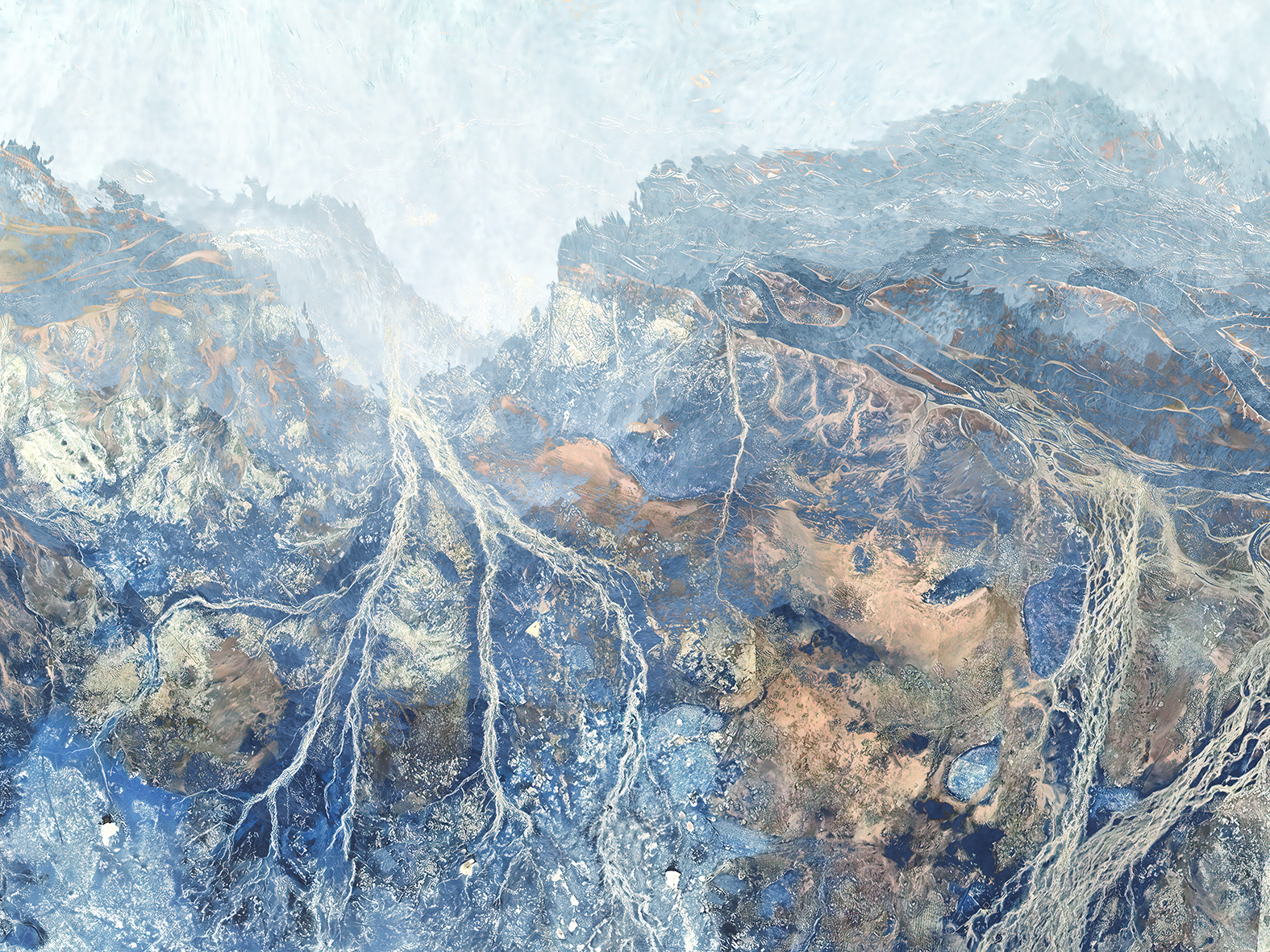 Флизелиновая основа с нанесенной вручную натуральной штукатуркой в виде широких мазков грубой кисти.