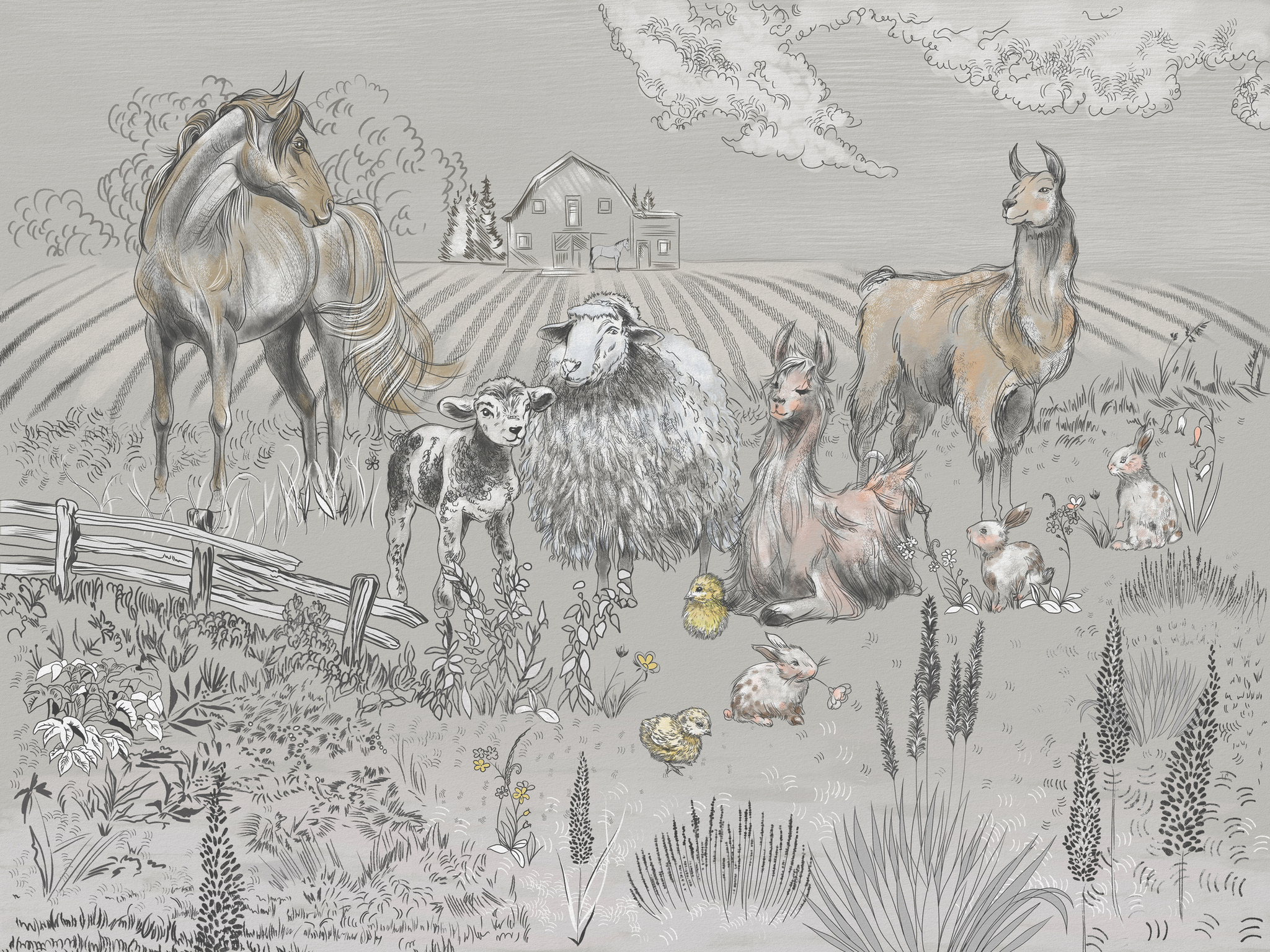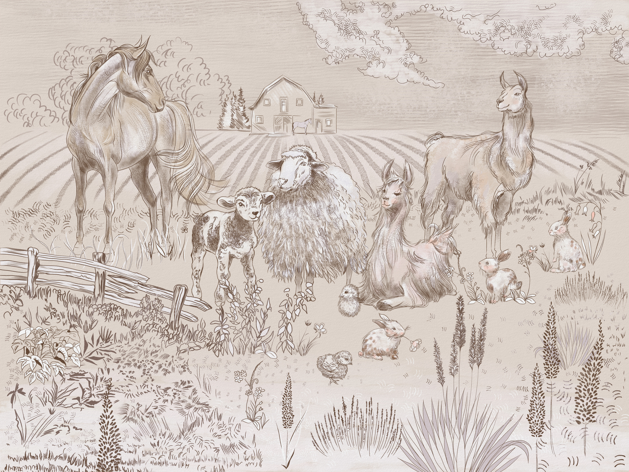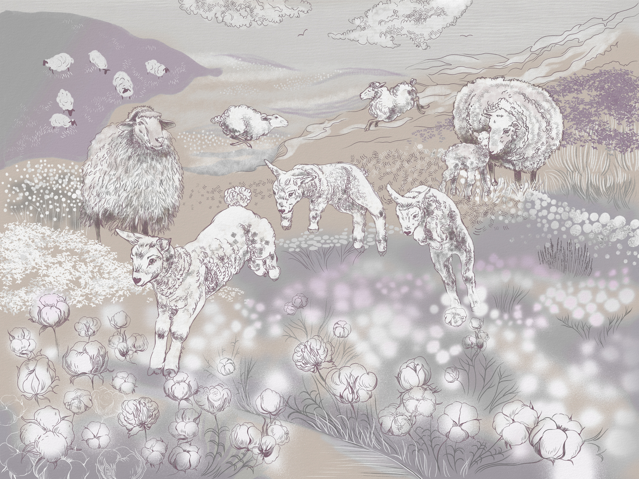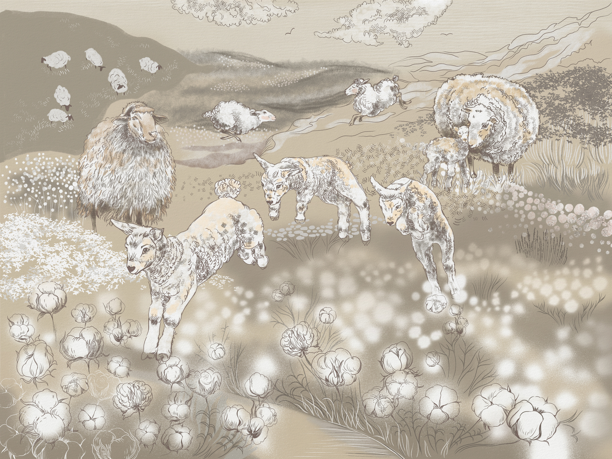 ФАКТУРА МЕЛКОГО ПЕСКА СОЗДАЕТ НЕОБХОДИМЫЙ ОБЪЕМ СЮЖЕТУ, А ЭКОЛОГИЧНОСТЬ И ВЛАГОУСТОЙЧИВОСТЬ ПОЗВОЛЯЮТ ИСПОЛЬЗОВАТЬ МАТЕРИАЛ В ДЕТСКОЙ ИЛИ НА КУХНЕ.