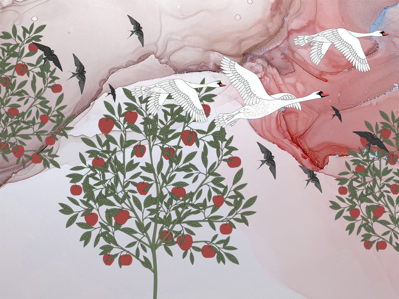 ФАКТУРА МЕЛКОГО ПЕСКА СОЗДАЕТ НЕОБХОДИМЫЙ ОБЪЕМ СЮЖЕТУ, А ЭКОЛОГИЧНОСТЬ И ВЛАГОУСТОЙЧИВОСТЬ ПОЗВОЛЯЮТ ИСПОЛЬЗОВАТЬ МАТЕРИАЛ В ДЕТСКОЙ ИЛИ НА КУХНЕ.