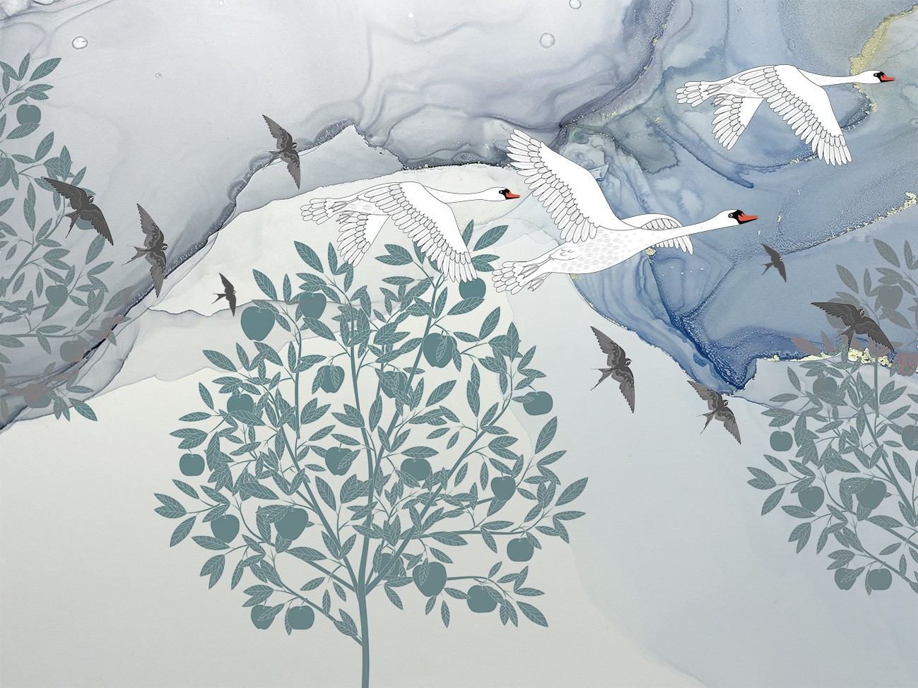 Бесшовные дизайнерские обои и фрески