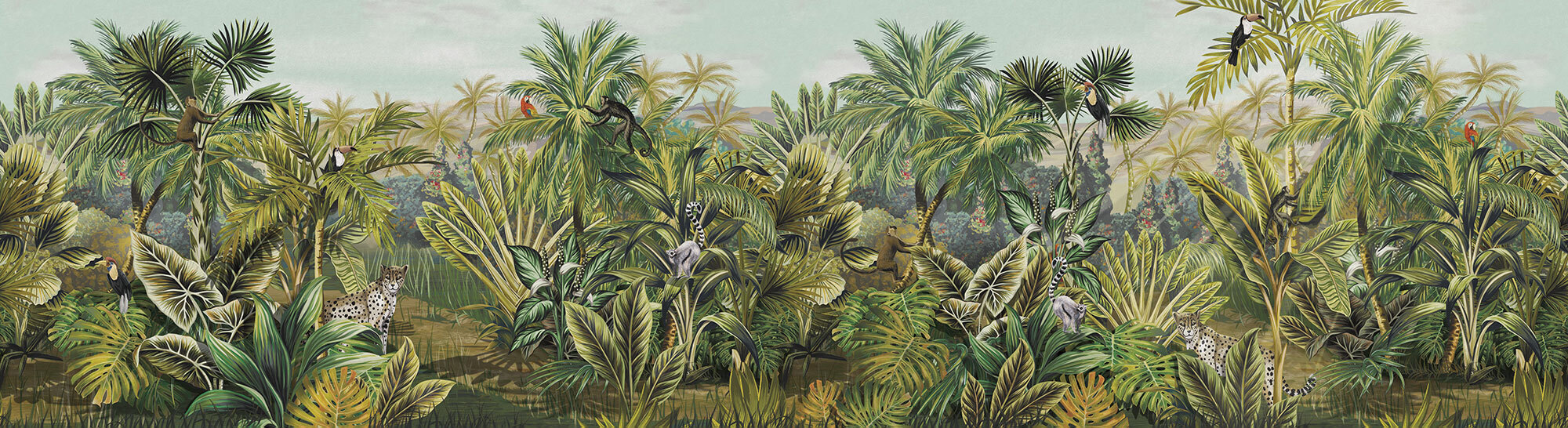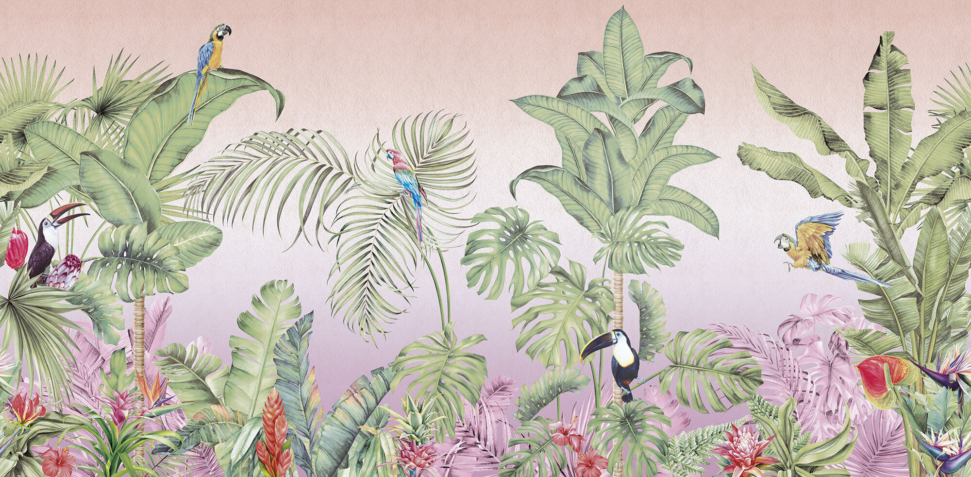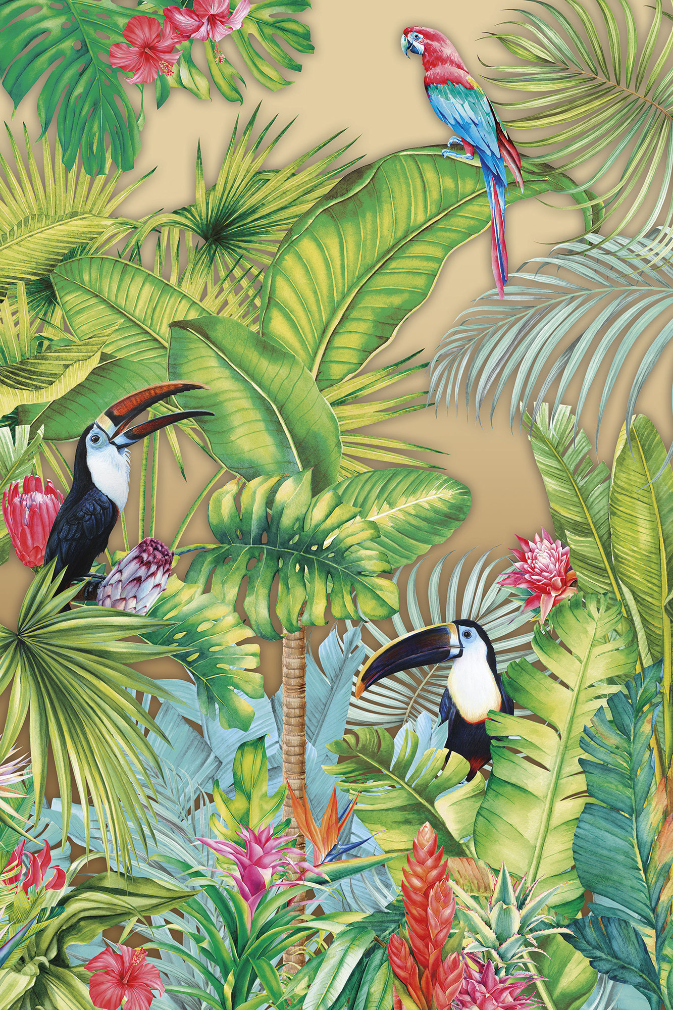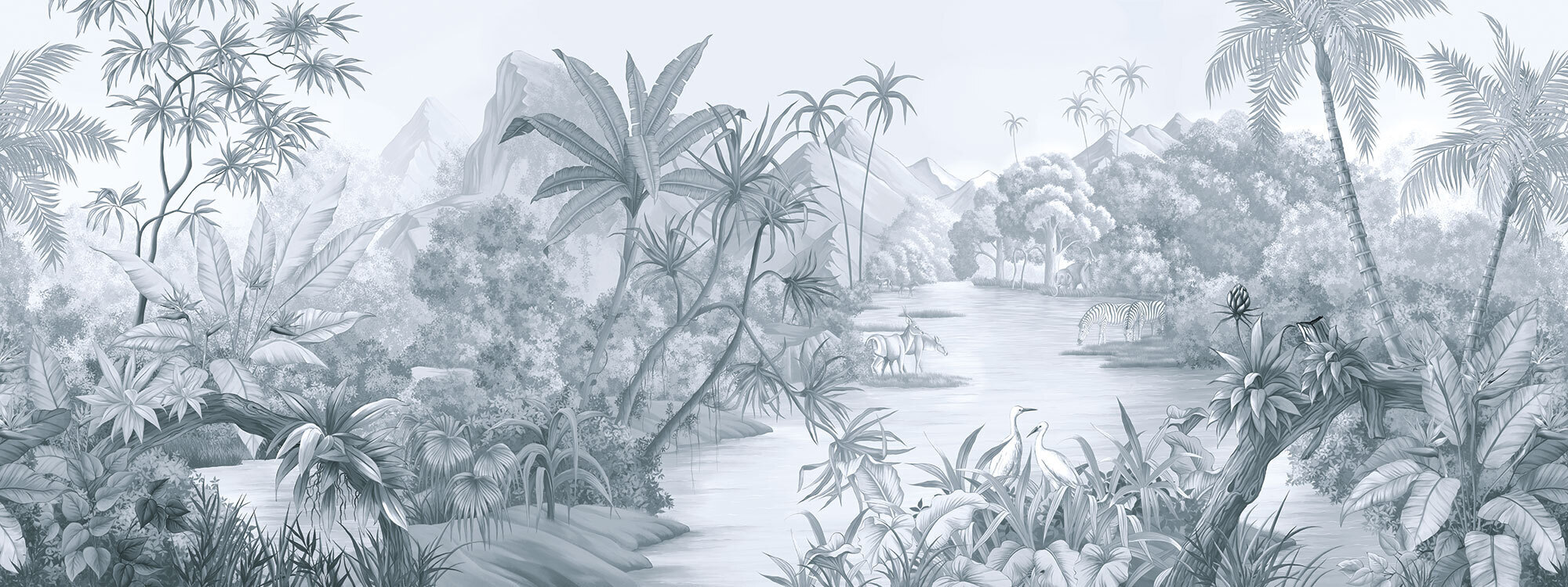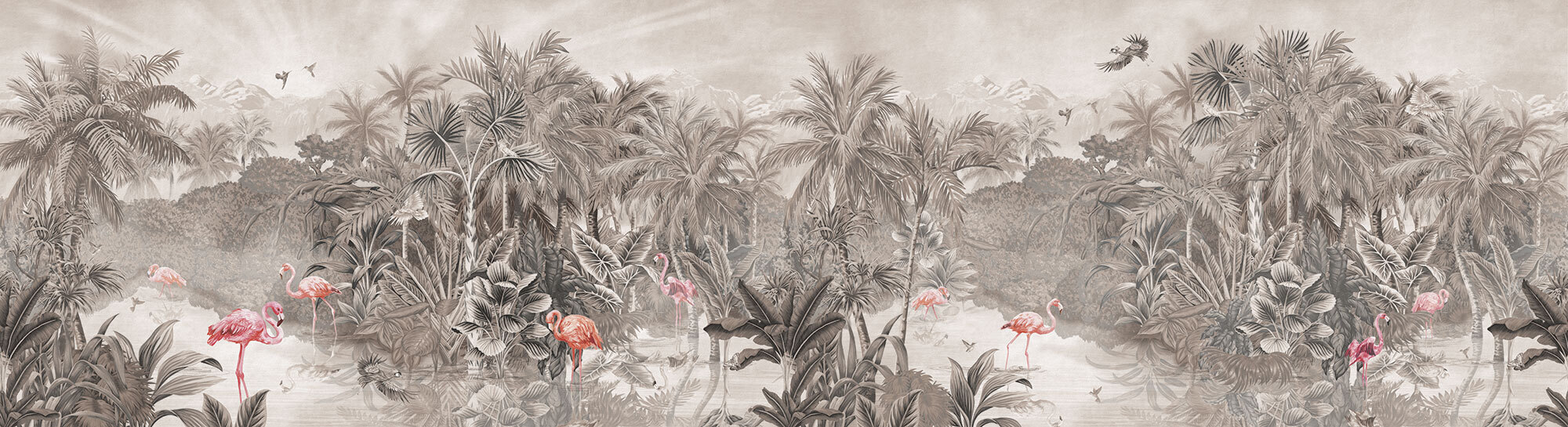 В новой коллекции «It`s Jungle» вы найдёте панорамные тропические пейзажи, которые поражают своей глубиной и «живой» перспективой, а также тщательной прорисовкой и цветовой гармонией. Каждый сюжет позволит вам почувствовать близость к дикой природе: ощутить освежающую прохладу тенистых зарослей или палящий полуденный зной, встречать рассветы и закаты в компании изящных фламинго, игривых попугаев и других обитателей тропического леса.