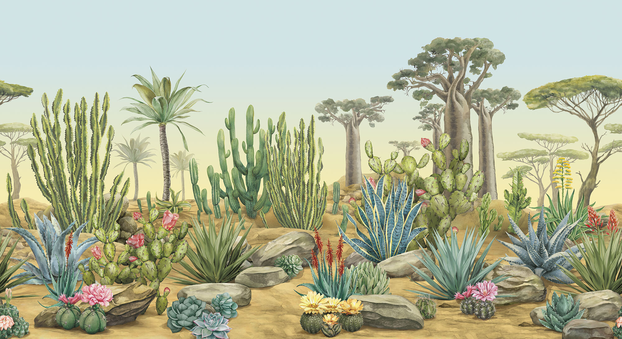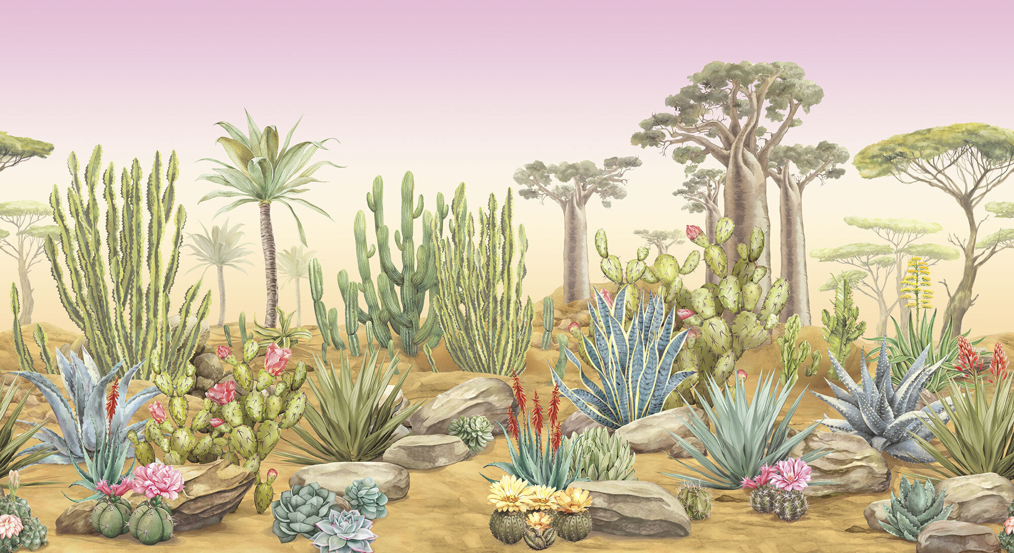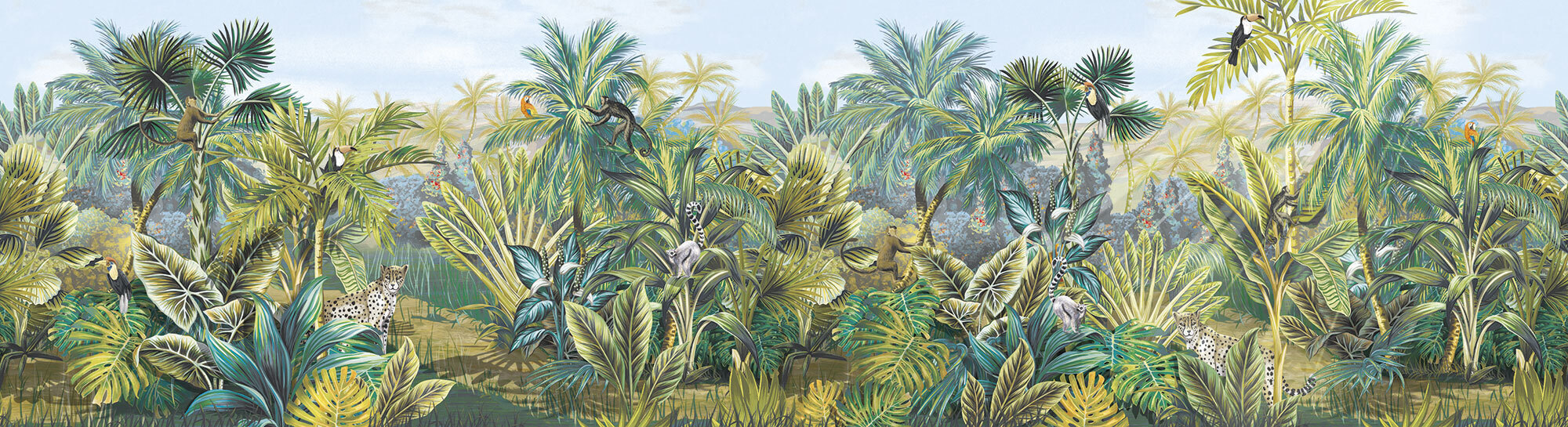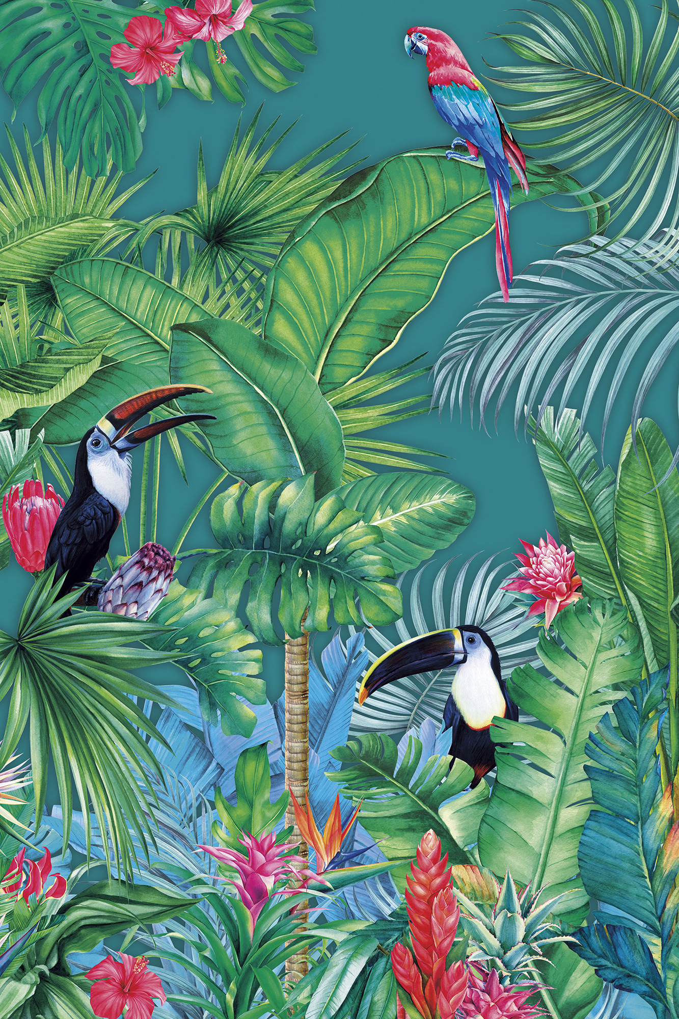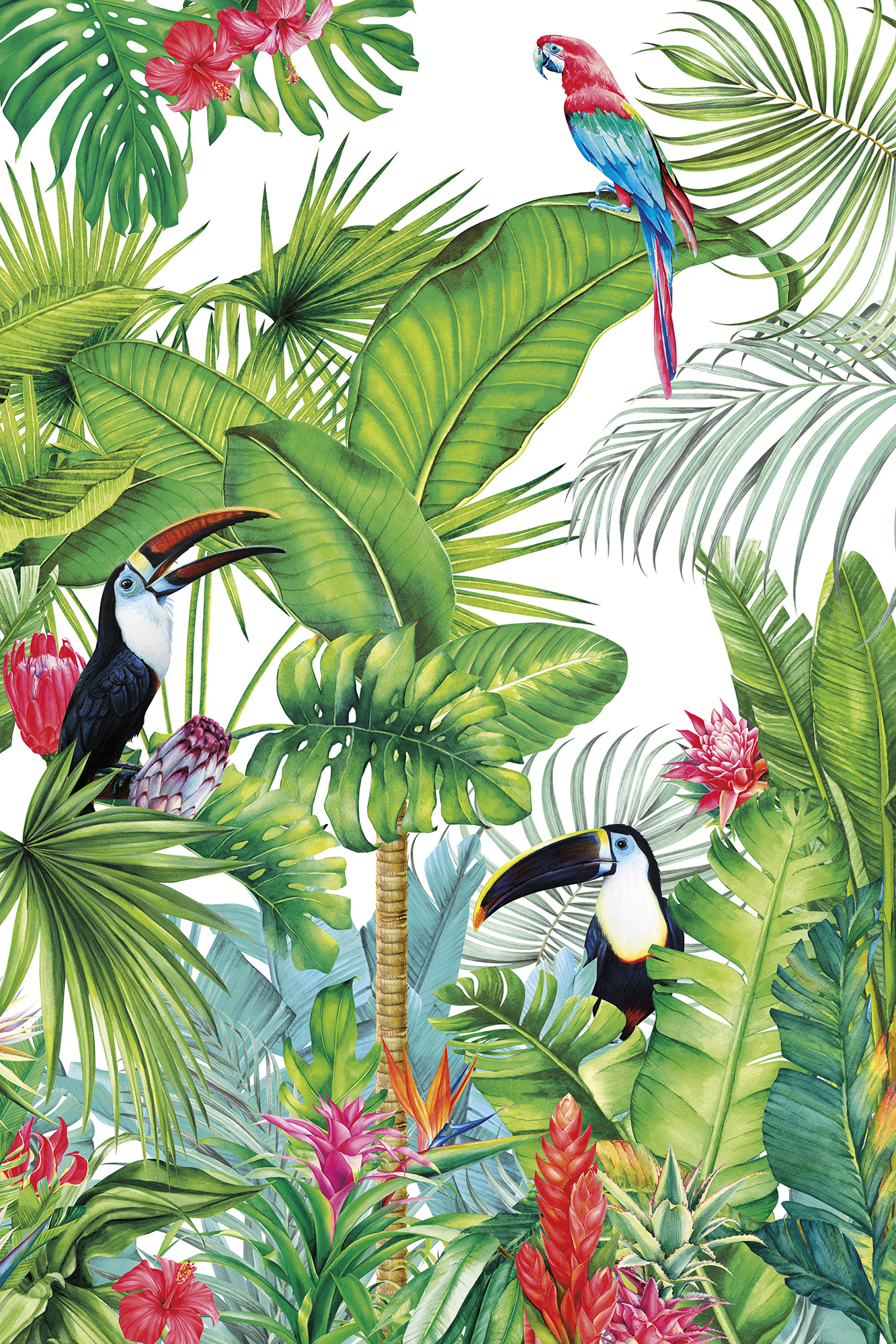 В новой коллекции «It`s Jungle» вы найдёте панорамные тропические пейзажи, которые поражают своей глубиной и «живой» перспективой, а также тщательной прорисовкой и цветовой гармонией. Каждый сюжет позволит вам почувствовать близость к дикой природе: ощутить освежающую прохладу тенистых зарослей или палящий полуденный зной, встречать рассветы и закаты в компании изящных фламинго, игривых попугаев и других обитателей тропического леса.