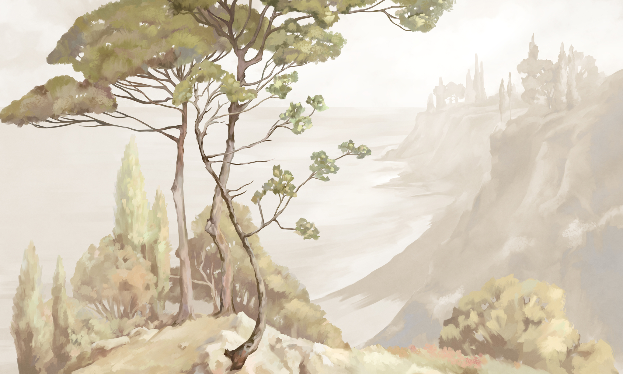 ФАКТУРА МЕЛКОГО ПЕСКА СОЗДАЕТ НЕОБХОДИМЫЙ ОБЪЕМ СЮЖЕТУ, А ЭКОЛОГИЧНОСТЬ И ВЛАГОУСТОЙЧИВОСТЬ ПОЗВОЛЯЮТ ИСПОЛЬЗОВАТЬ МАТЕРИАЛ В ДЕТСКОЙ ИЛИ НА КУХНЕ.