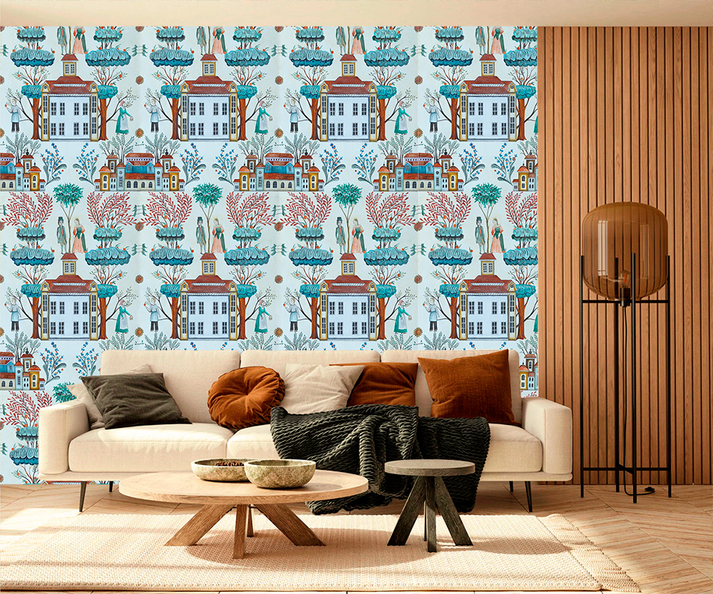 • Адаптация изображения под размер вашей стены с учетом расстановки мебели