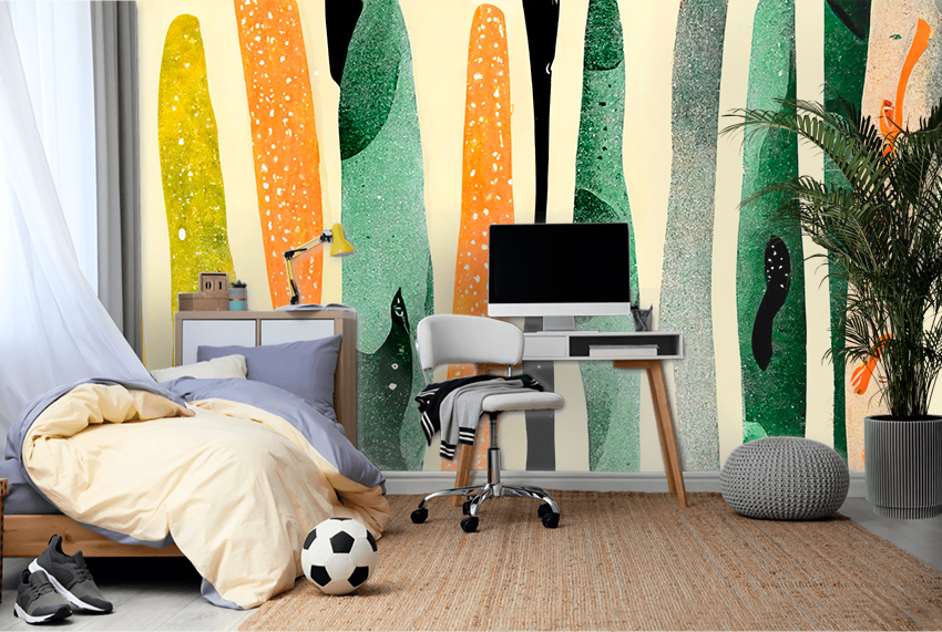 • Адаптация изображения под размер вашей стены с учетом расстановки мебели