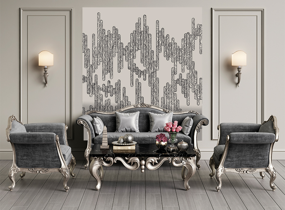 • Адаптация изображения под размер вашей стены с учетом расстановки мебели