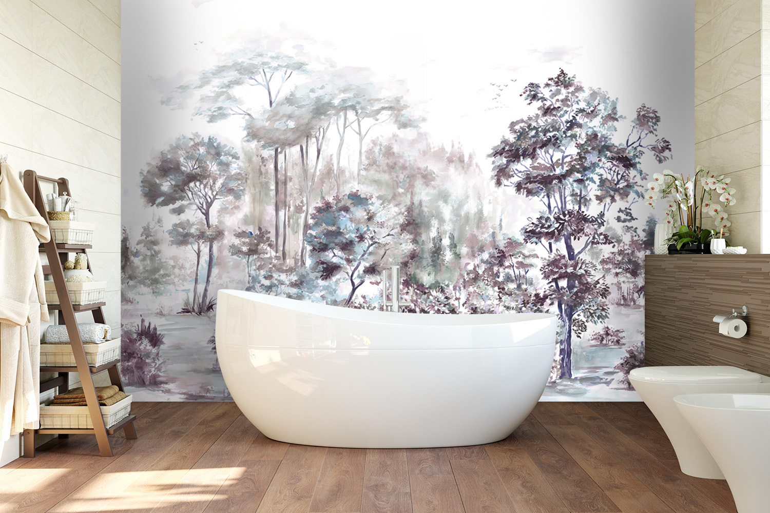 Нежные вертикальные волны материала выгодно подчеркивают все элементы нанесенного изображения, даря ему индивидуальность и красоту настенной росписи. Подходит для печати любых тематик, особенно природы.
