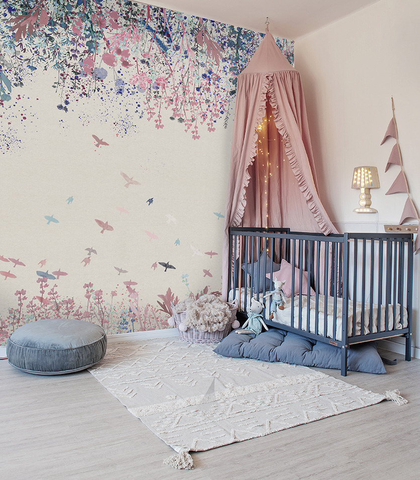 Нежные вертикальные волны материала выгодно подчеркивают все элементы нанесенного изображения, даря ему индивидуальность и красоту настенной росписи. Подходит для печати любых тематик, особенно природы.