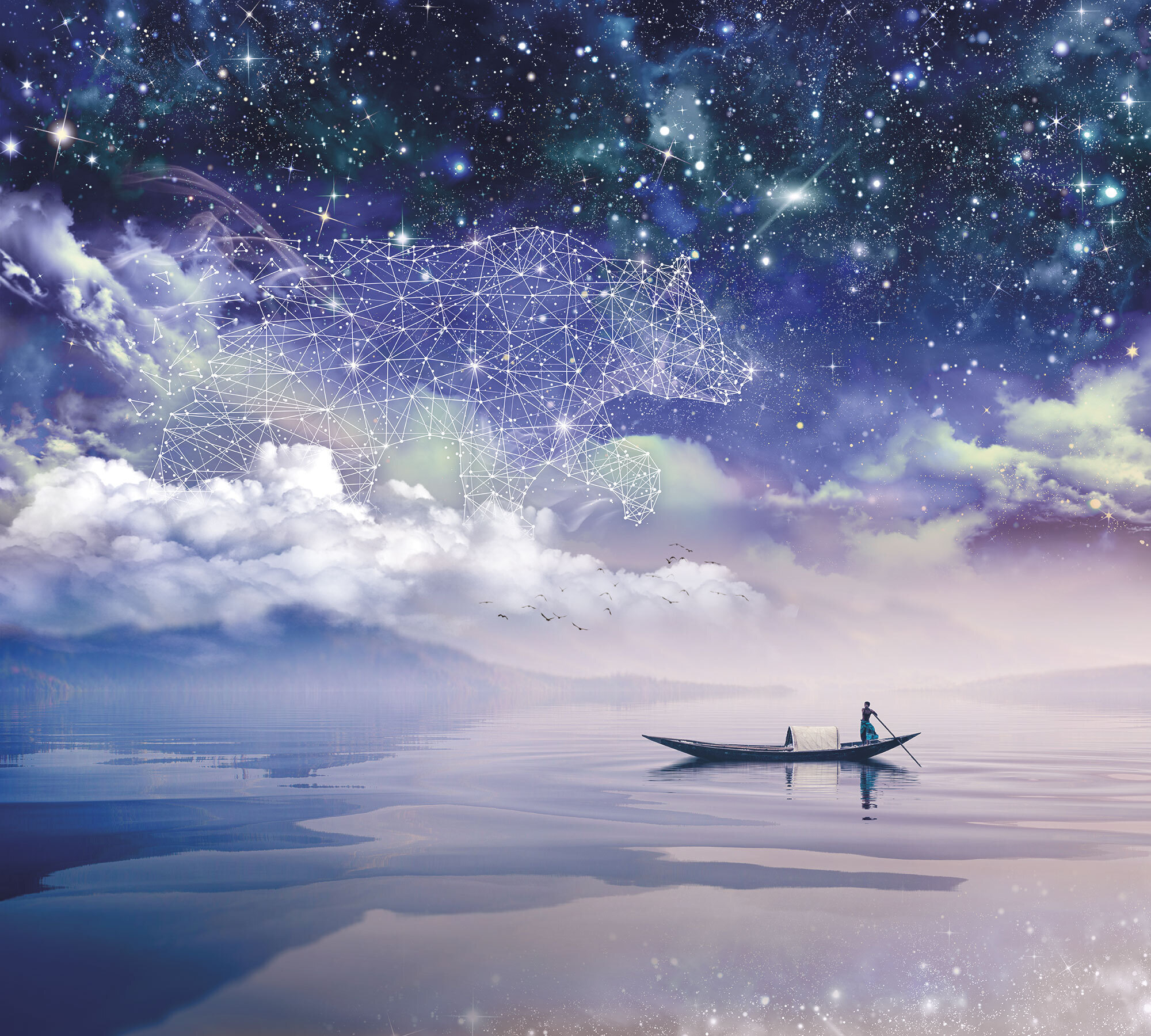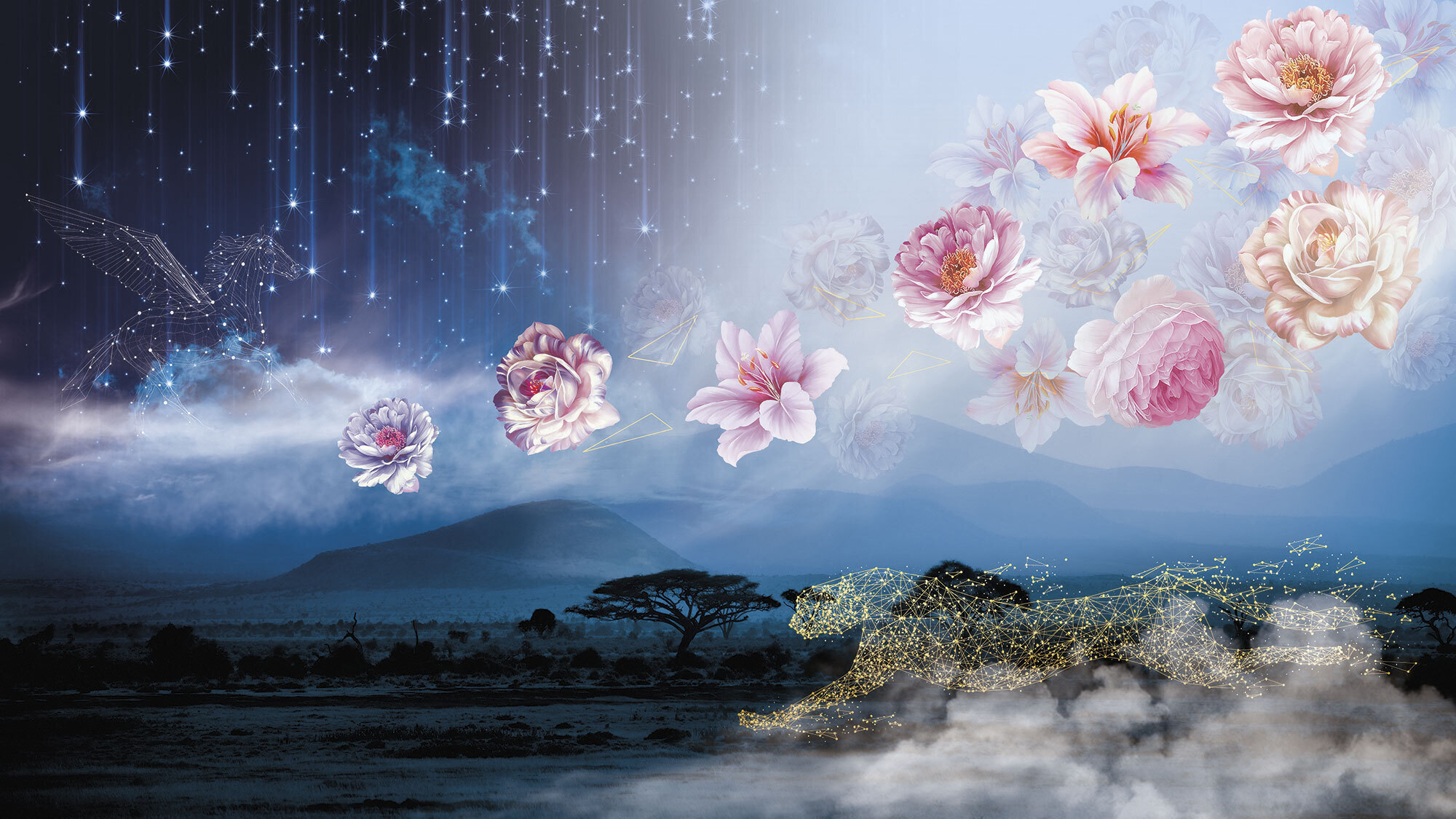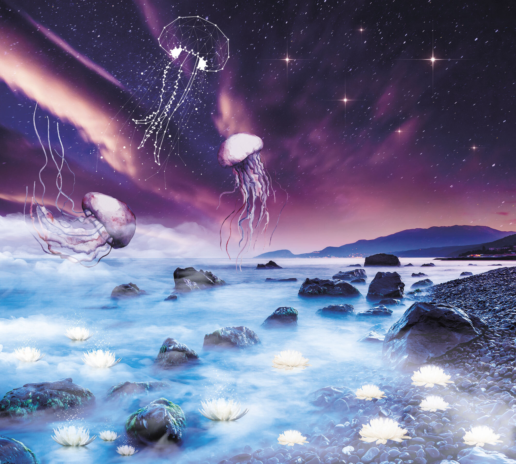 Эта коллекция наполнена глубиной и фантастическими пейзажами. Представьте, как космос переплетается с привычным пространством, а созвездия оживают, спускаются с небес на землю и погружаются в глубины морей и лесов.