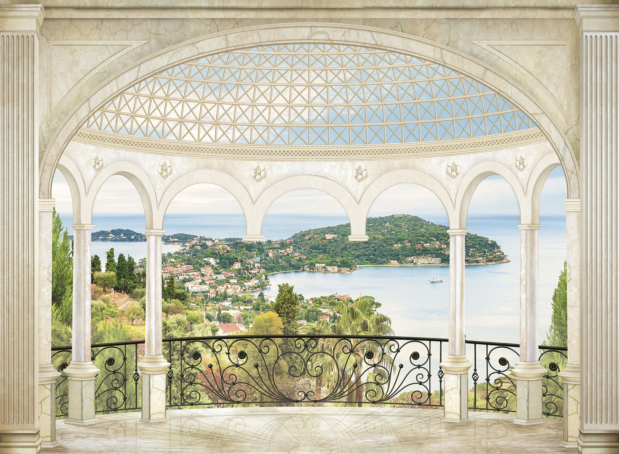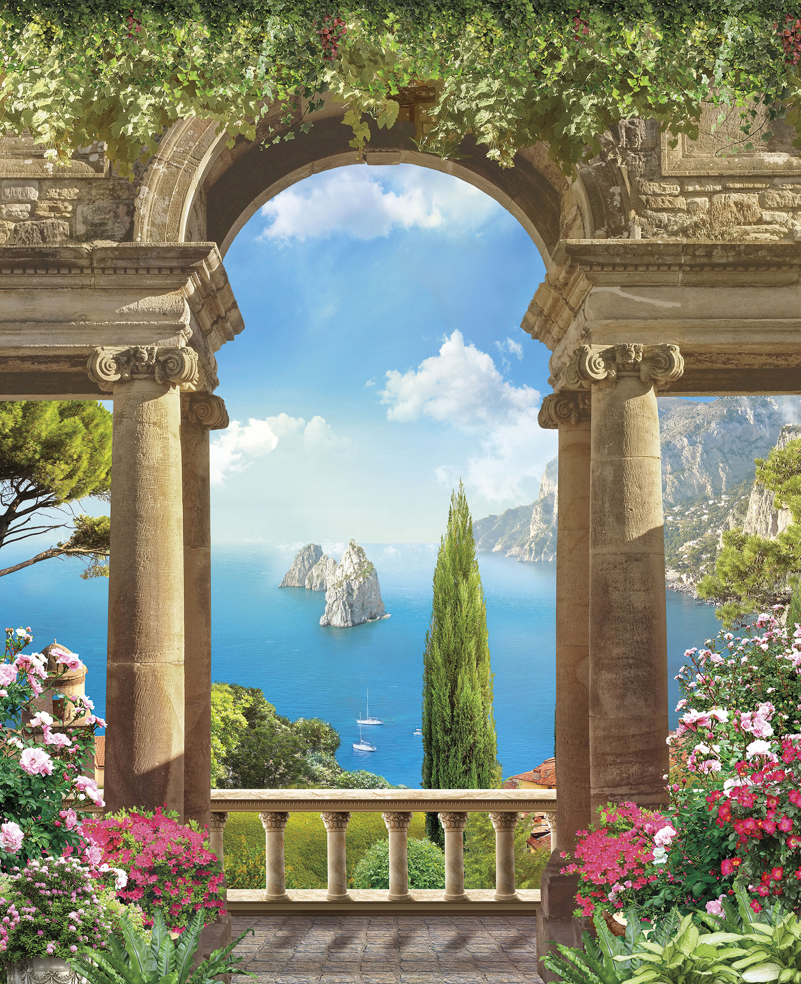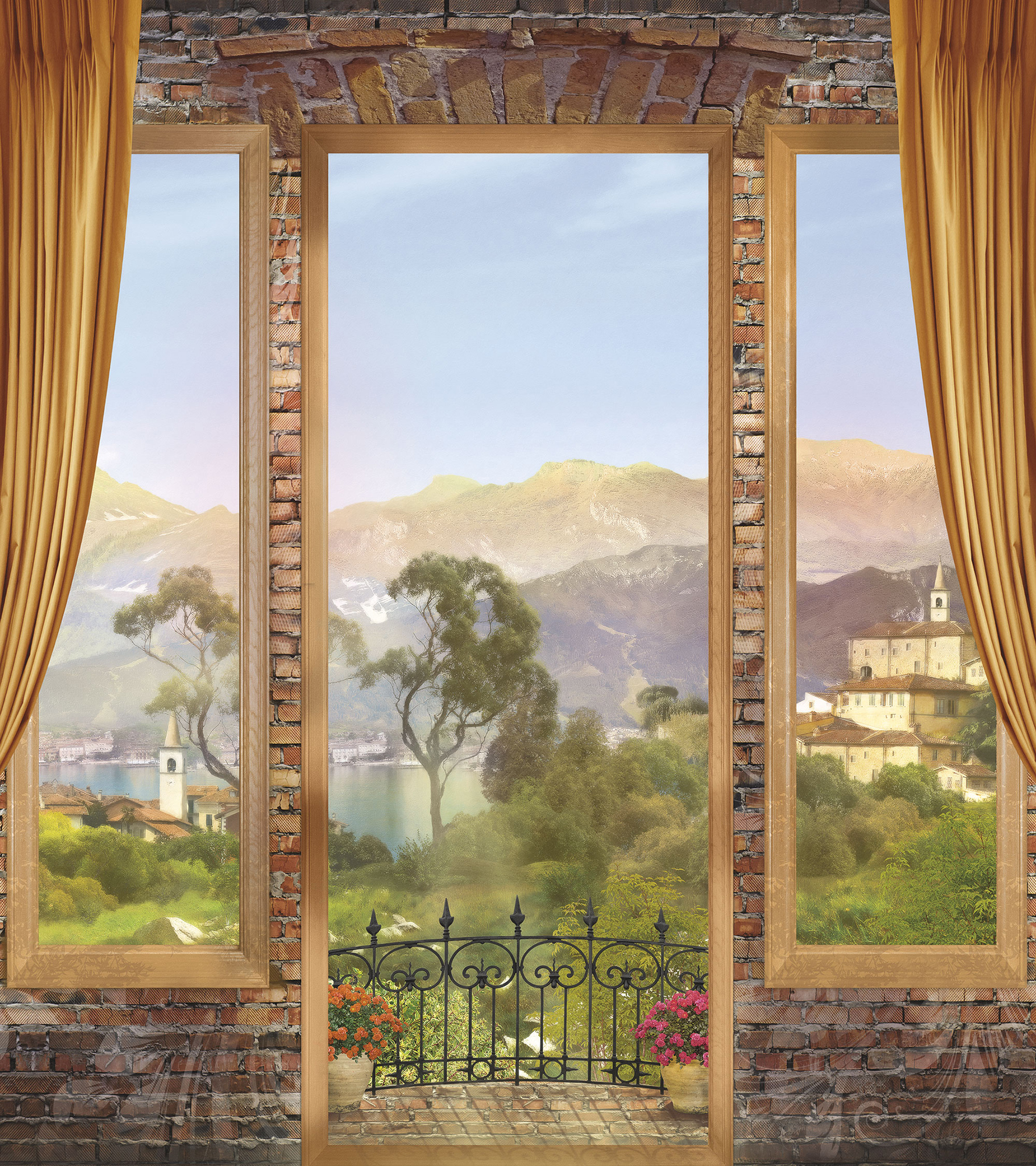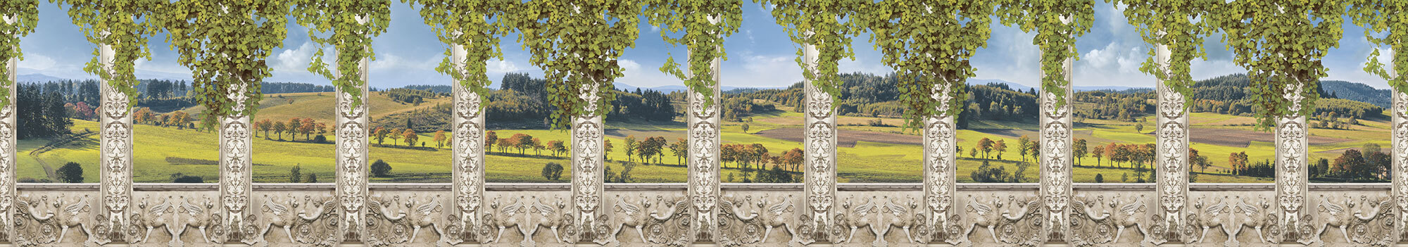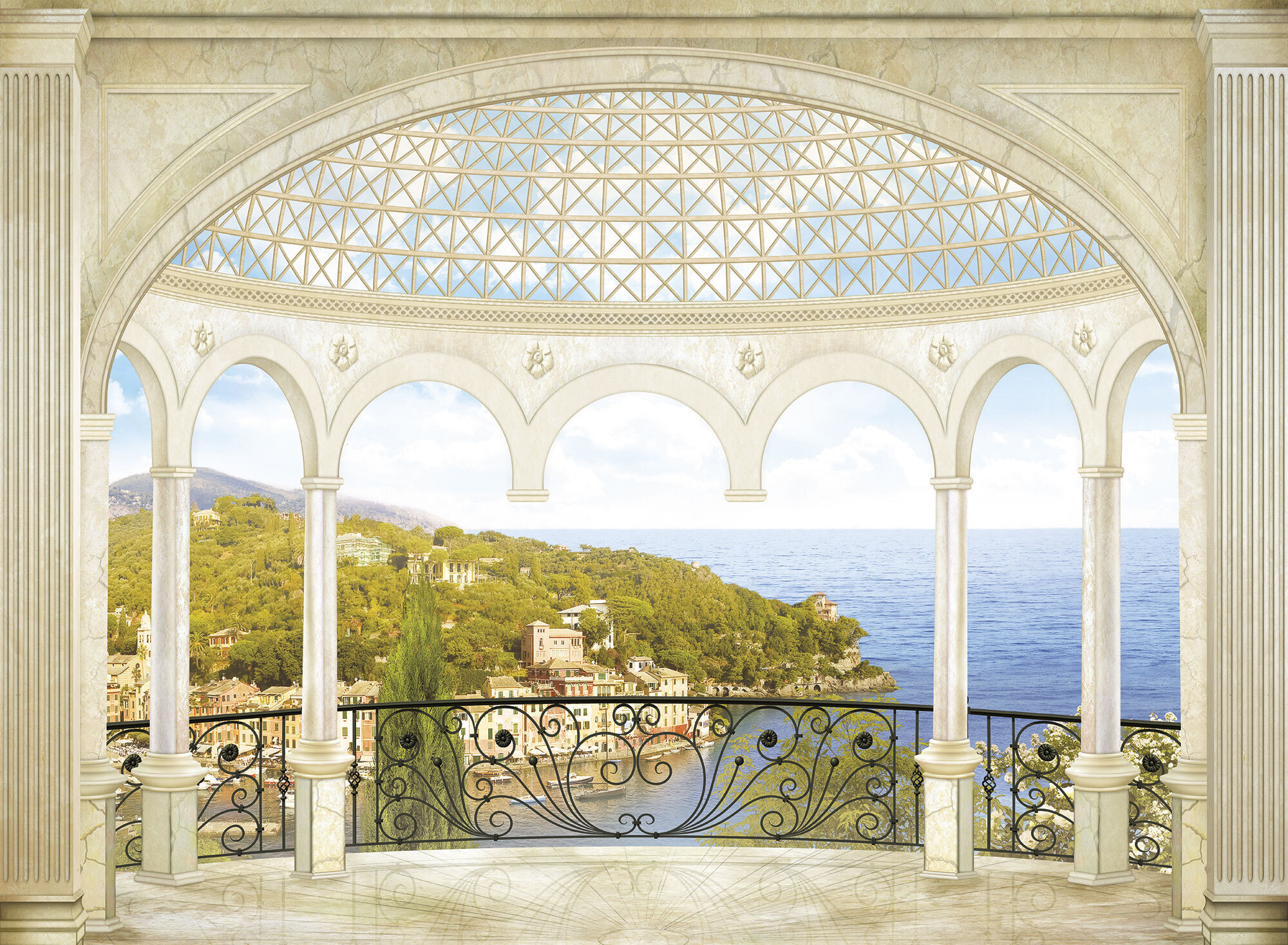 Если вам не повезло с видом из окна или же его вовсе нет, компания ОРТОГРАФ предлагает отличное решение. Коллекция изображений «Обманки» станет для вас своеобразным пространственным порталом. Разместив фреску или фотообои с таким изображением на стене, вы словно перенесётесь на террасы старинных замков, в бальные залы или на балконы с видом на лазурное море.