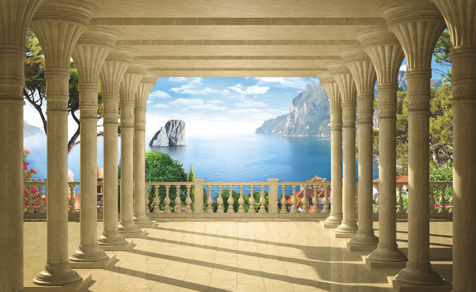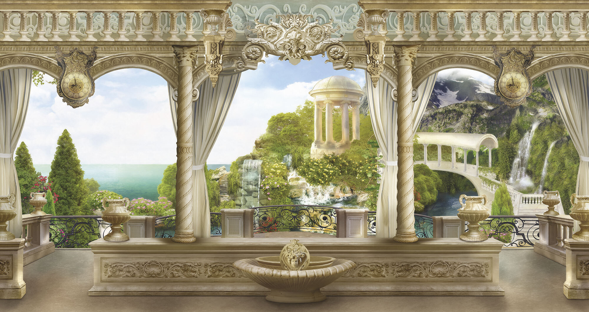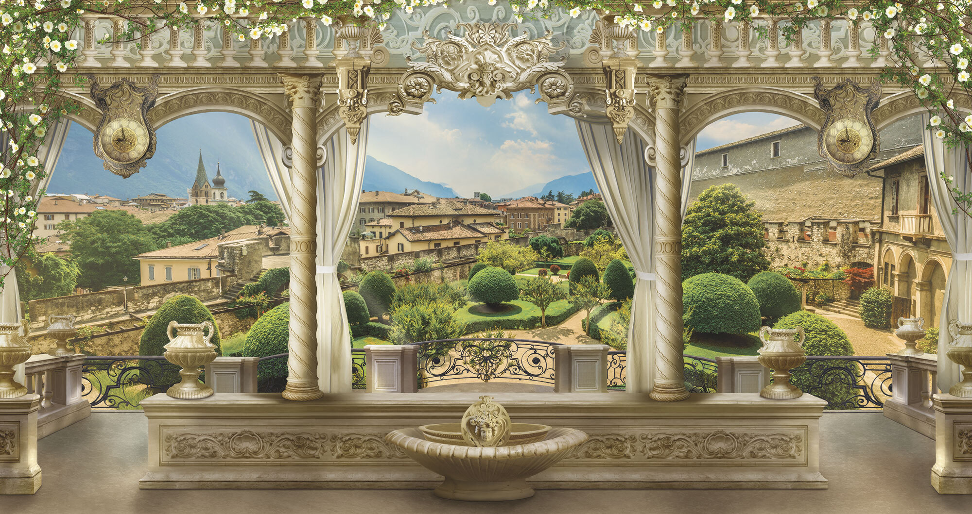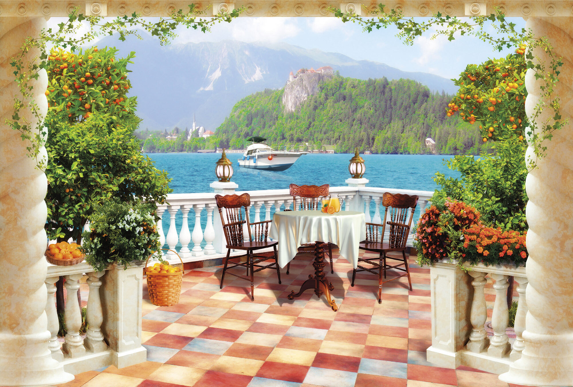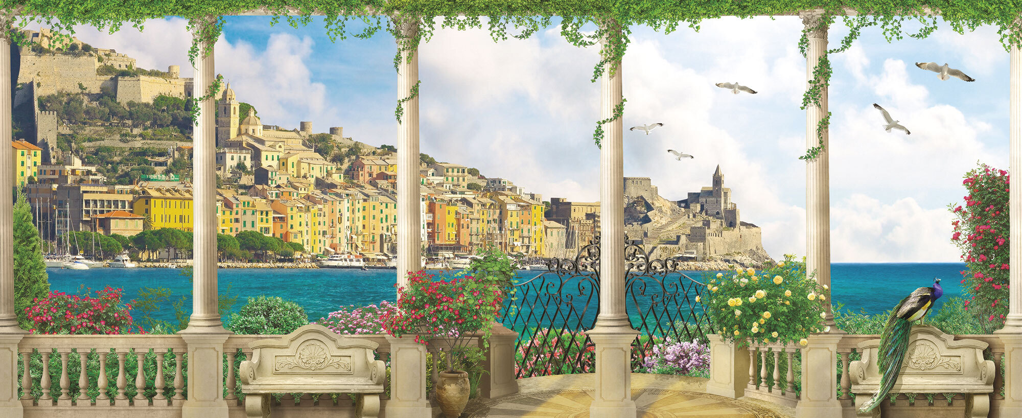Если вам не повезло с видом из окна или же его вовсе нет, компания ОРТОГРАФ предлагает отличное решение. Коллекция изображений «Обманки» станет для вас своеобразным пространственным порталом. Разместив фреску или фотообои с таким изображением на стене, вы словно перенесётесь на террасы старинных замков, в бальные залы или на балконы с видом на лазурное море.