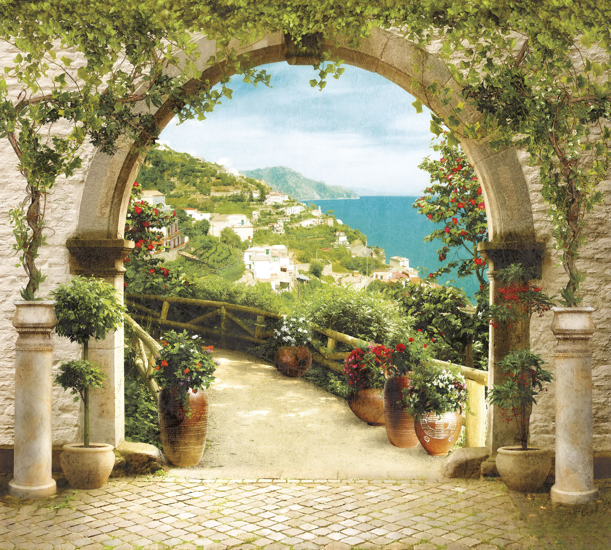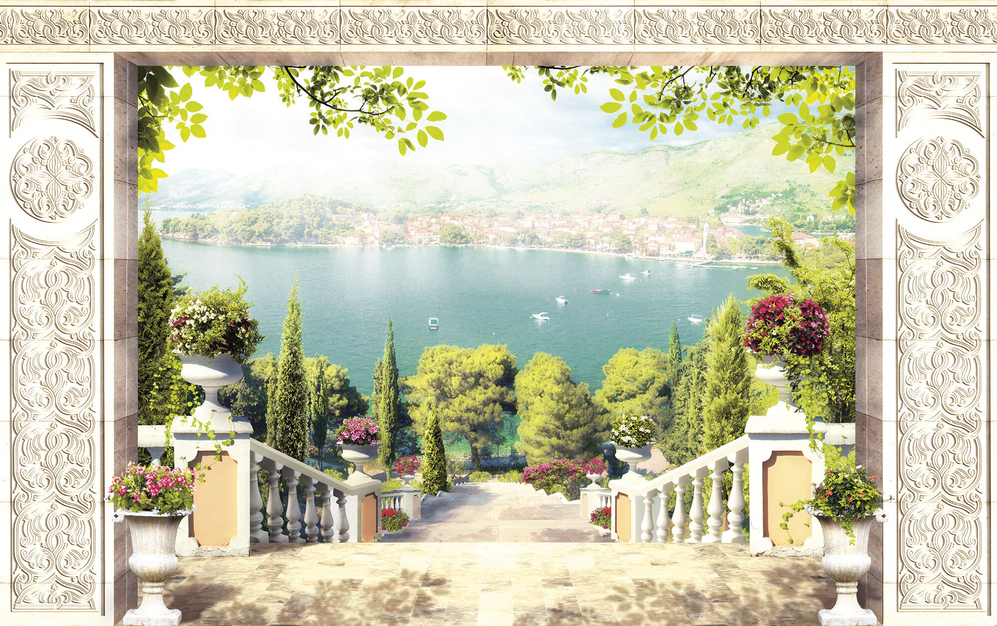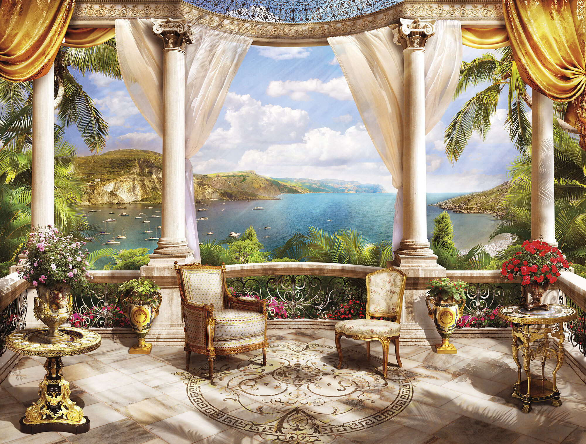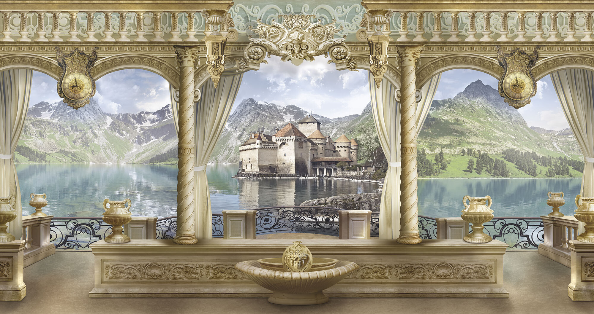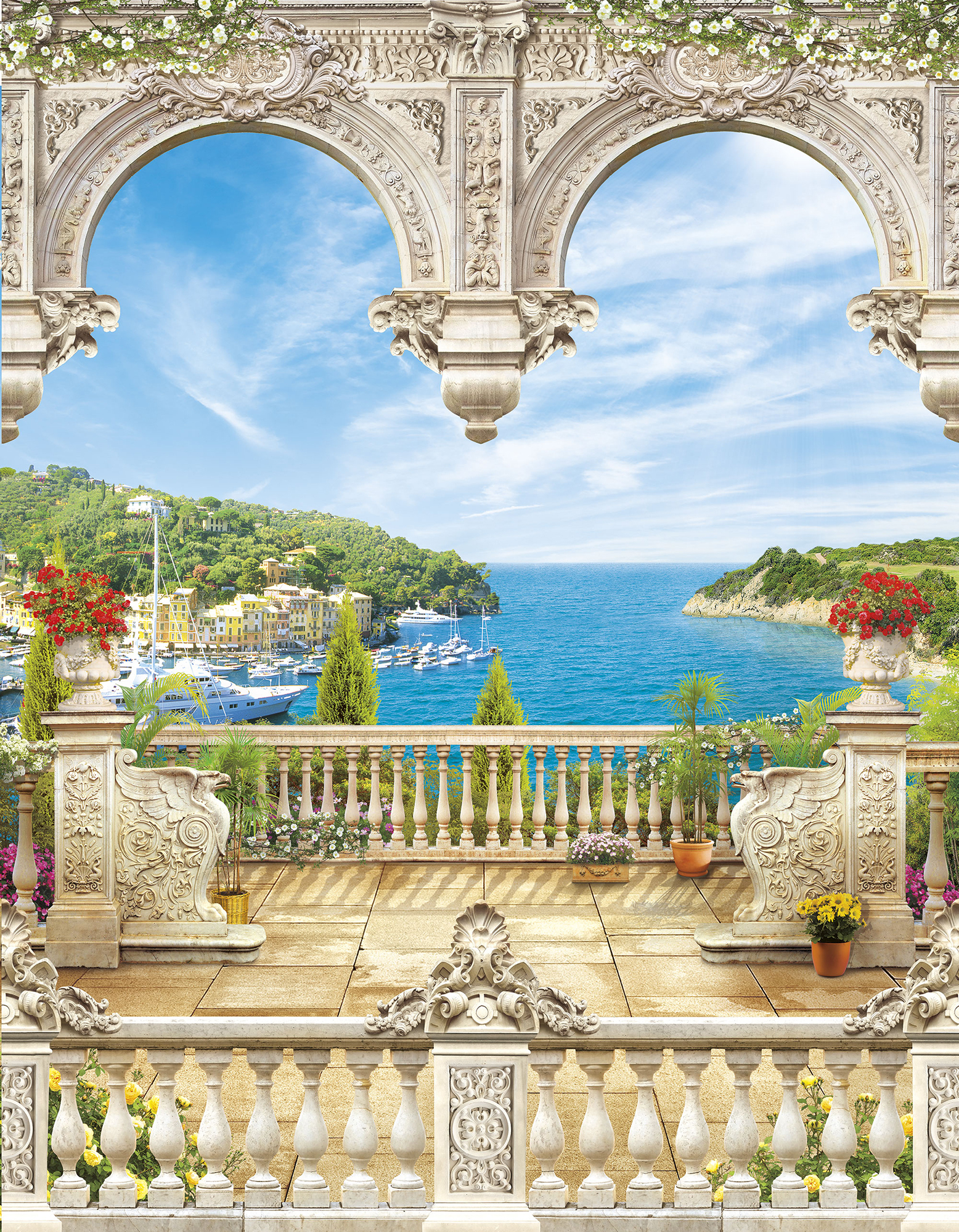 Если вам не повезло с видом из окна или же его вовсе нет, компания ОРТОГРАФ предлагает отличное решение. Коллекция изображений «Обманки» станет для вас своеобразным пространственным порталом. Разместив фреску или фотообои с таким изображением на стене, вы словно перенесётесь на террасы старинных замков, в бальные залы или на балконы с видом на лазурное море.