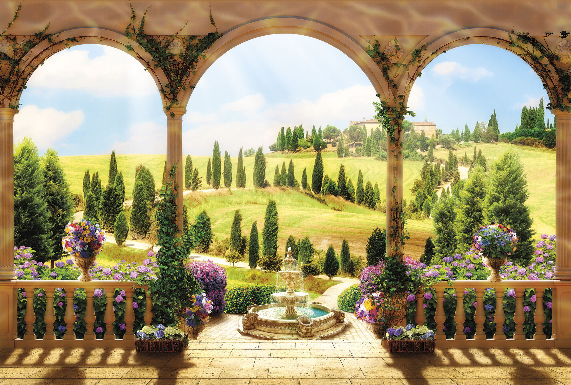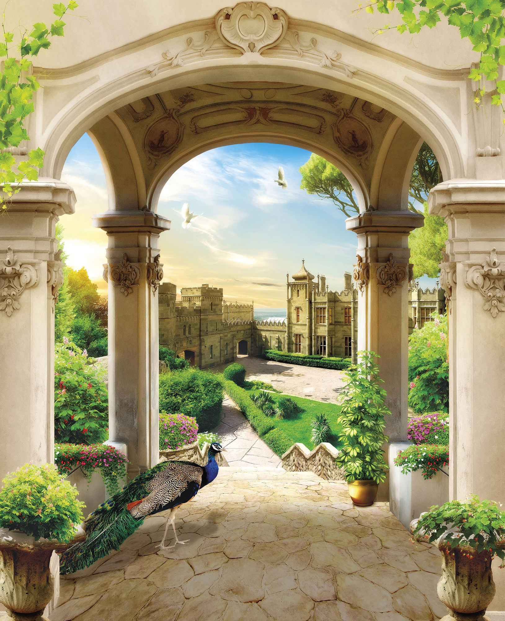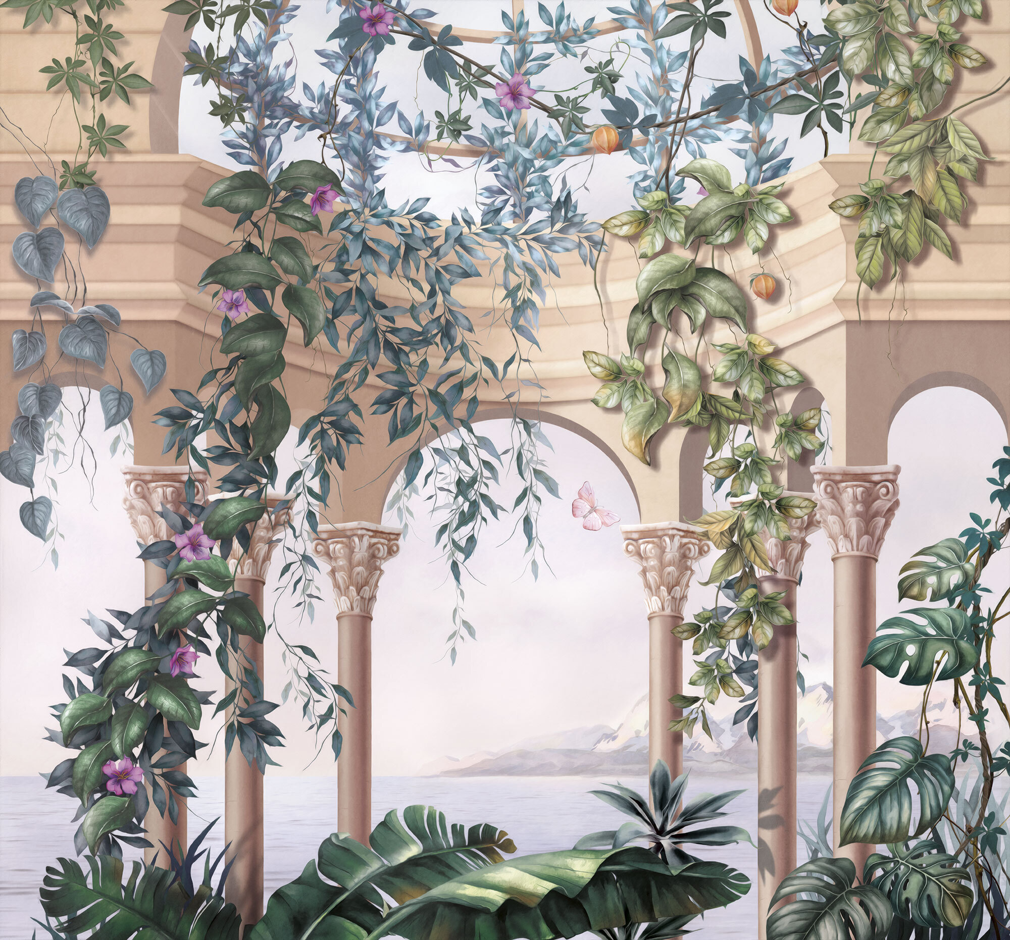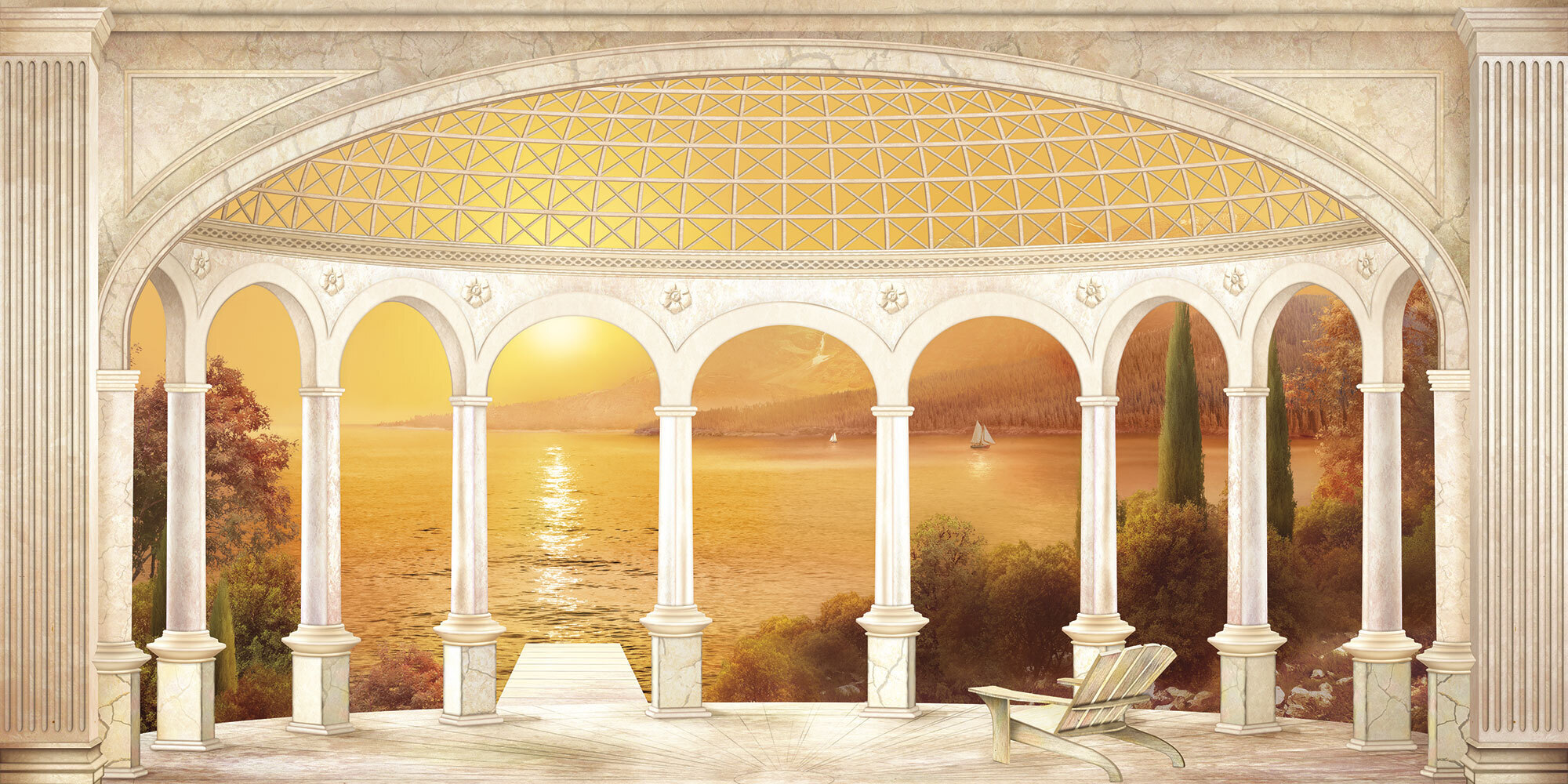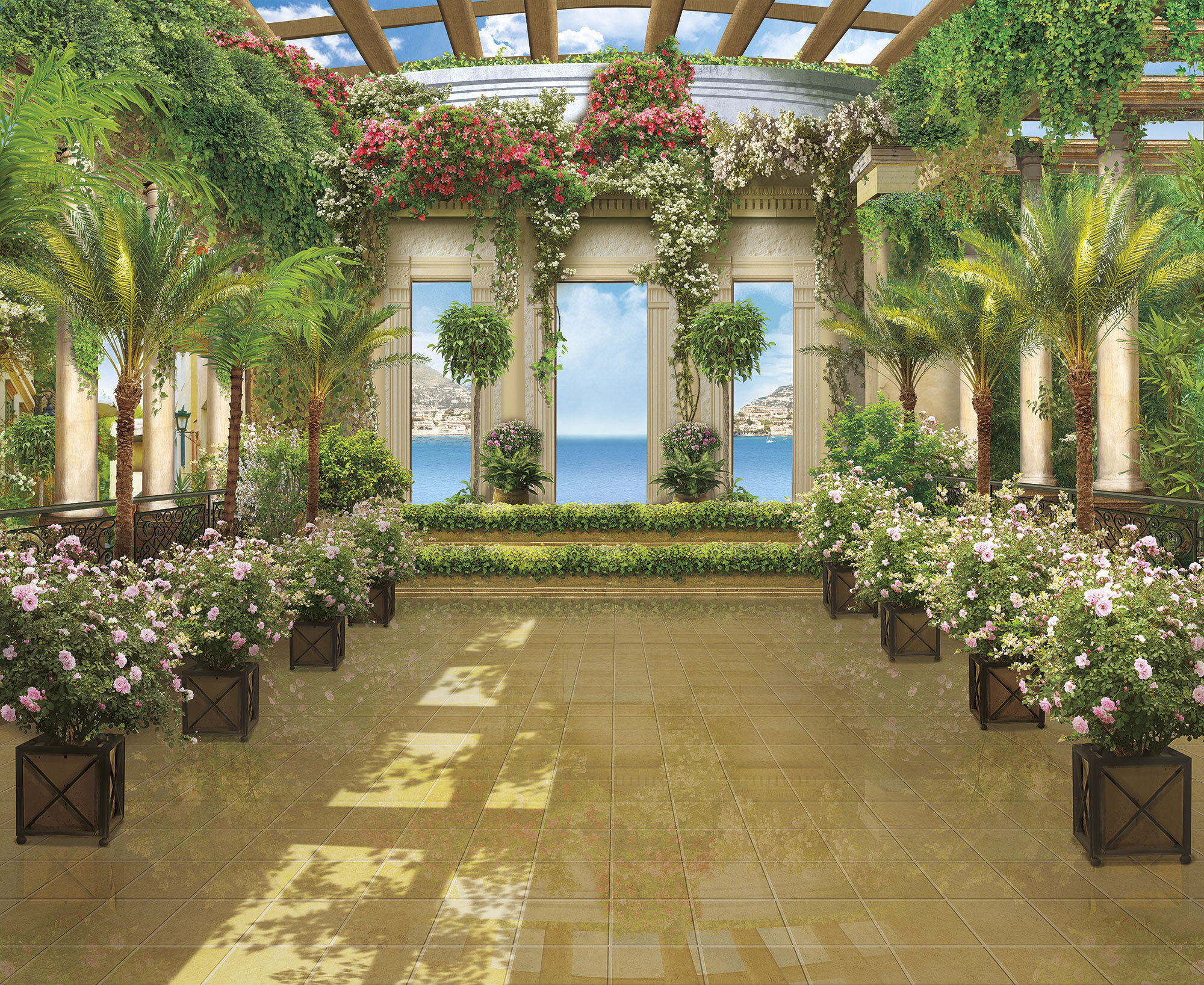 Если вам не повезло с видом из окна или же его вовсе нет, компания ОРТОГРАФ предлагает отличное решение. Коллекция изображений «Обманки» станет для вас своеобразным пространственным порталом. Разместив фреску или фотообои с таким изображением на стене, вы словно перенесётесь на террасы старинных замков, в бальные залы или на балконы с видом на лазурное море.
