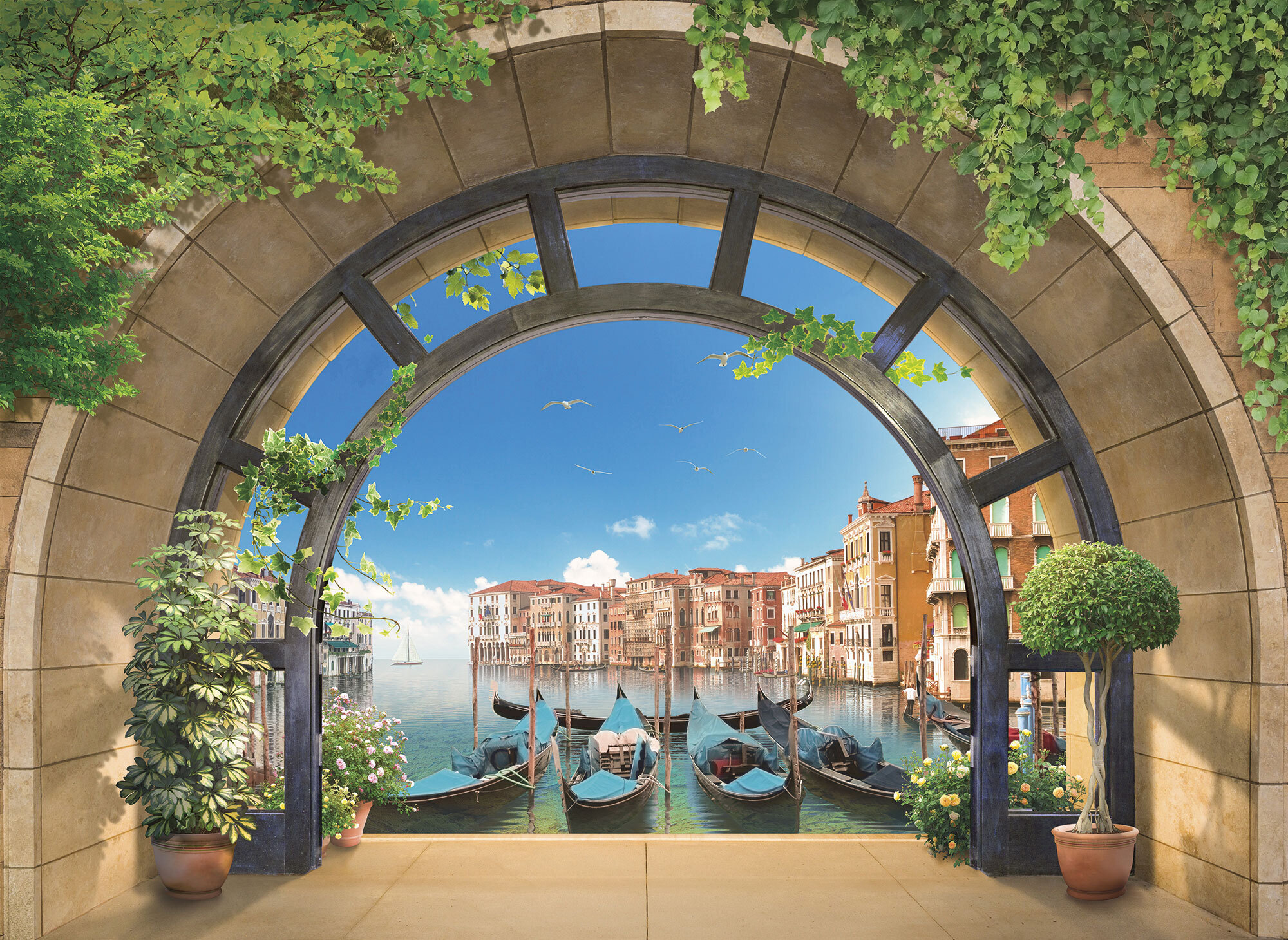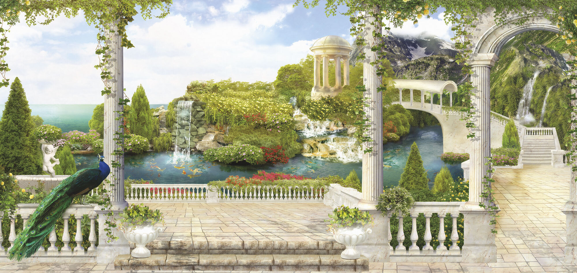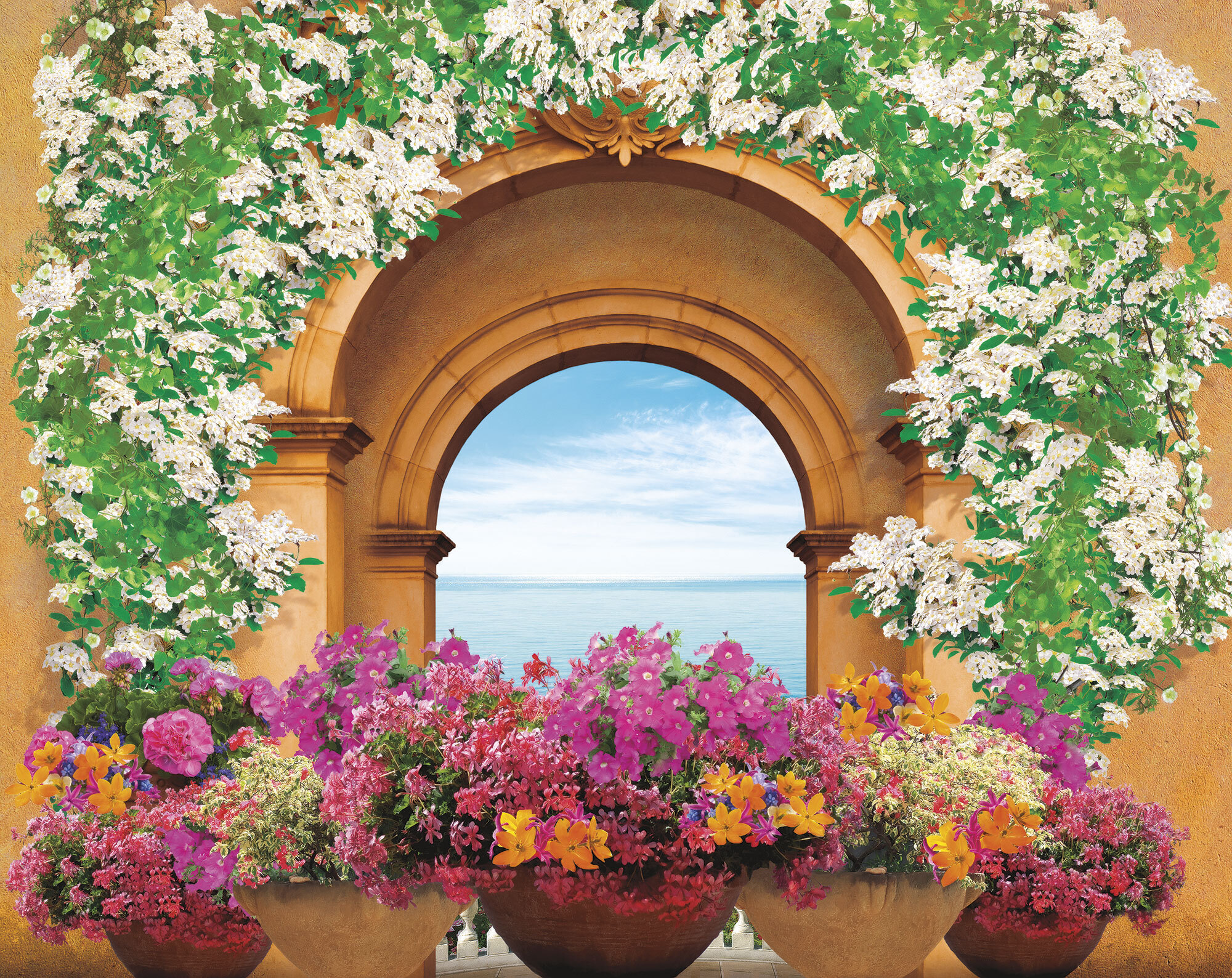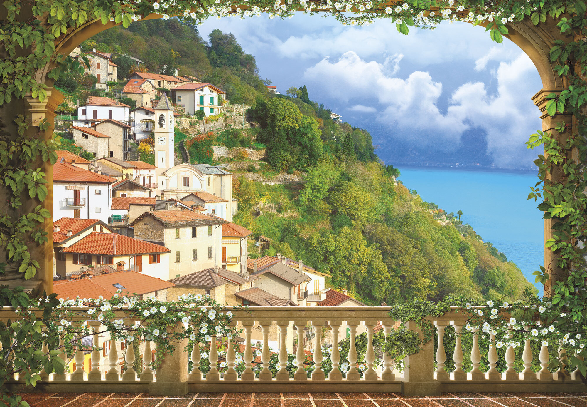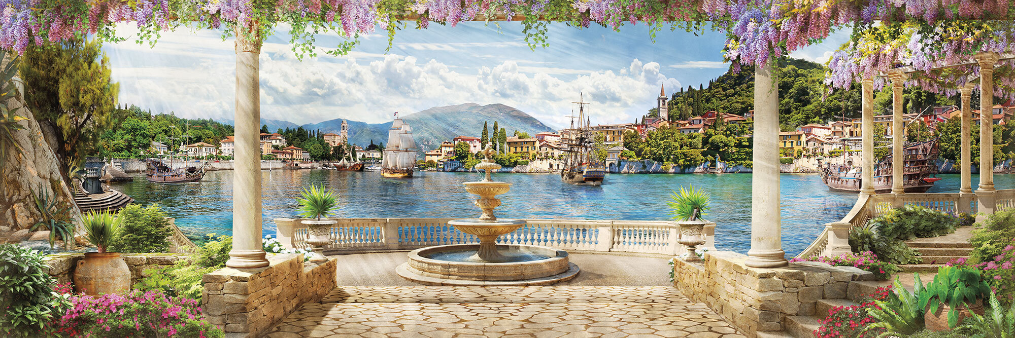 Если вам не повезло с видом из окна или же его вовсе нет, компания ОРТОГРАФ предлагает отличное решение. Коллекция изображений «Обманки» станет для вас своеобразным пространственным порталом. Разместив фреску или фотообои с таким изображением на стене, вы словно перенесётесь на террасы старинных замков, в бальные залы или на балконы с видом на лазурное море.