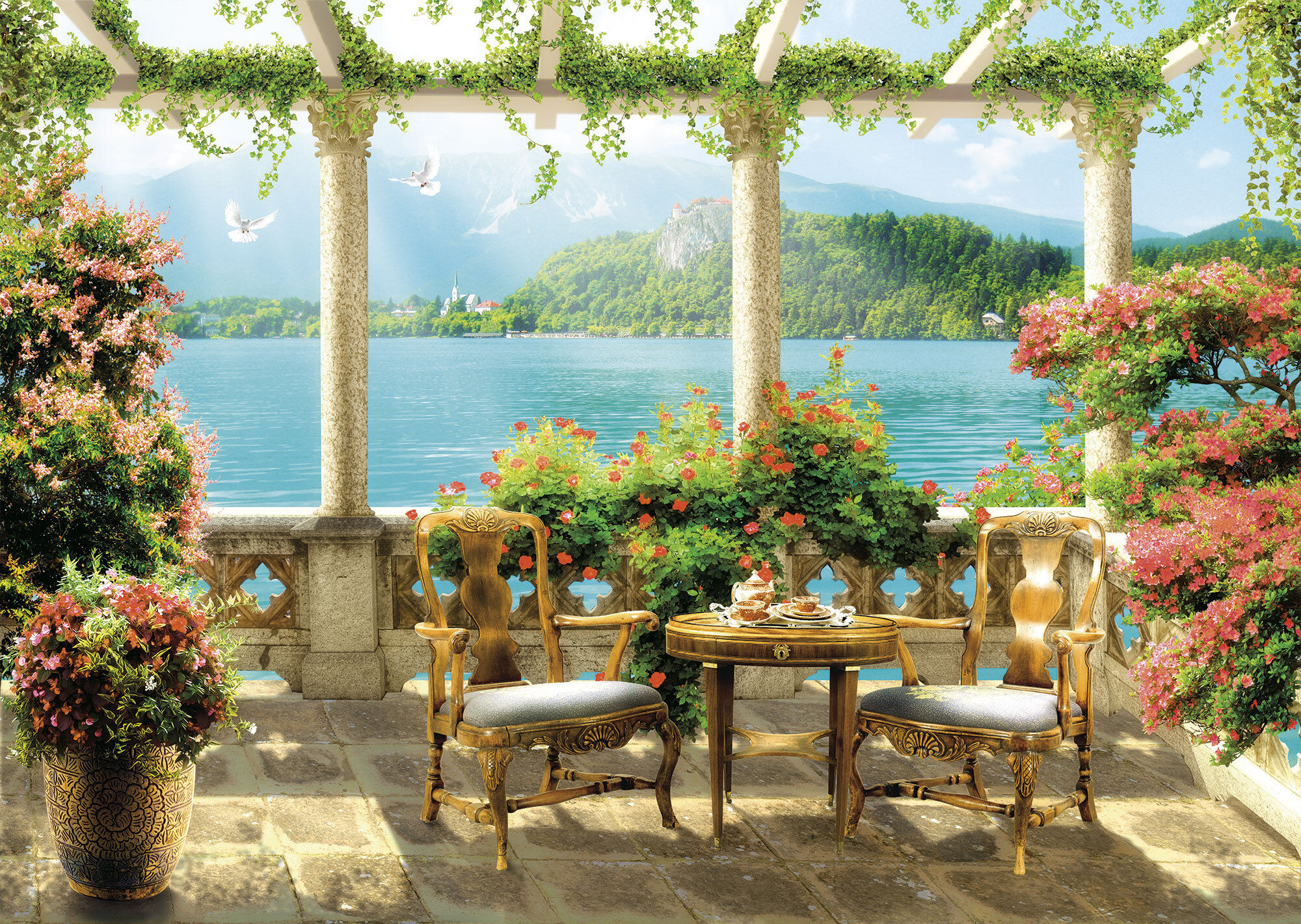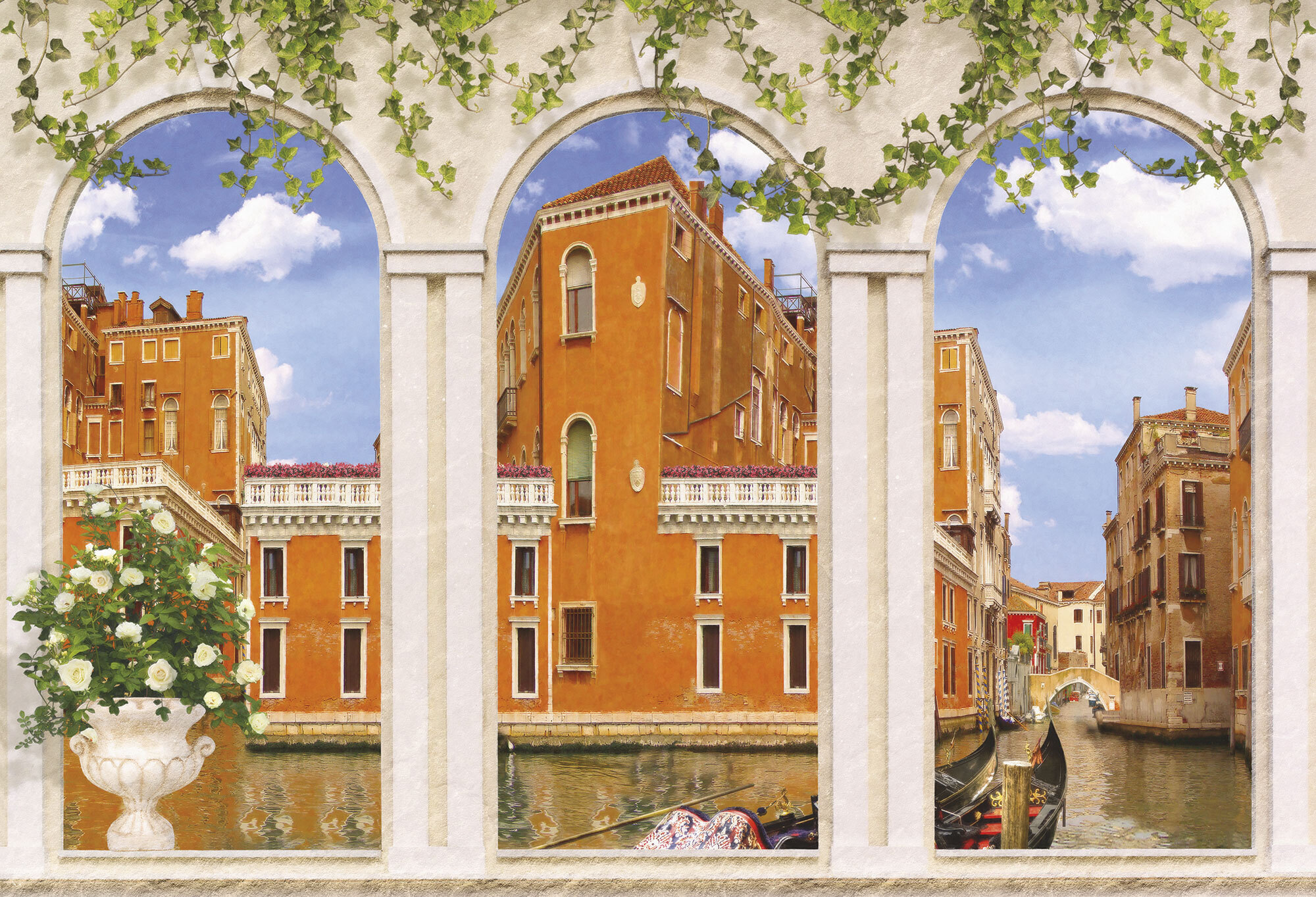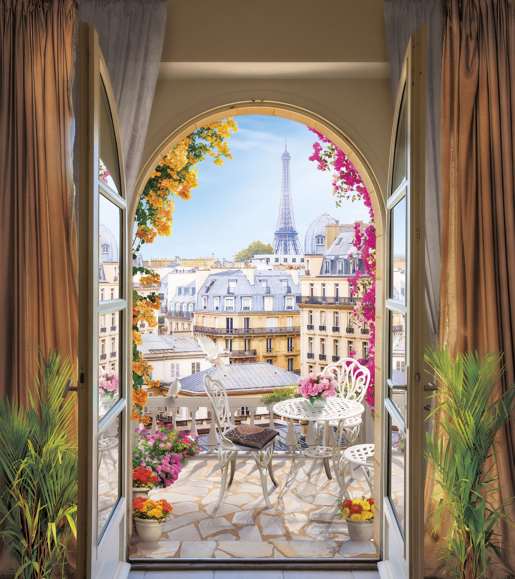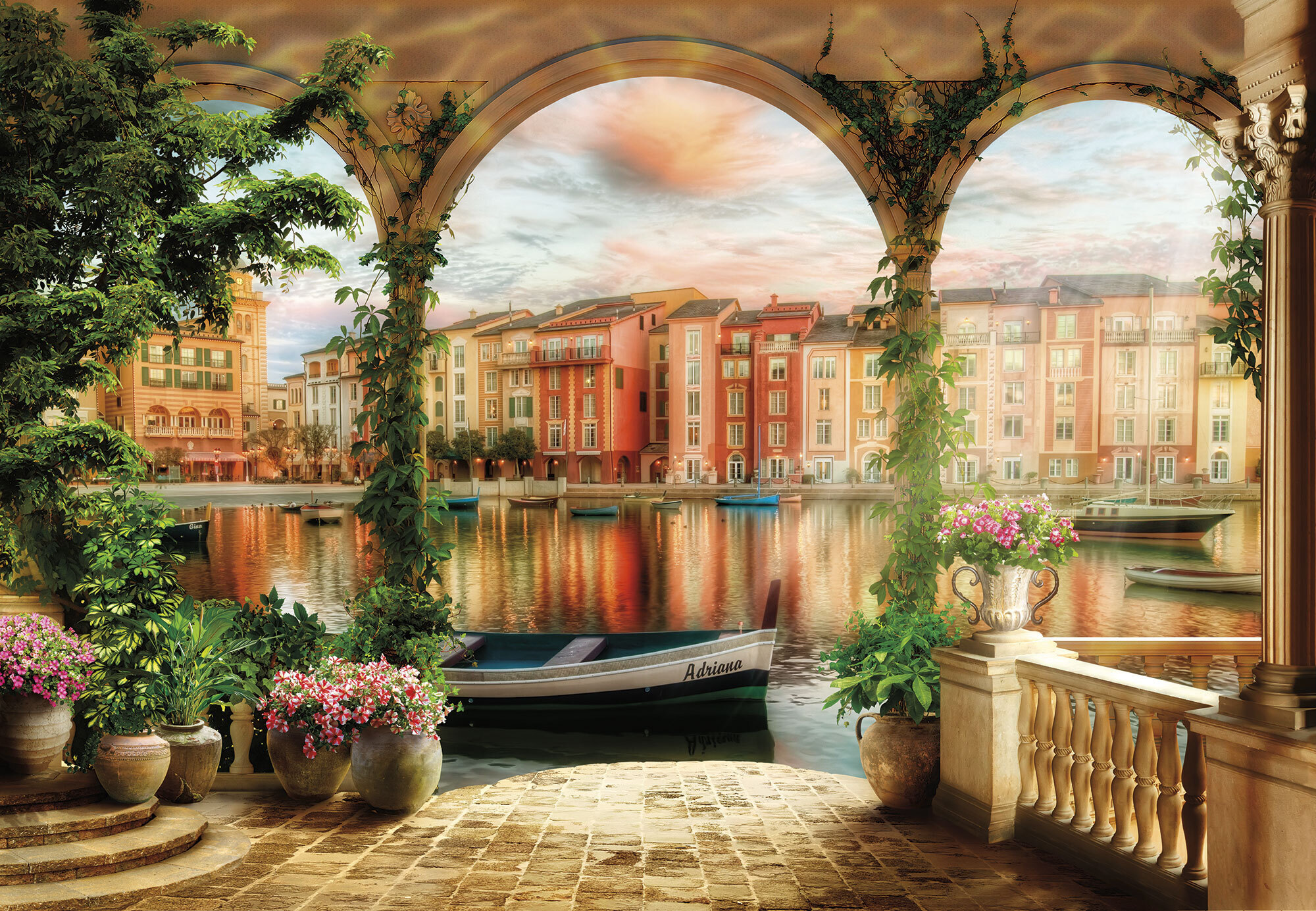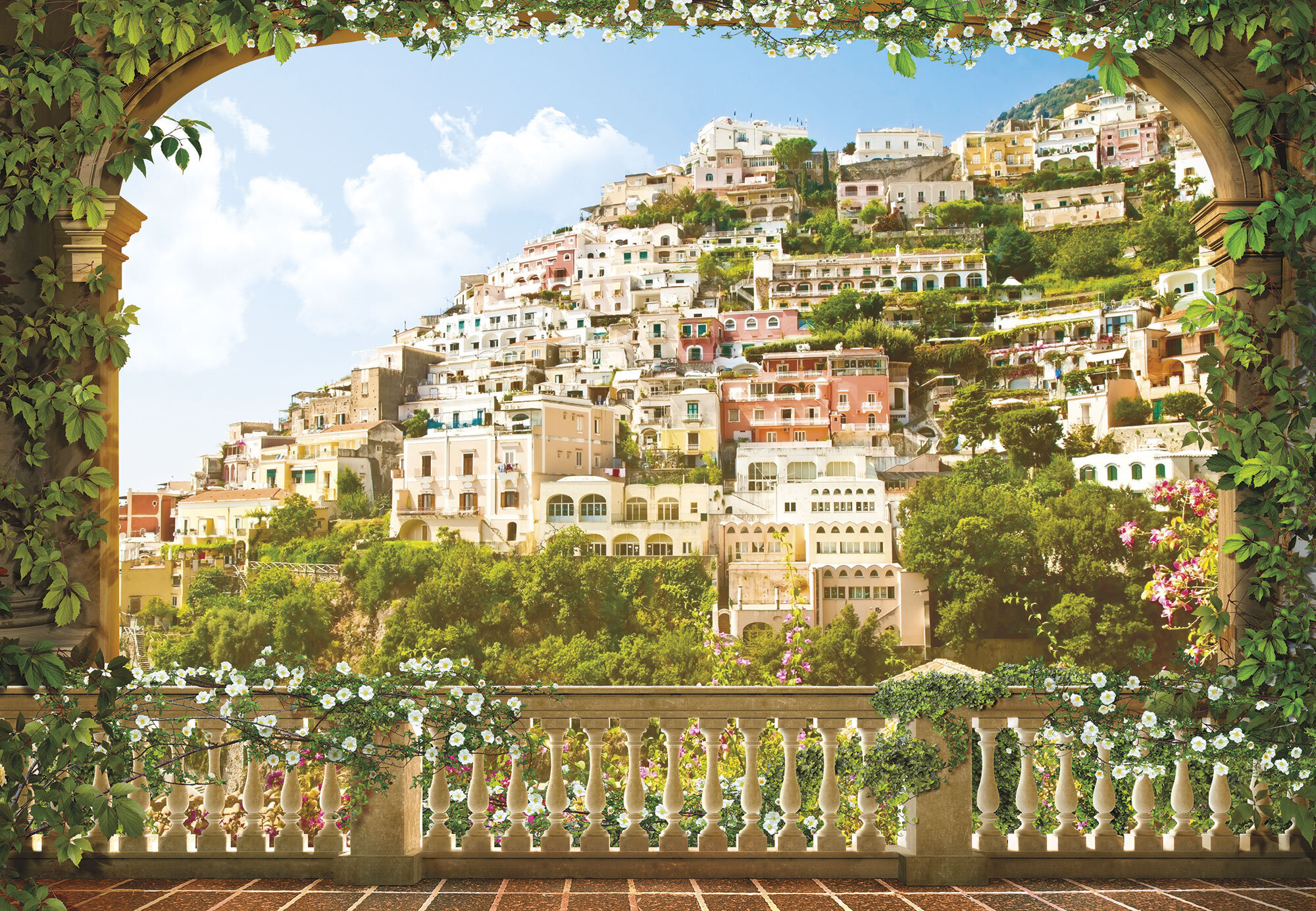 Если вам не повезло с видом из окна или же его вовсе нет, компания ОРТОГРАФ предлагает отличное решение. Коллекция изображений «Обманки» станет для вас своеобразным пространственным порталом. Разместив фреску или фотообои с таким изображением на стене, вы словно перенесётесь на террасы старинных замков, в бальные залы или на балконы с видом на лазурное море.