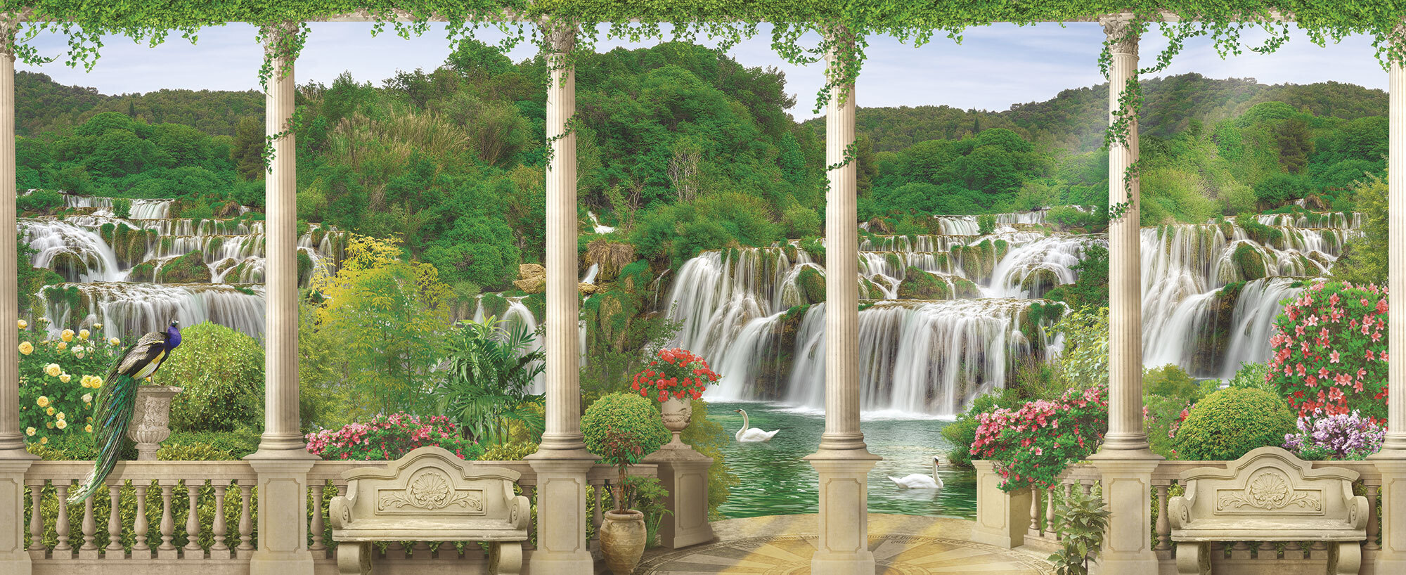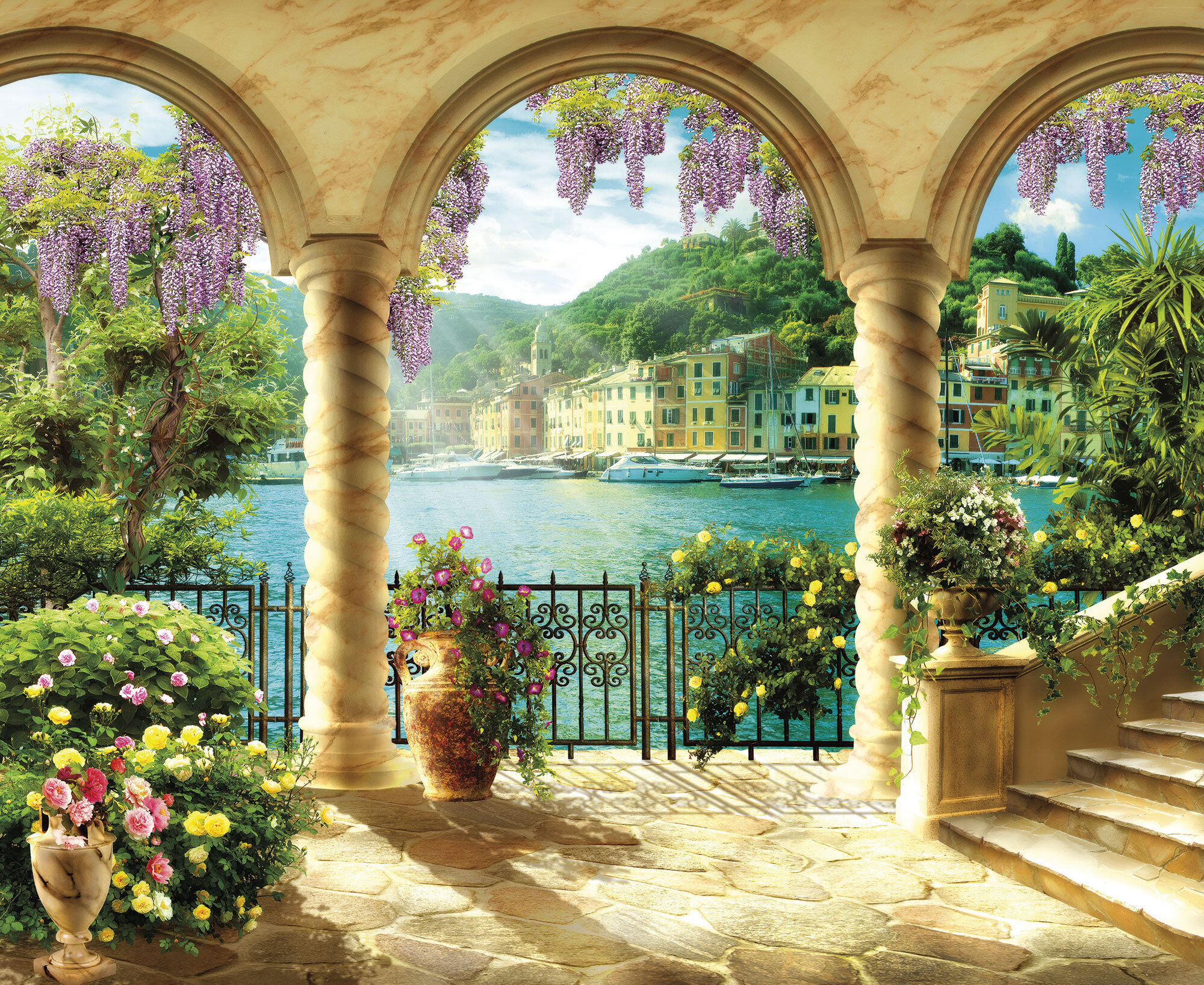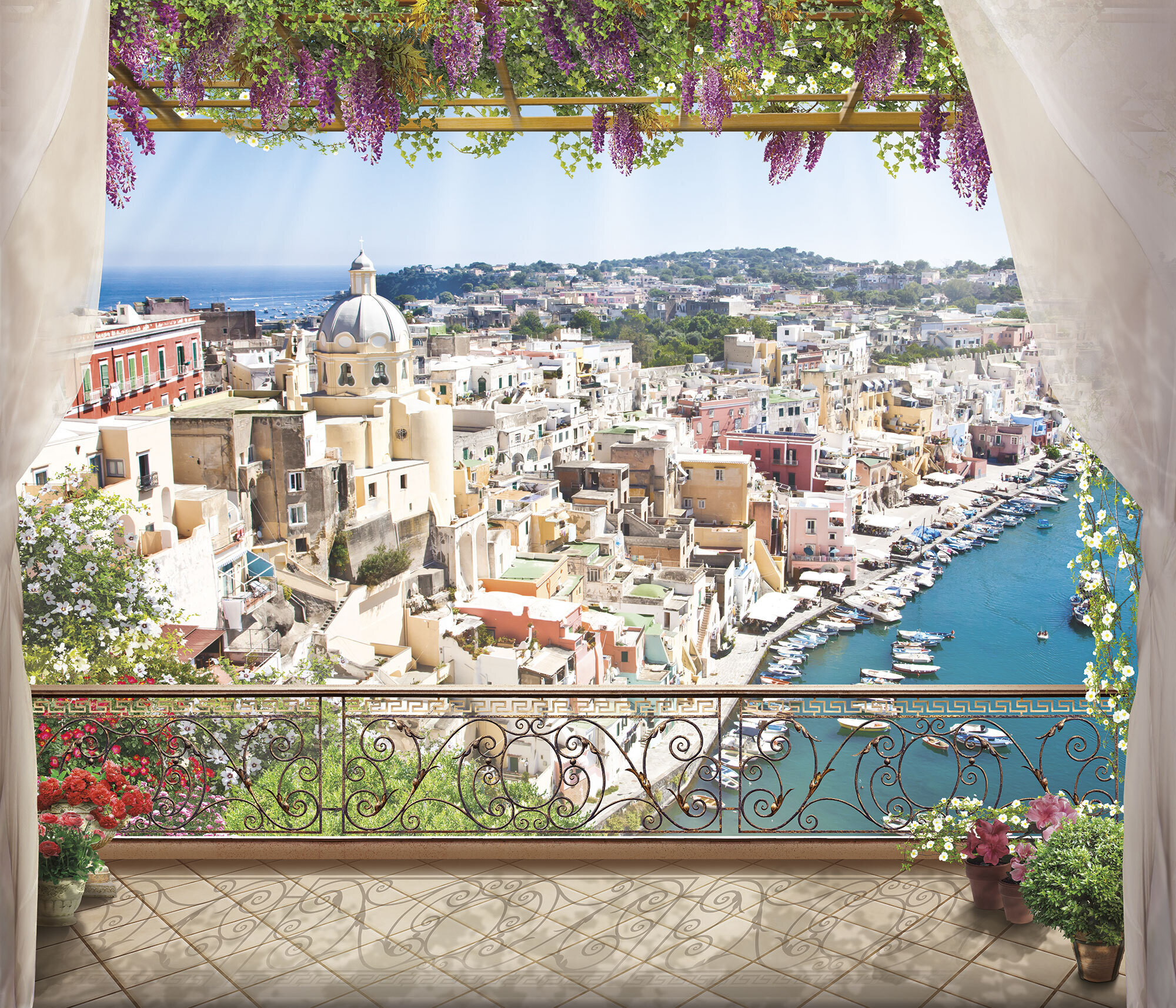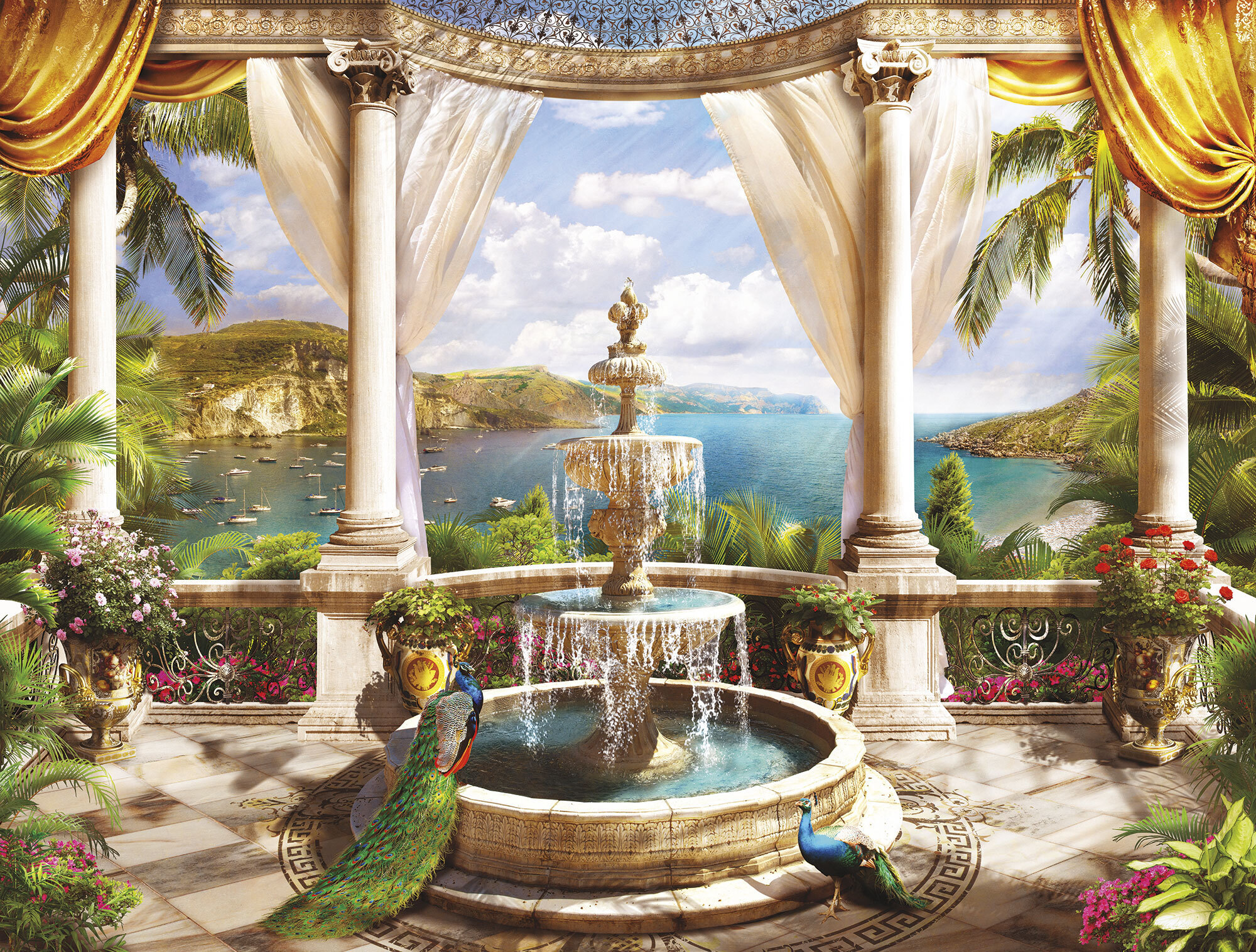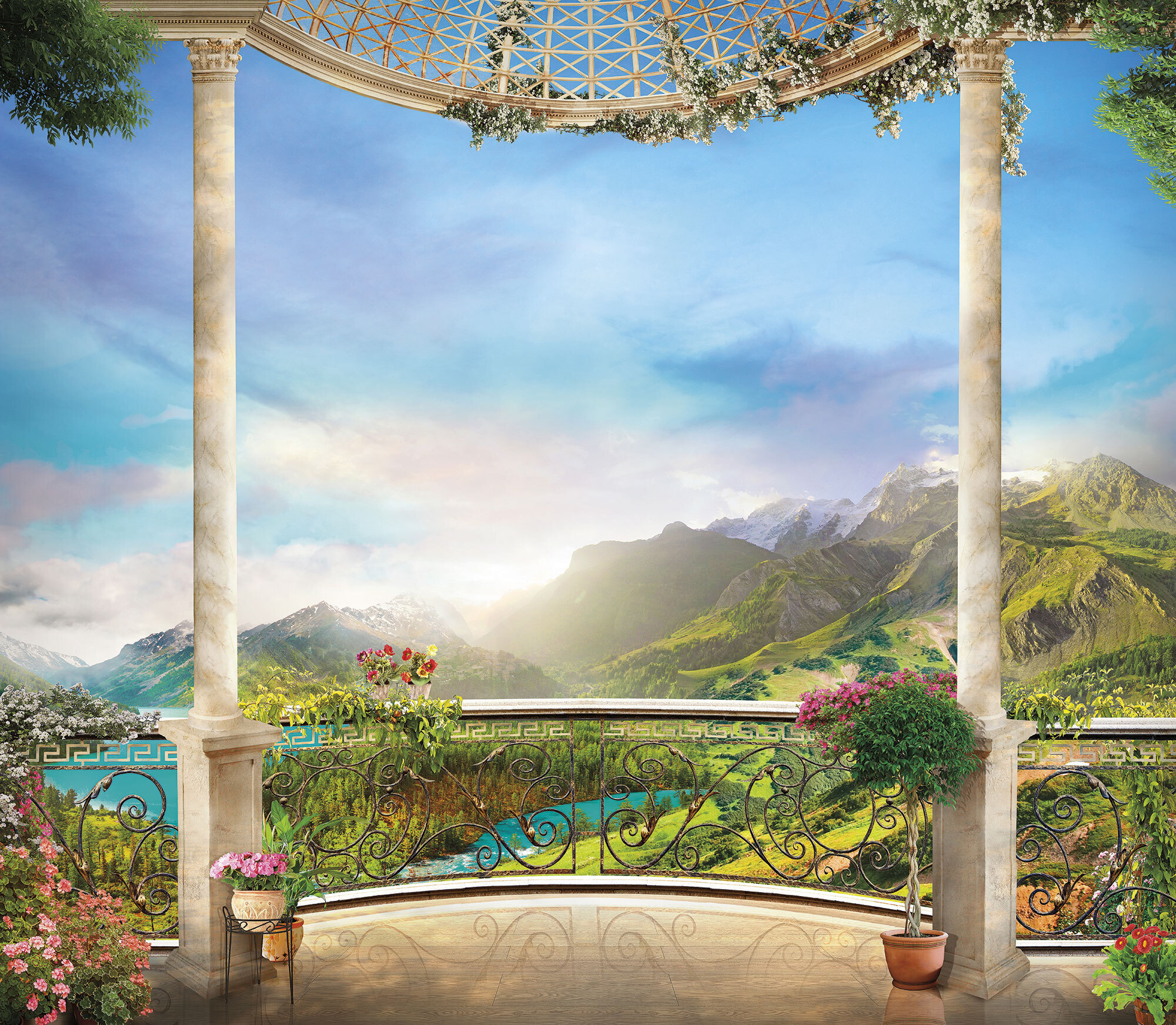 Если вам не повезло с видом из окна или же его вовсе нет, компания ОРТОГРАФ предлагает отличное решение. Коллекция изображений «Обманки» станет для вас своеобразным пространственным порталом. Разместив фреску или фотообои с таким изображением на стене, вы словно перенесётесь на террасы старинных замков, в бальные залы или на балконы с видом на лазурное море.