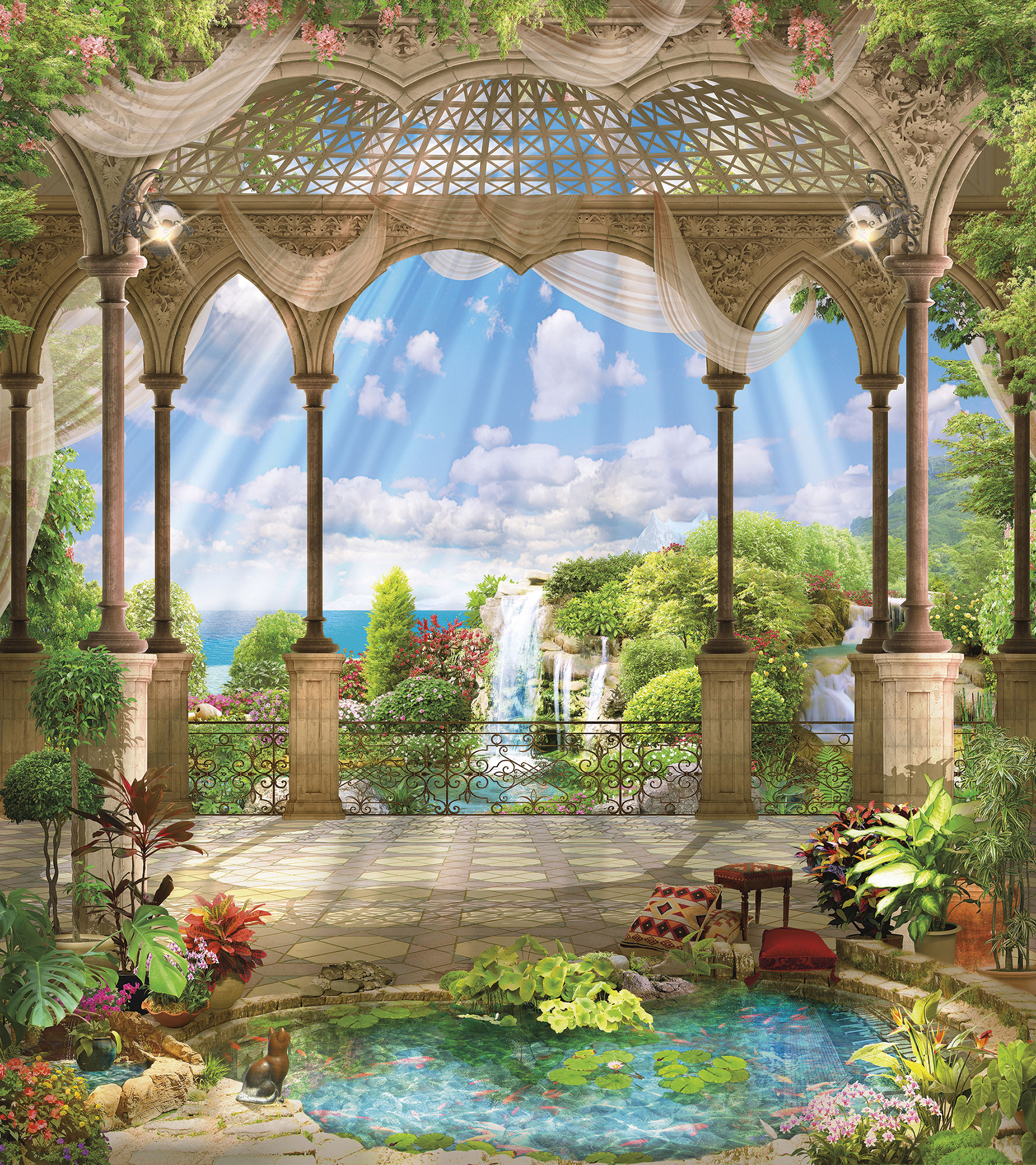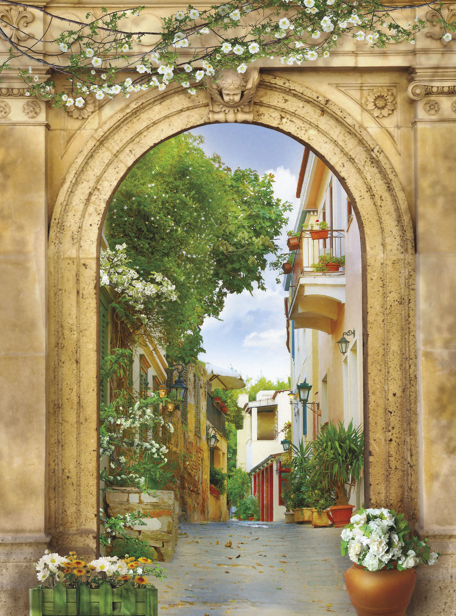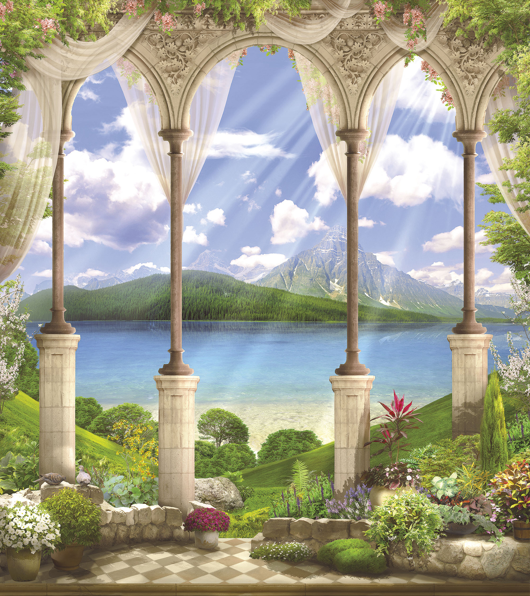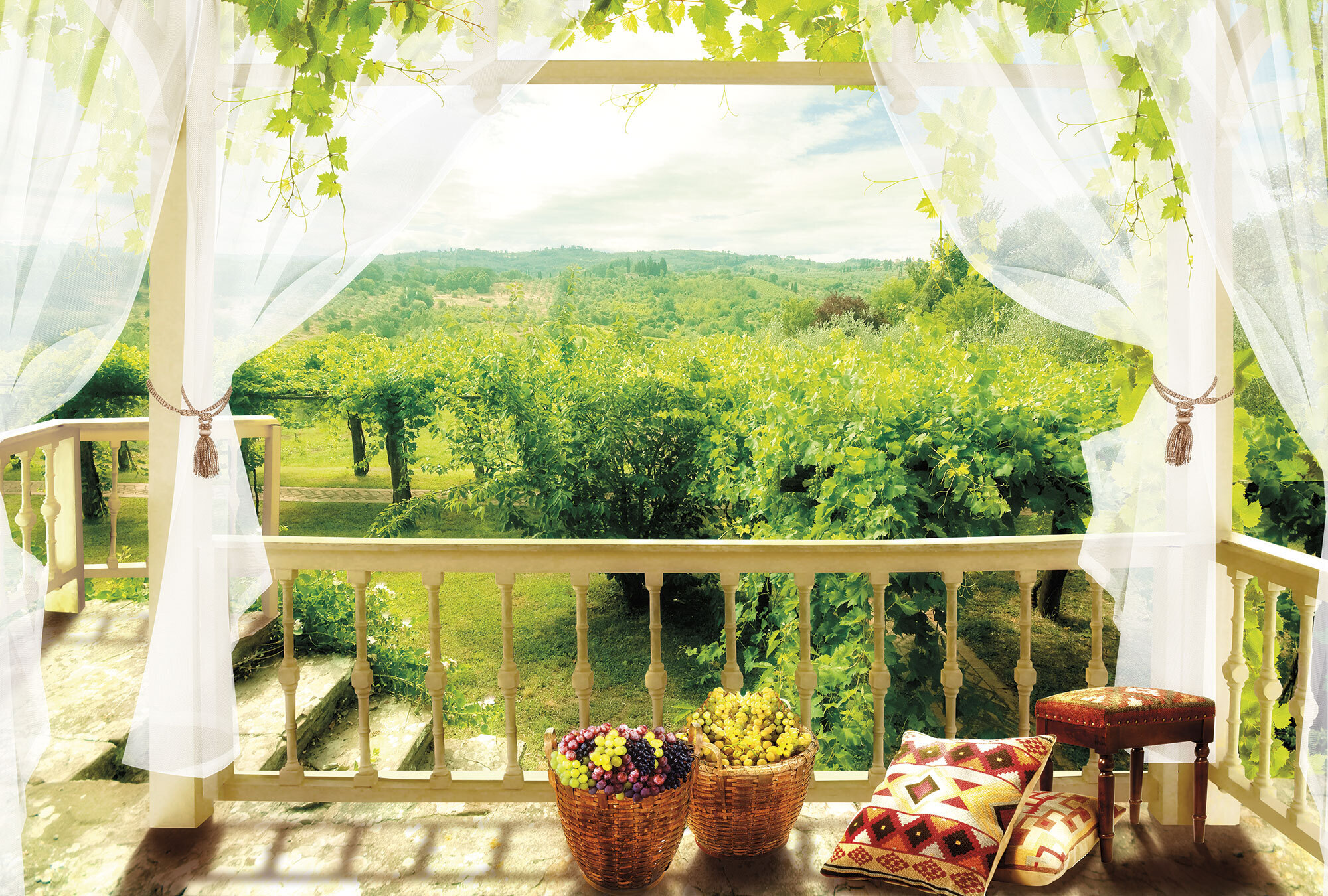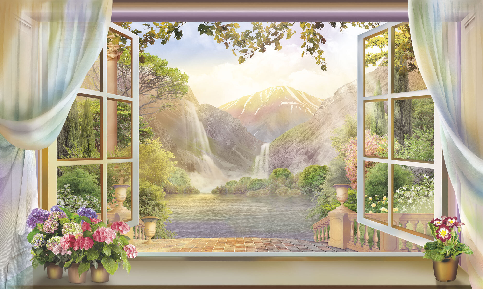 Если вам не повезло с видом из окна или же его вовсе нет, компания ОРТОГРАФ предлагает отличное решение. Коллекция изображений «Обманки» станет для вас своеобразным пространственным порталом. Разместив фреску или фотообои с таким изображением на стене, вы словно перенесётесь на террасы старинных замков, в бальные залы или на балконы с видом на лазурное море.