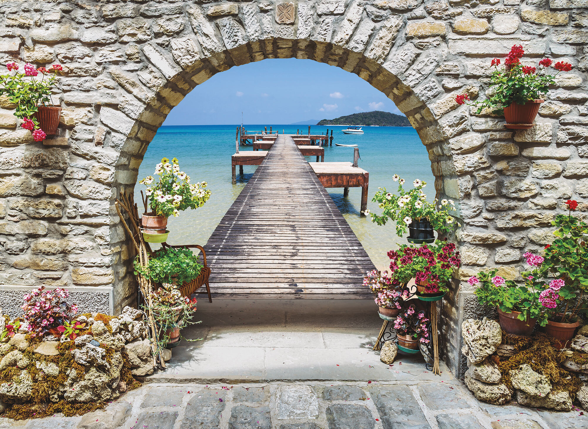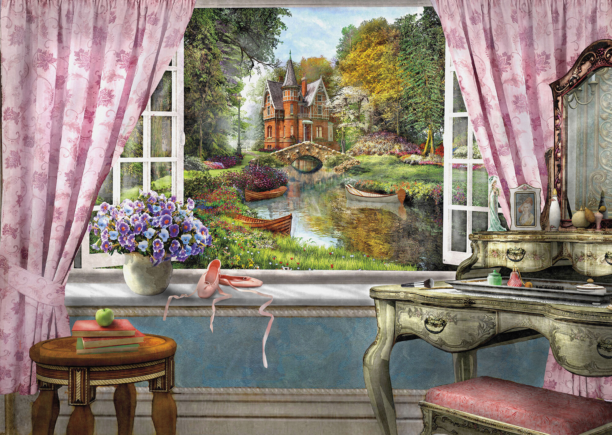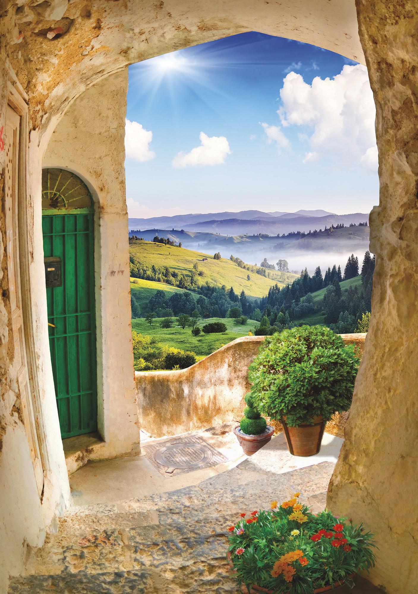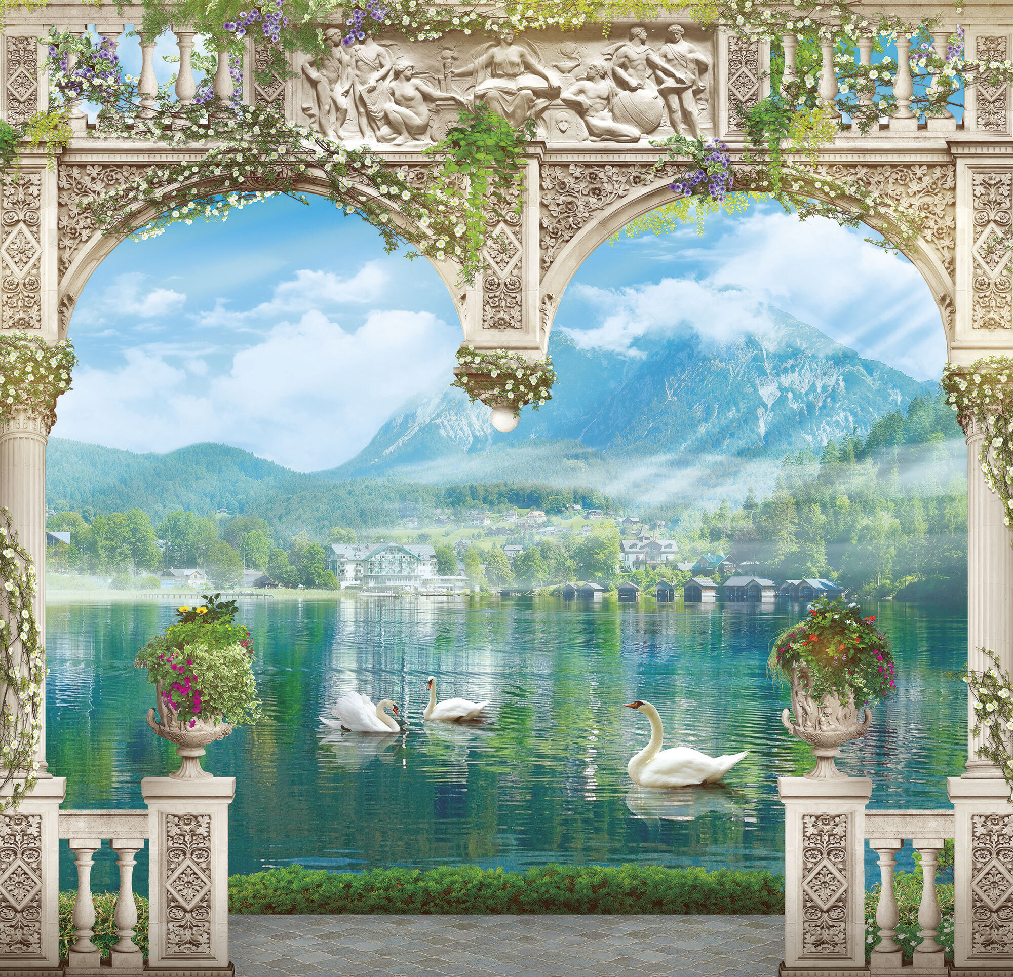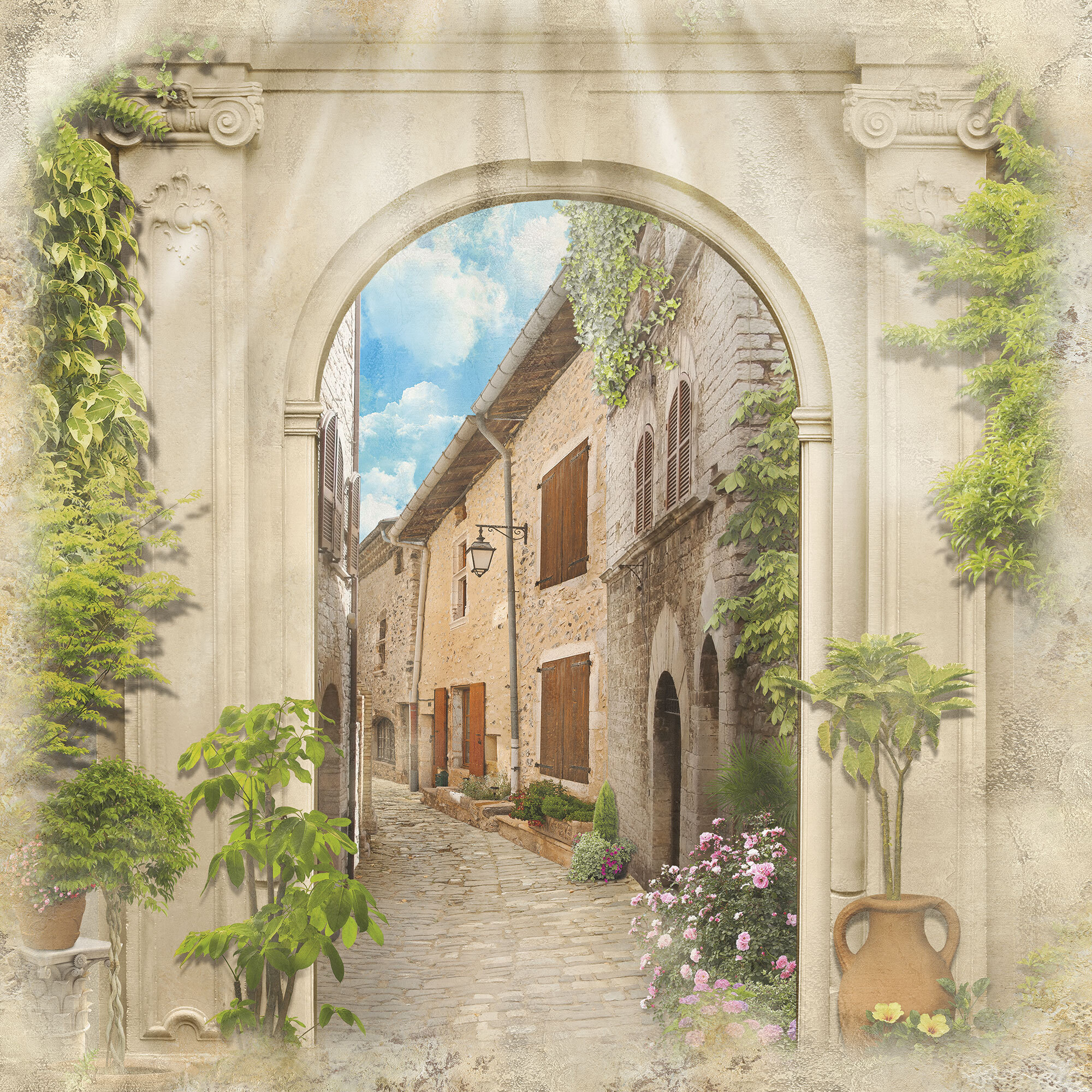 Если вам не повезло с видом из окна или же его вовсе нет, компания ОРТОГРАФ предлагает отличное решение. Коллекция изображений «Обманки» станет для вас своеобразным пространственным порталом. Разместив фреску или фотообои с таким изображением на стене, вы словно перенесётесь на террасы старинных замков, в бальные залы или на балконы с видом на лазурное море.