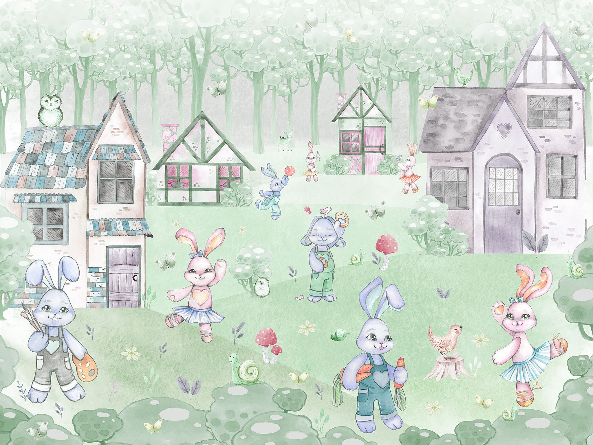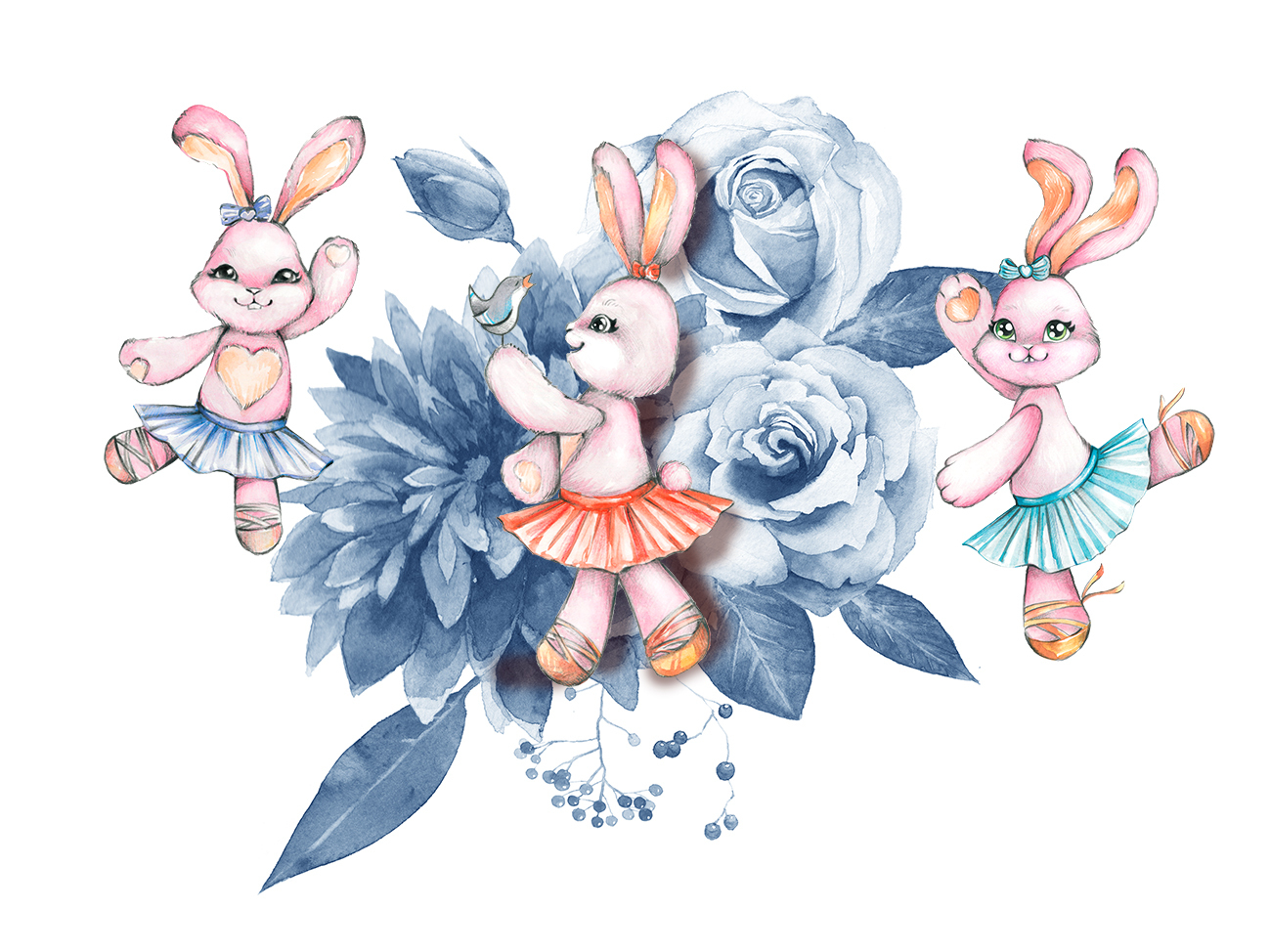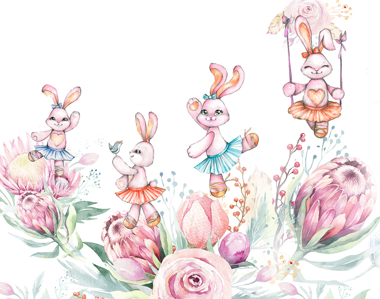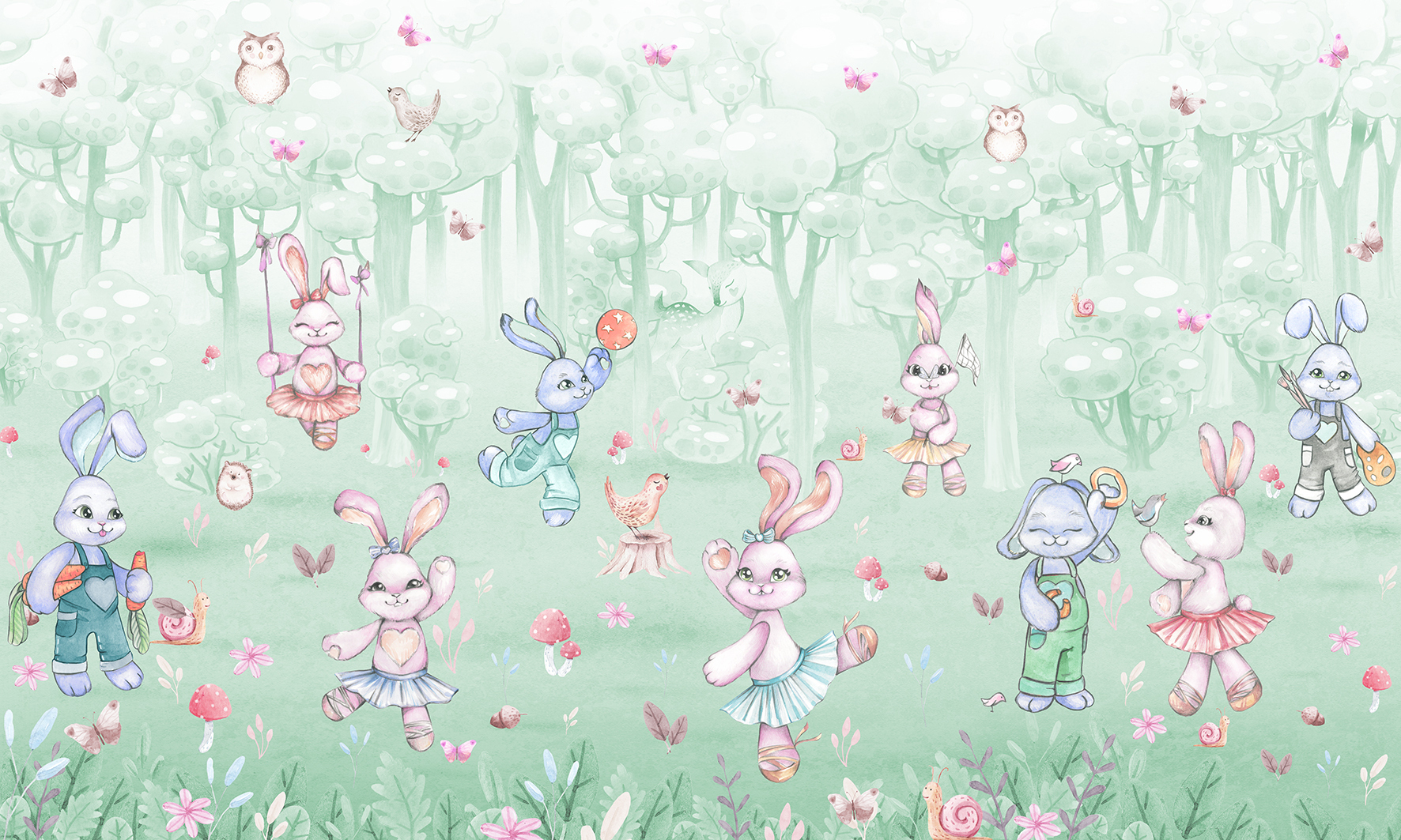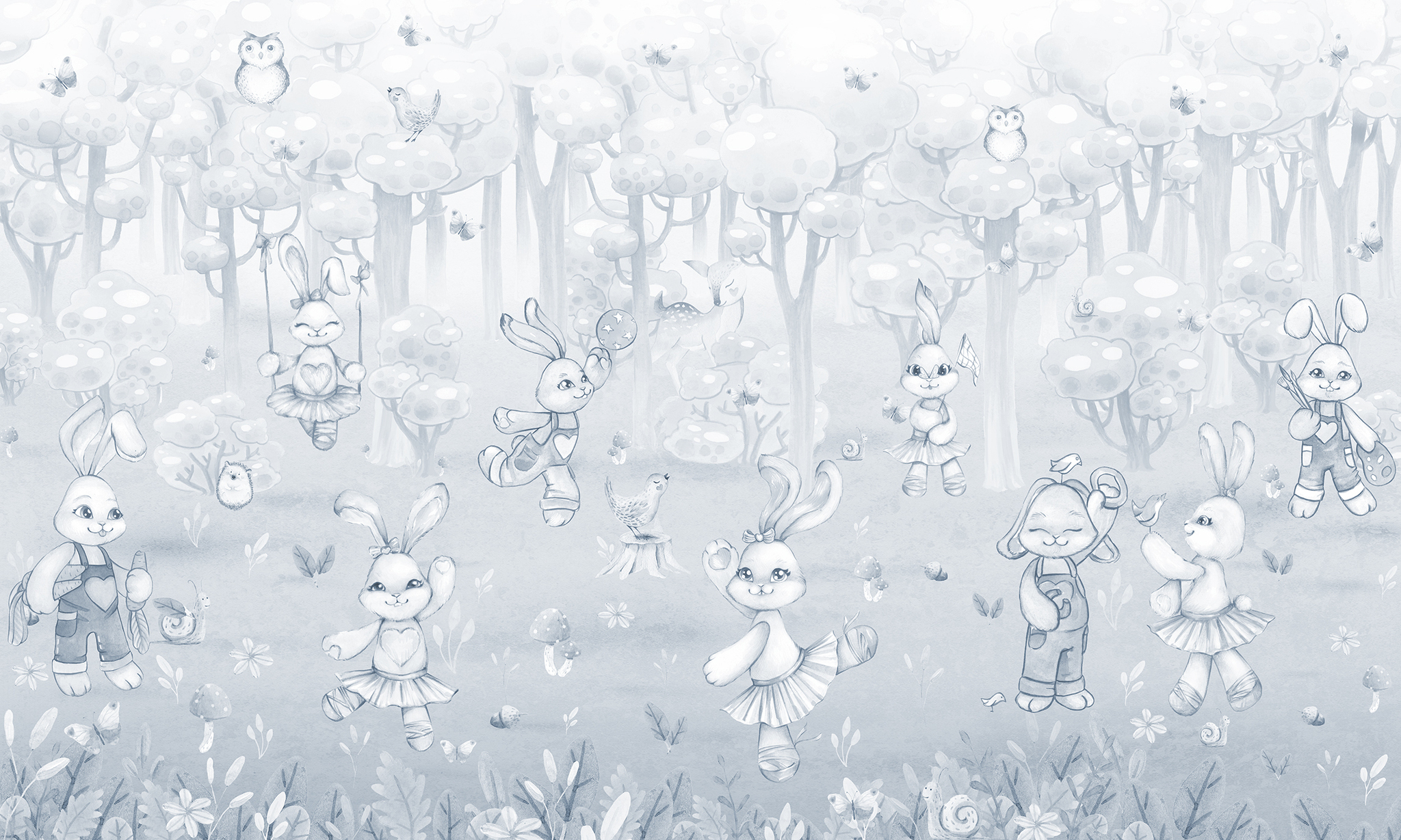Герои этой коллекции — очаровательные зайчата, которые с первого взгляда покоряют своей милотой. Они изображены в танце или в лёгком движении, словно кто-то внезапно включил свет. И когда комната и её обитатели уснут, они продолжат свои весёлые игры!