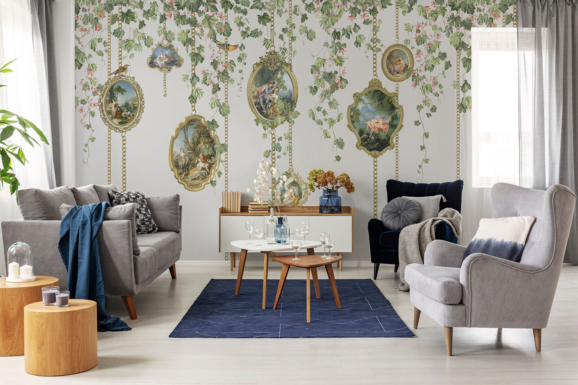 • Адаптация изображения под размер вашей стены с учетом расстановки мебели