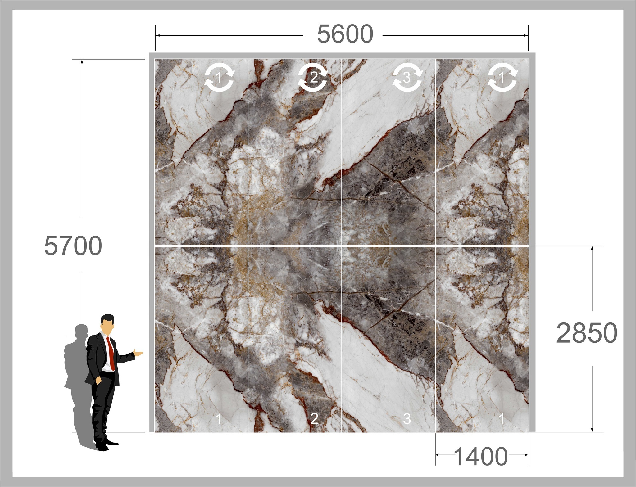 Листы гибкого мрамора из серии «ЭЛИТА» стыкуются со всех четырёх сторон, образуя единое бесшовное полотно как при горизонтальном, так и при вертикальном расположении. Это открывает удивительные возможности для дизайна, позволяя реализовать проекты любой высоты.