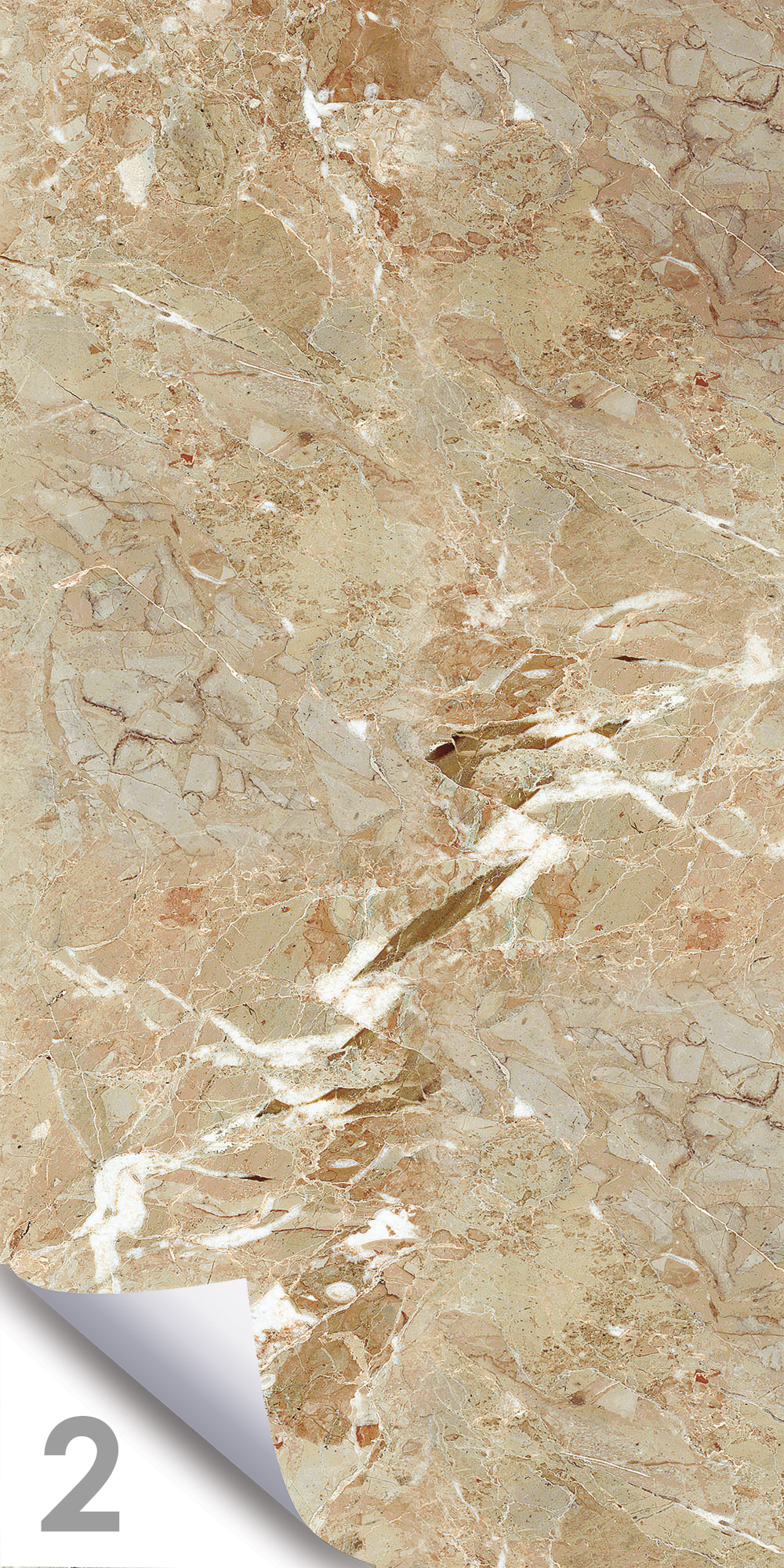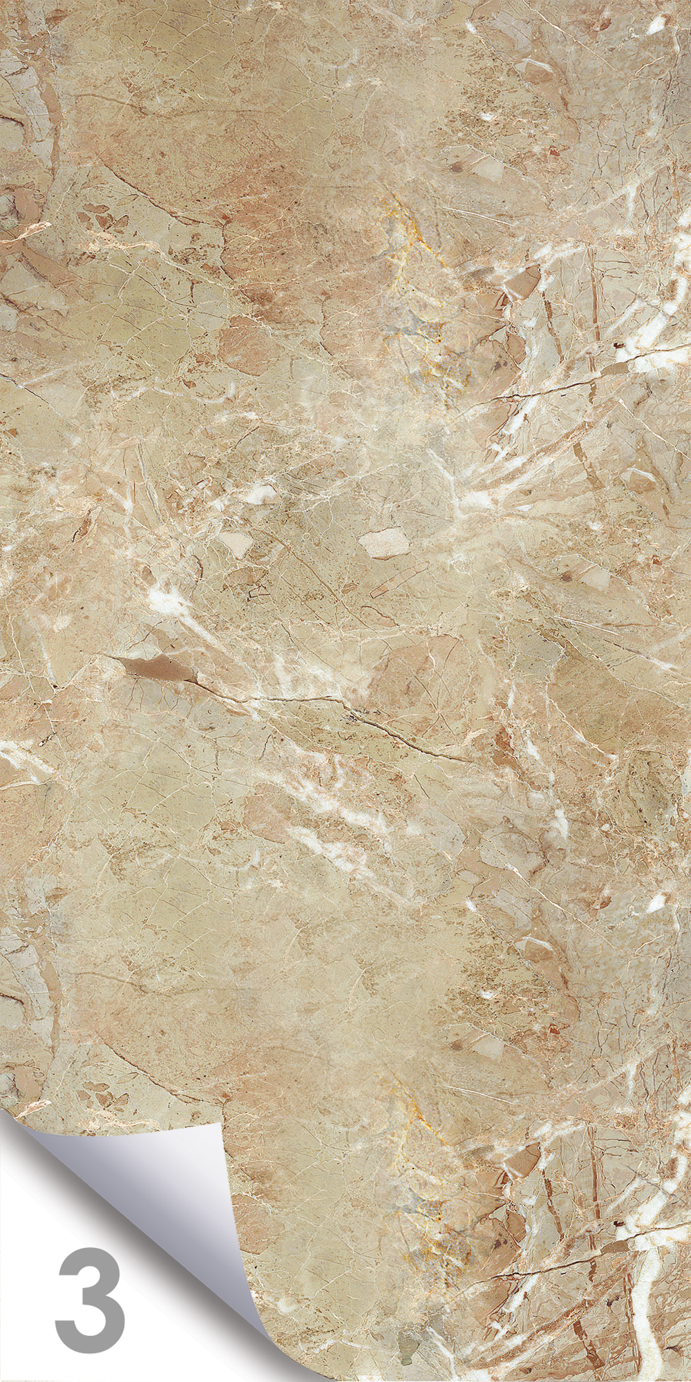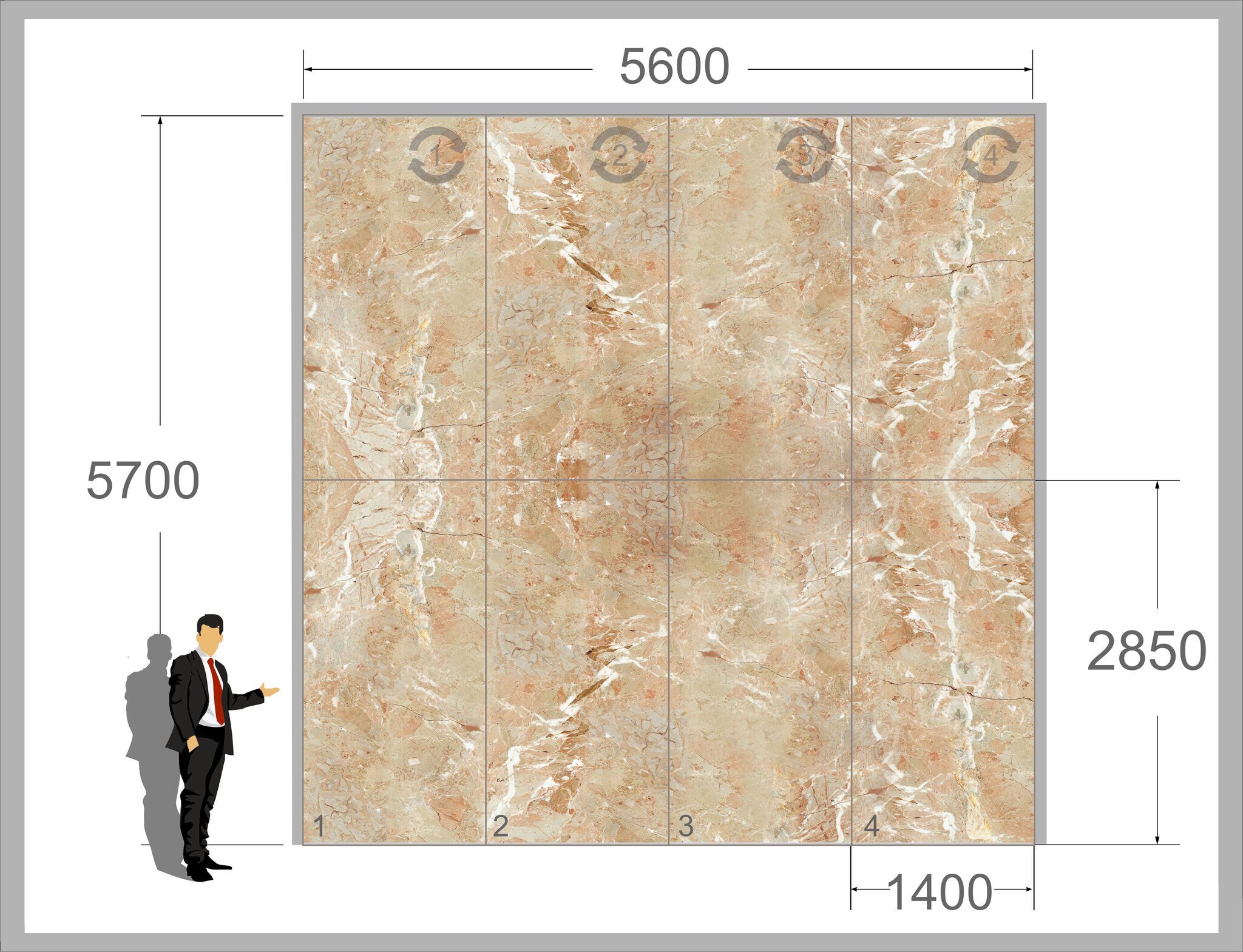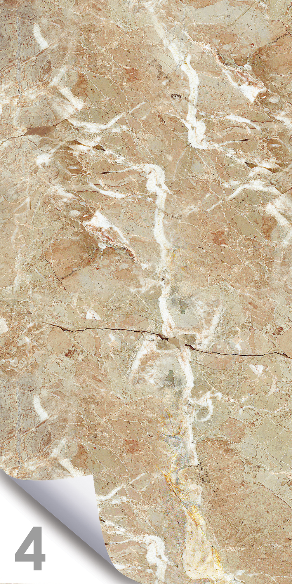 Гибкий мрамор серии ВИП представлен в разнообразных рисунках, каждый из которых имеет размер 285х140 см. При правильной укладке рисунки 1, 2, 3 и 4 и другие создают единое полотно без видимых стыков. Это позволяет наслаждаться красотой и функциональностью покрытия в течение долгих 50 лет!