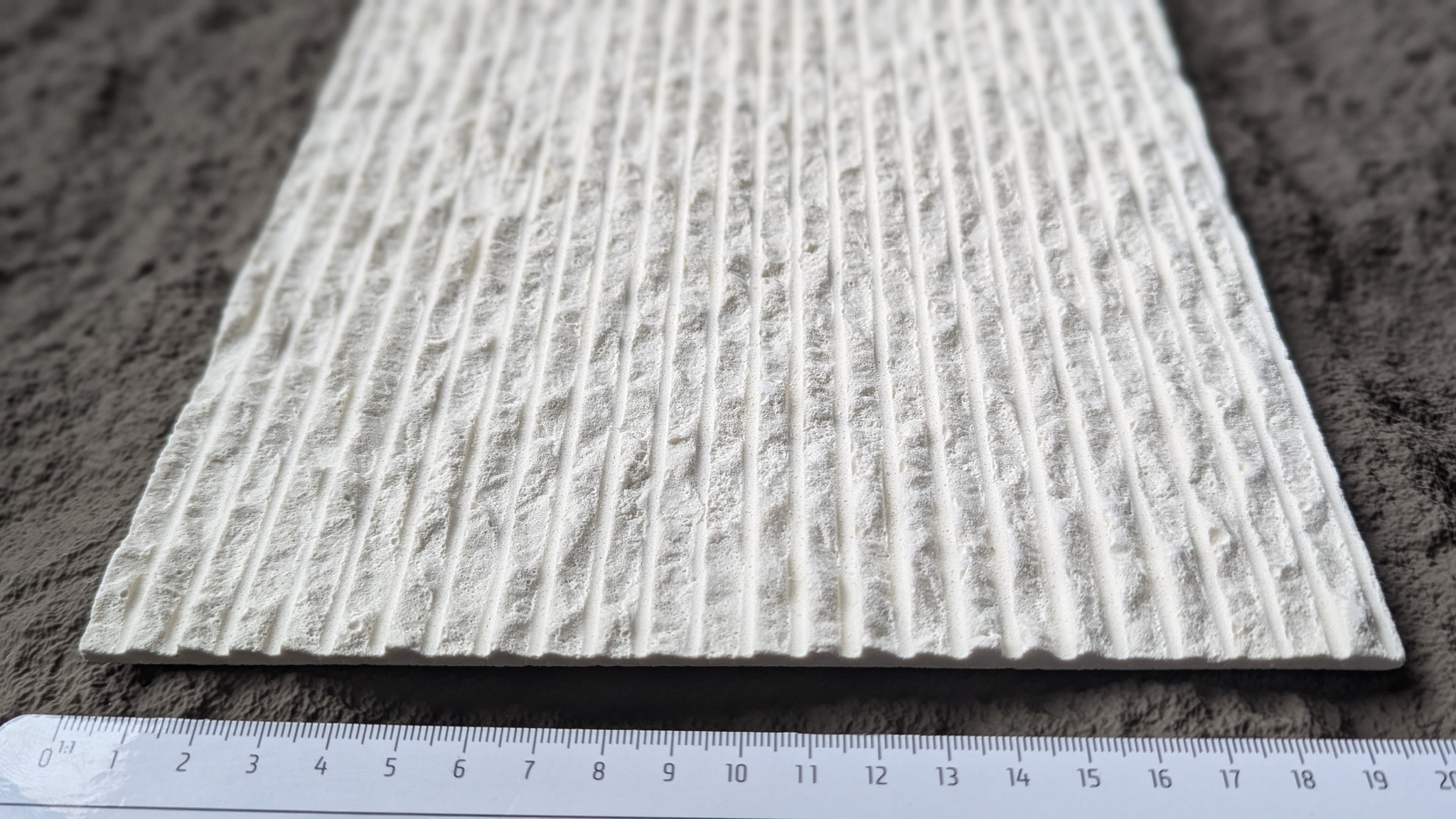 Гибкий камень NEO, также известный как гибкая керамика, изготавливается из смеси высококачественного кварцевого песка, кальциевого порошка и эмульсии. Благодаря тщательному вымешиванию, формованию и высокотемпературной обработке получается прочный и гибкий материал.