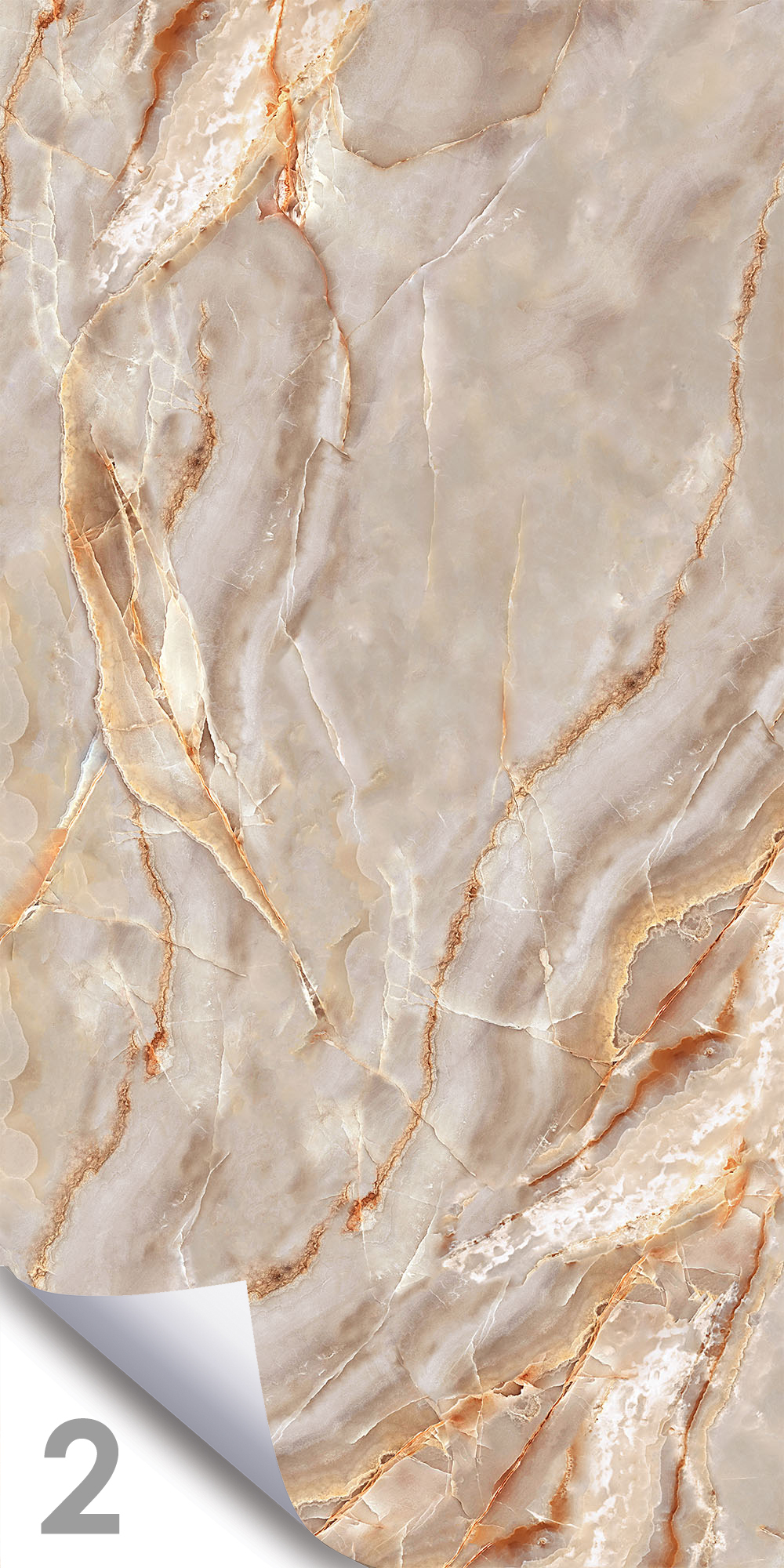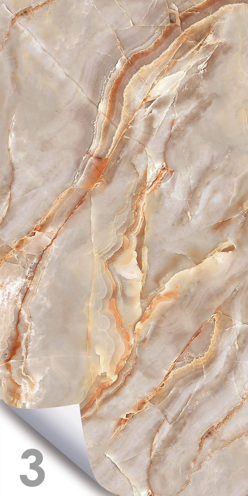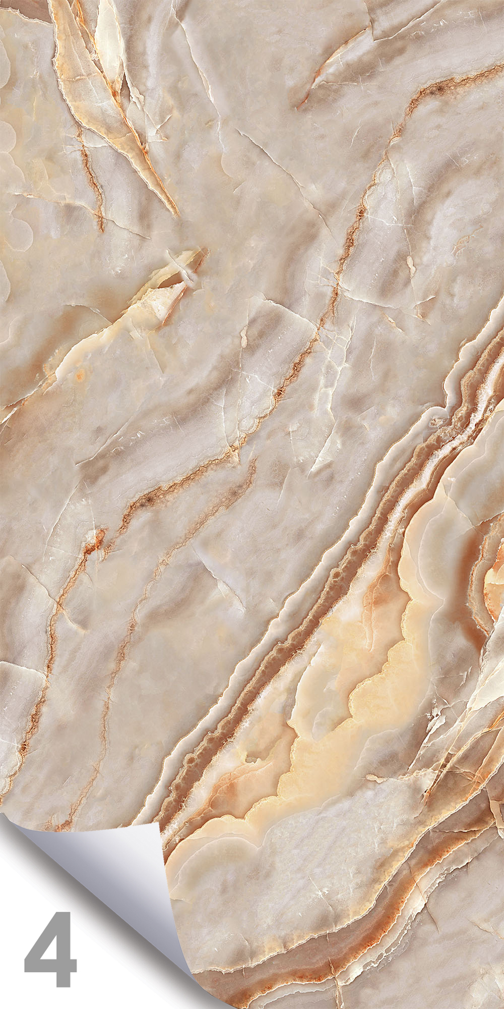 Гибкий мрамор серии ВИП представлен в разнообразных рисунках, каждый из которых имеет размер 285х140 см. При правильной укладке рисунки 1, 2, 3 и 4 и другие создают единое полотно без видимых стыков. Это позволяет наслаждаться красотой и функциональностью покрытия в течение долгих 50 лет!