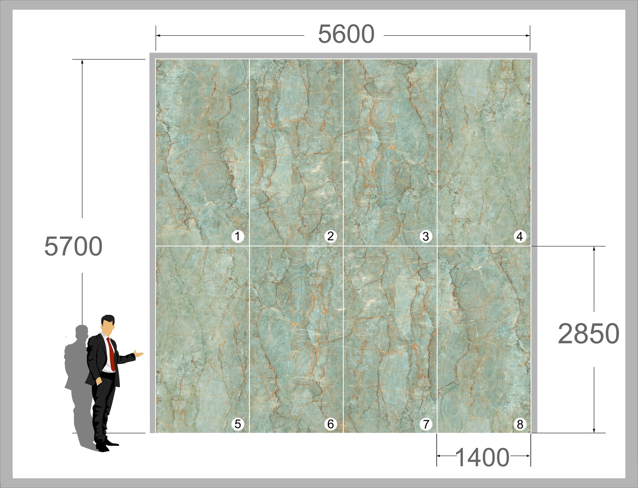 Гибкий мрамор серии ВИП представлен в разнообразных рисунках, каждый из которых имеет размер 285х140 см. При правильной укладке рисунки 1, 2, 3 и 4 и другие создают единое полотно без видимых стыков. Это позволяет наслаждаться красотой и функциональностью покрытия в течение долгих 50 лет!